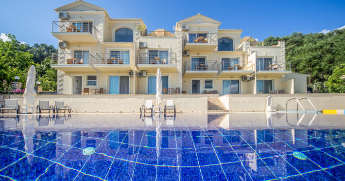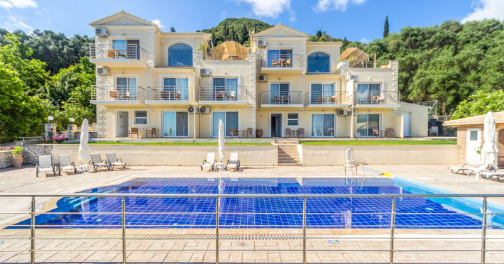 Spileo House is situated in a superb hillside location near the village of Spileo, surrounded by olive trees, just 850 metres from the beautiful beach of Messonghi. Its unique design, classical elegance and friendly staff are the main characteristics of Spileo House Boutique Suites and Apartments, Corfu.The signature of the owners Lavranos is obvious in the elegant, unique atmosphere that was created through a combination of comfort, island style and personal aesthetics. Magnificent views of the Ionian Sea, a relaxing outdoor pool and poolside BBQ all combine to make memorable holiday moments.