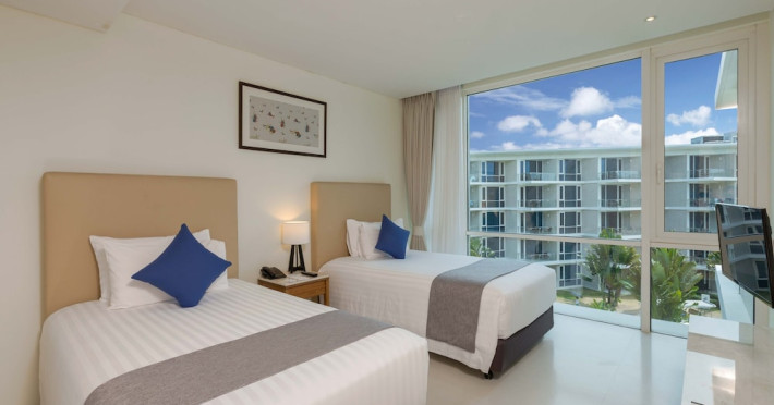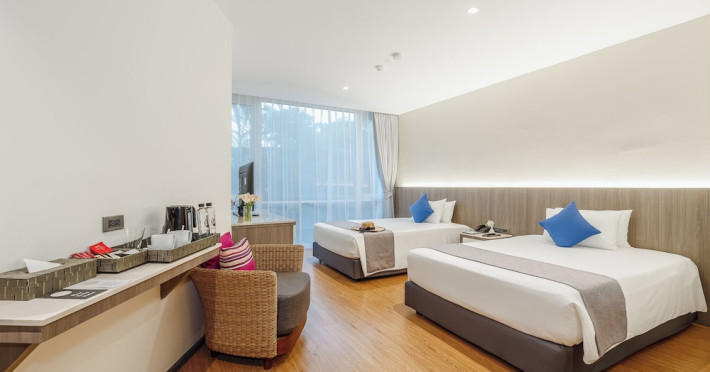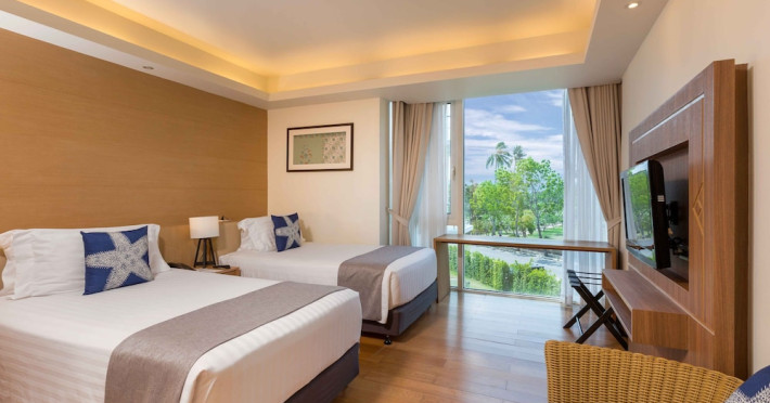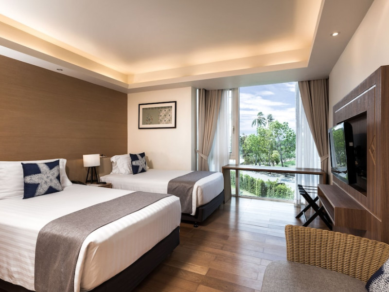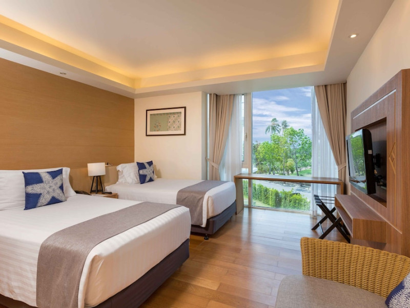 Splash Beach Resort by Langham Hospitality Group is a family-friendly resort in Mai Khao, Phuket, offering a wide range of accommodations including rooms, suites, penthouses, and villas. The resort boasts two outdoor swimming pools, a water park (surcharge applies), a fitness center, a full-service spa, and multiple restaurants and bars, including a poolside bar and beach bar. A complimentary buffet breakfast is served daily. Free Wi-Fi and self-parking are available. Guest rooms feature refrigerators, flat-screen televisions, and bathrooms with rainfall showerheads. The resort also includes a large conference center (10344 sq ft), a business center, concierge services, and babysitting (surcharge applies). The resort is located near Mai Khao Beach and Splash Jungle Water Park, and is approximately a 15-minute drive from Phuket International Airport (HKT). Renovations to the water park are planned from July 1, 2025 to September 30, 2025 (dates subject to change). The resort has 455 rooms. The Splash Beach Resort Maikhao Phuket is a Airport Hotel, Beach Resort, Child Friendly, Eco Friendly, Family Style, Full Service, Honeymoon, Leisure, Modern, Resort, Tourist, Villa Resort hotel. The nightlife/restaurants are easily accessible by taxi or bus from the hotel.