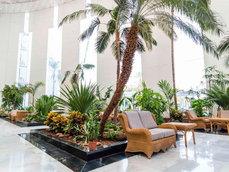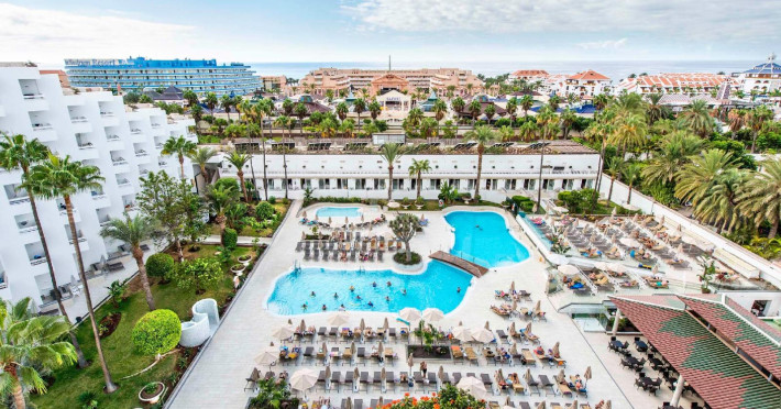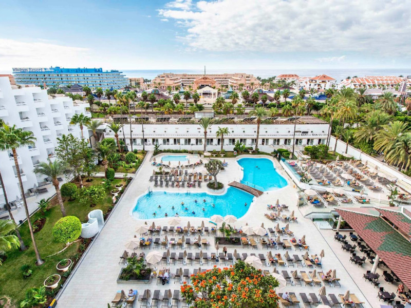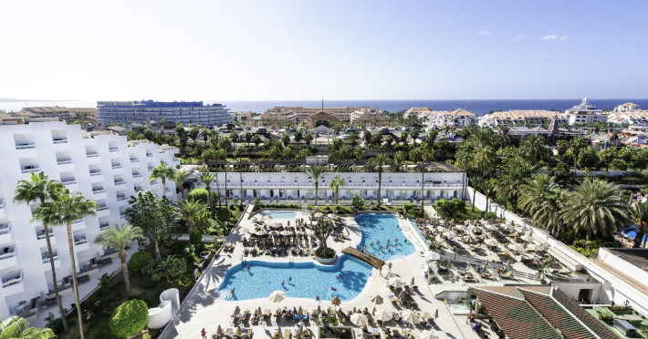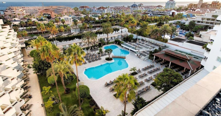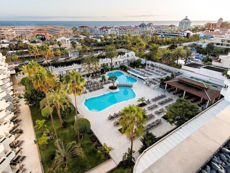 This marvellous hotel is strategically located in Playa de las Américas, just a stone's throw from beautiful and stunning beaches where guests can truly relax under the sun. In the surrounding area, visitors will find several golf courses for their enjoyment and plenty of shopping and entertainment options, so that everyone can find what they really like. Surrounded by an extraordinary botanical garden and with excellent facilities, this establishment is the best accommodation option when travelling for business or leisure. All guest rooms are very comfortable and roomy, offering the perfect space for rest and relaxation. Standard ones include a flat-screen satellite TV and a balcony or terrace and there are accessible rooms available with a pool view. The hotel includes two fantastic outdoor pools, one of them heated in winter, apart from other services like evening shows...