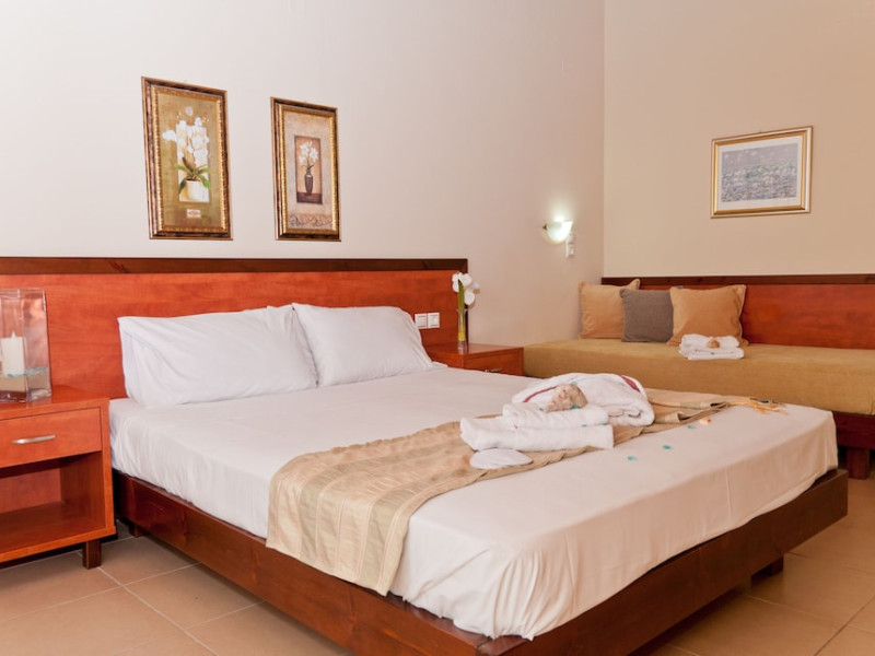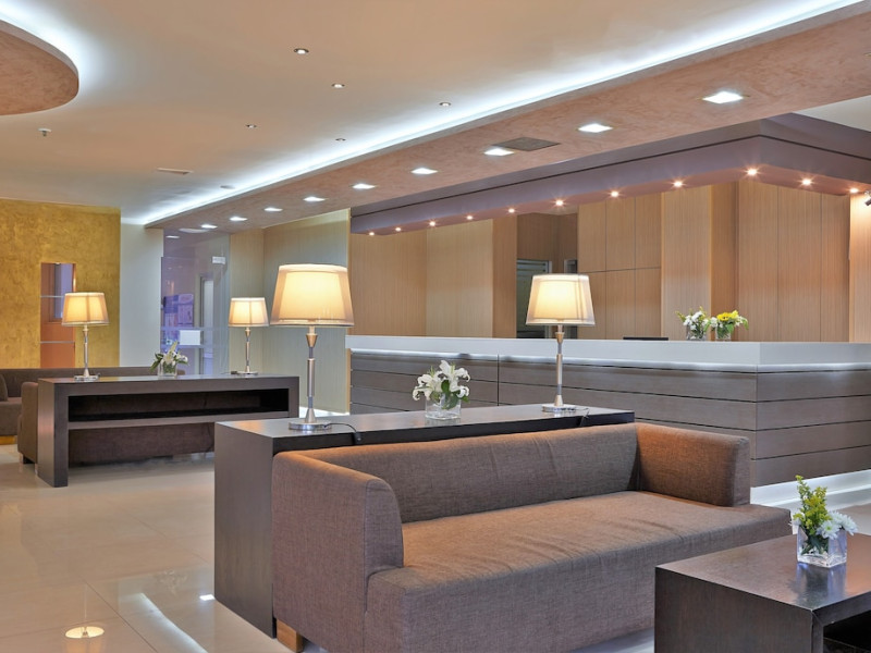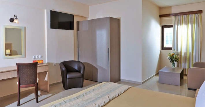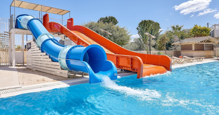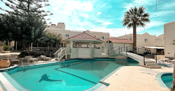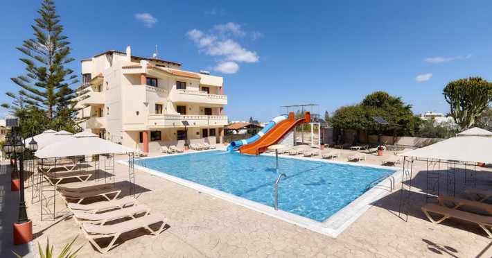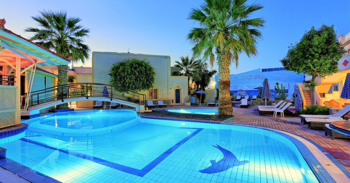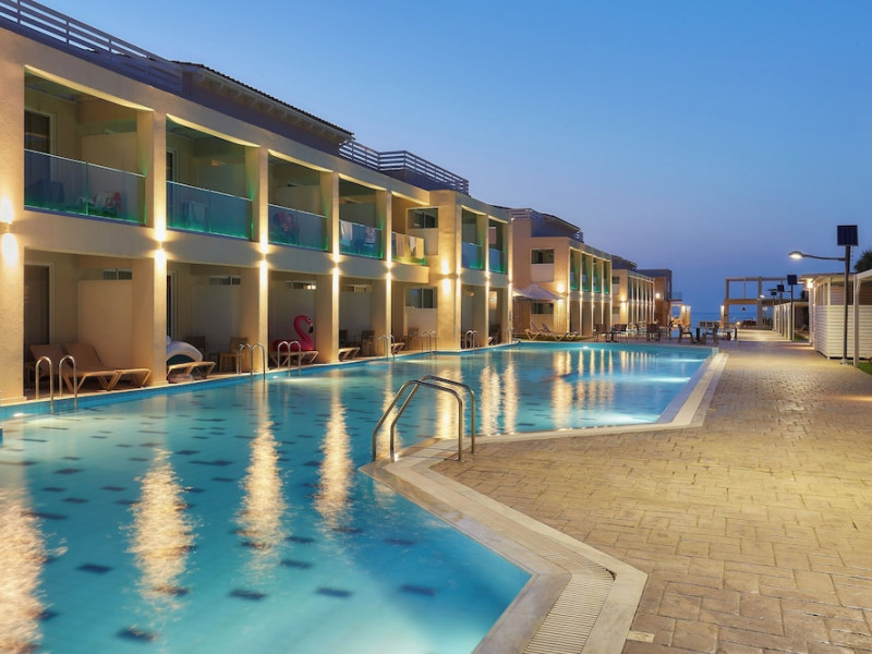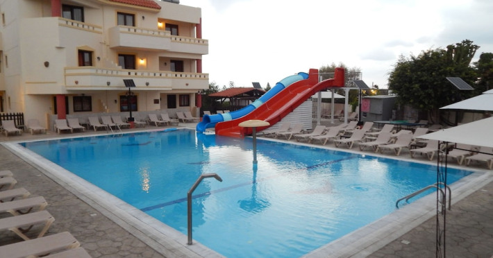 Facilities and services include 24-hour reception, lobby, lounge, library corner, luggage room, 2 elevators, Wi-Fi in all areas (extra charge), 5 outdoor swimming pools (08:00-20:00, 1 pool with 2 waterslides), sunbeds & umbrellas (free at the pool, with extra charge at the public beach by an off-site third party), pool/beach towels (deposit), sun terrace, outdoor shower, garden, conference room, onsite parking, private parking (extra charge), chapel/church, airport transfer service (on request with extra charge), doctor on call (extra charge), first-aid kit, restaurant, bar, gym, spa and children's facilities.Rooms feature air-conditioning/heating, Wi-Fi (extra charge), direct-dial telephone, safety deposit box (extra charge), flat-screen TV (with satellite channels), mini fridge, electric kettle, shower/WC, hairdryer, bathroom telephone, bathroom amenities (extra charge), bathrobes (extra charge), slippers (extra charge), balcony/terrace, wake-up service, room service (extra charge), ** Please note that some of the above facilities may be closed due to weather, seasonal conditions.**All InclusiveOperation hours: 07:25-22:00Early continental breakfast on request 1 day in advance until 19:00 (05:30- 07:30)Breakfast is buffet at Estia main restaurant (07:30-10:00)Late continental breakfast (10:00-10:30)A variety of snacks such as salads, pizza, chips, pasta & ice cream are served at Kalypso pool snack bar (10:30-17:45)Drinks at Dionysos main pool bar (10:30-22:00) include soft drinks, juices,filter coffee, tea, local draught beer, local wine, ouzo, raki, brandy, whiskey, gin, vodka, rum & cocktail of the dayLunch is buffet at Estia main restaurant (12:30-14:30)Dinner is buffet at Estia main restaurant (18:30-21:00)Lunch & dinner at Estia main restaurant include soft drinks, juices, local draught beer & local wineOne (1) complimentary dinner (drinks are not included) per stay at Asteria a la carte restaurant (advance reservation is required) Children’s menu available at Estia main restaurant Vegetarian menu on requestLunch basket on request 1 day in advance until 19:00Dress code applies for dinner in all restaurantsAddress: Odos Thermopilon Street, 70014 Kato Gouves Greece