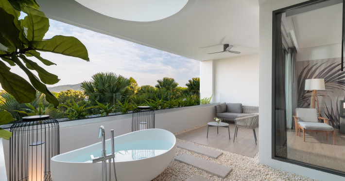 Located in Rawai Beach, Stay Wellbeing & Lifestyle Resort offers luxury accommodations ranging from Junior Suites to private Pool Villas. Guests can enjoy amenities including 4 outdoor swimming pools, a spa offering massages and body treatments, and a 24-hour fitness center. The resort features Stay Fit, a fitness center with Life Fitness equipment and group classes. Dining options include Fresca Kitchens & Deli, STAY Green Café, and CHICA Rooftop, with room service available. A bar/lounge and poolside bar are also available. The resort provides complimentary Wi-Fi, concierge services, a 24-hour front desk, luggage storage, and laundry facilities. A roundtrip airport shuttle is available for a surcharge, and free self-parking is provided. The air-conditioned rooms feature minibars, LED televisions, Select Comfort beds with Egyptian cotton sheets, and bathrooms with rainfall showerheads and complimentary toiletries. Some rooms have a balcony or terrace. The resort is located near Chalong Bay and Rawai Beach, and offers a complimentary beach shuttle. The Stay Wellbeing and Lifestyle Resort is a hotel.