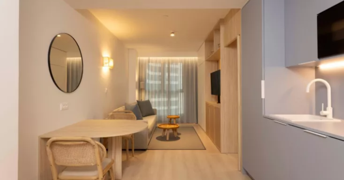 The modern suites are designed to make you feel at home, with fully equipped kitchens where you can prepare your meals and stock up on food from The Pantry, open 24 hours a day.