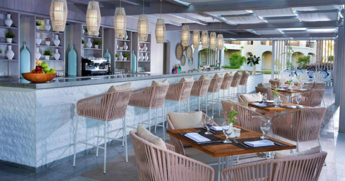 Alcazar are 2 restaurante principale care servesc micul dejun, prânzul și cina, precum și 5 restaurante à la carte cu specializări diferite. În plus, există 2 baruri în hol, baruri la piscină și un bar pe plajă.