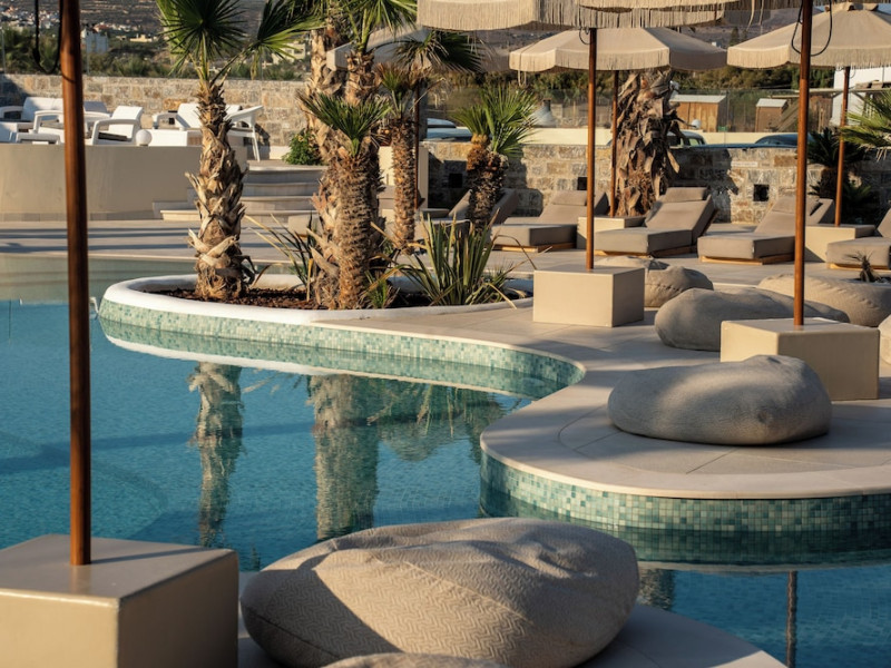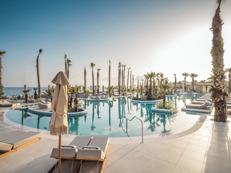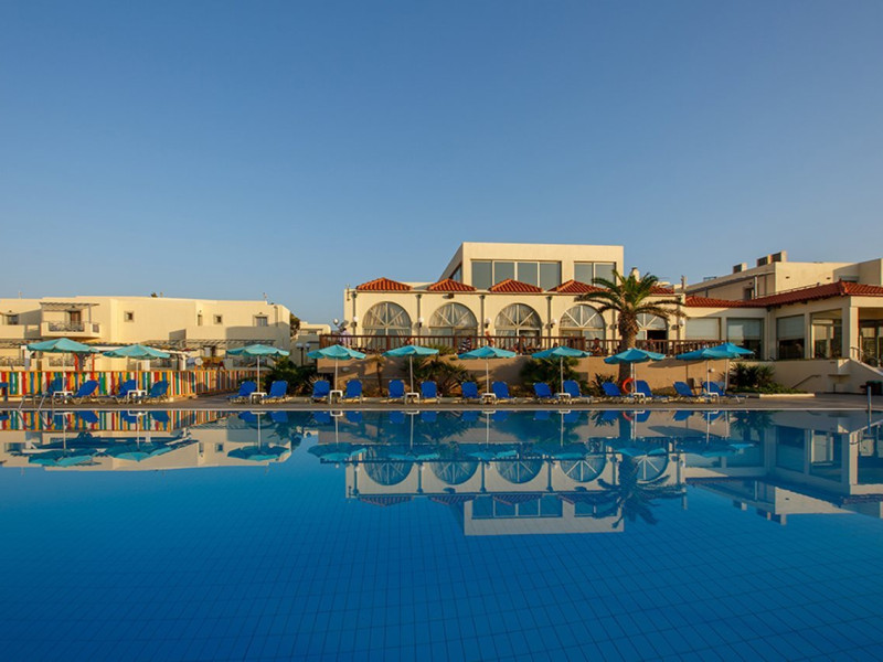 Facilities and services include 24-hour reception, TV room, internet corner, free Wi-Fi in public areas, mini market (extra charge), souvenir shop (extra charge), luggage room, children's playground, children's pool, 2 outdoor swimming pools (10:00-18:00, 1 fresh water & 1 seawater pool), pool/beach towels (deposit), sun terrace, pool sunbeds & umbrellas (free), beach sunbeds & umbrellas (with extra charge at the beach), outdoor shower, sitting terrace, garden, free onsite parking, chapel, 2 amphitheaters (1 outdoor & 1 indoor), restaurant, bar, first aid, massage, (extra charge), sauna, spa facilities (extra charge), and doctor on call (extra charge).Rooms feature air-conditioning/heating, direct-dial telephone, safety deposit box (extra charge), free Wi-Fi, flat-screen TV (satellite & music channels), fridge, bathtub/WC, hairdryer, balcony/terrace, maid service (6 times per week), towel change (daily) linen change (2 times per week), laundry & ironing service (extra charge).In case of choosing the option of all inclusive:The All Inclusive-concept includes all meals (breakfast, lunch, dinner and snacks) and mealtime drinks such as soft drinks, beer, wine, water and alcoholic drinks, all of local brands. Drinks are served from morning until late evening (approx until 22.-24.00 hrs). Opening times vary between different hotels. In certain hotels the activities program is also included.Please note that some of the above facilities may be closed due to weather/seasonal conditions.Address Analipsi, Hersonissos 70014 Crete, Greece, PO Box 1010