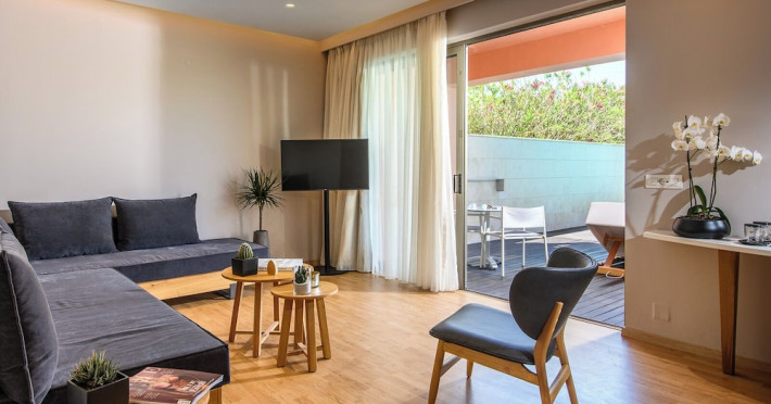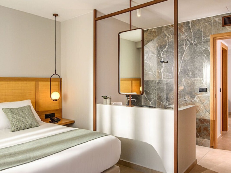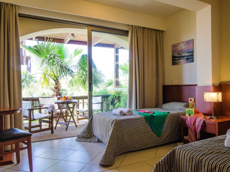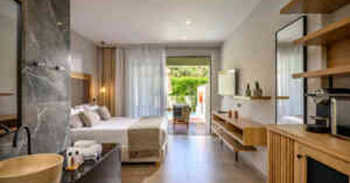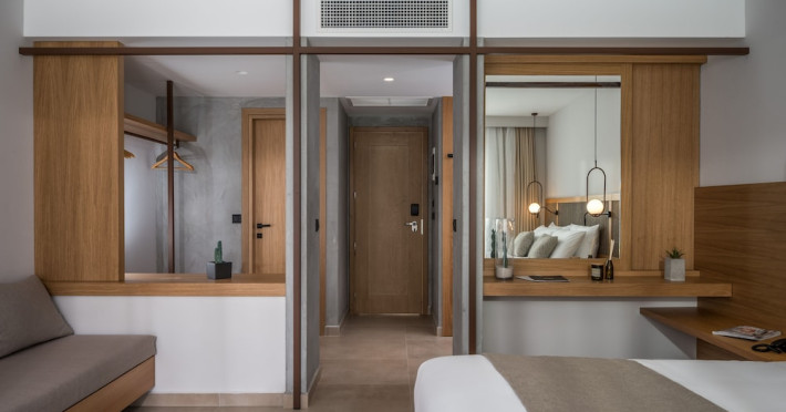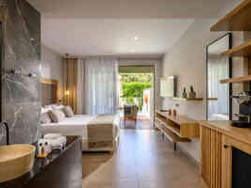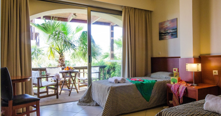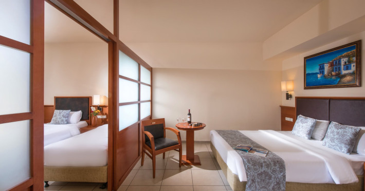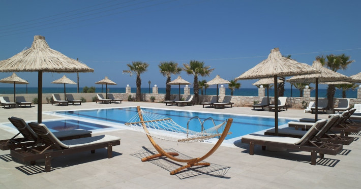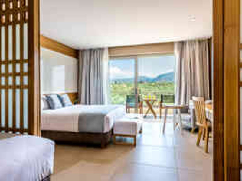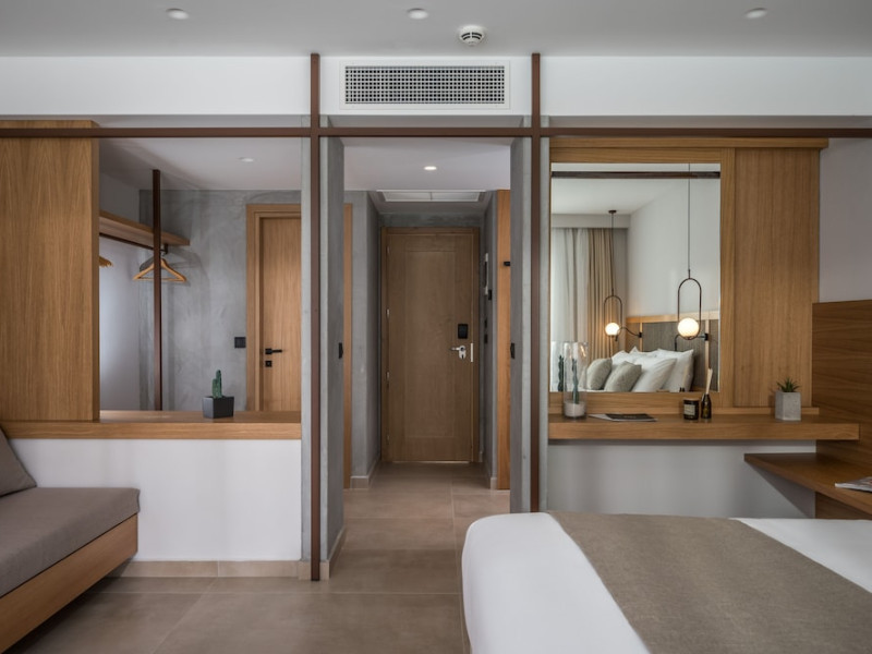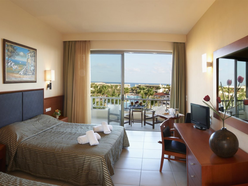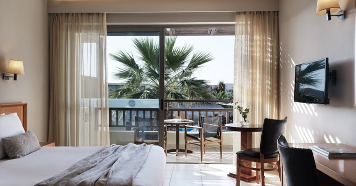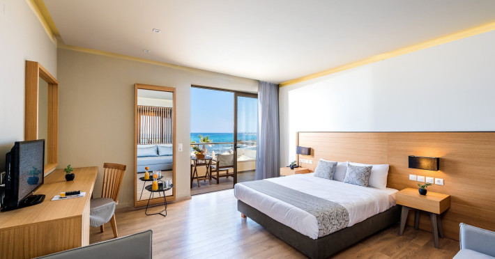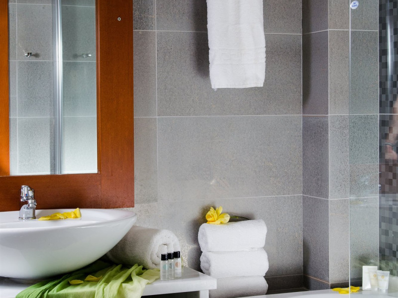 Facilities and services include a 24-hour reception, concierge service, elevator, late check-out (upon availability with extra charge), internet corner, Wi-Fi in all areas (free), mini market, jewelry shop, souvenir shop, boutique, luggage room, 2 swimming pools (10:00-19:00), pool/beach towels (free), sunbeds & umbrellas (free at the pool & the beach), outdoor shower, waterpark (10:00-18:00, free of charge: with aqua tube, tunnel body ride, speed slide, multi racer slide, black hole slide, rafting slide & aqualand, spray area), sitting terrace, garden, amphitheater, parking, chapel/church, transfer service (extra charge), doctor on call (extra charge), restaurant, Baby cot (on request, free of charge), All accommodation units provide as standard the following:individual air-conditioning (free), Wi-Fi (free), direct-dial telephone (extra charge), safety deposit box (free), TV (satellite & music channels), fridge, bathtub/WC or shower/WC, hairdryer, bathroom amenities, wake-up service, maid service (daily), towel change (3 times per week), linen change (3 times per week), room service (extra charge), laundry service (extra charge).In case of choosing the option of "all inclusive":The all-inclusive concept includes all meals (breakfast, lunch, dinner, and snacks) and mealtime drinks such as soft drinks, beer, wine, water, and alcoholic drinks, all of local brands. Drinks are served from morning until late evening (approx. until 22.00-24.00 hrs.). Opening times vary between different hotels. In certain hotels the activities program is also included.**Children's Facilities:Baby cot (on request, free of charge), highchair (on request), babysitting service (on request with extra charge), mini club (ages 4-12 years, 6 times.**Wellness (extra charge):Spa center with sauna, hammam, jacuzzi, manicure & pedicure, body & facial treatments, physical therapies, aromatherapy, acupuncture, fitness room, and indoor pool (08:00-19:00).Pet Policy: Only dogs up to 3 kg are allowed (on request).**Accepted Credit/Debit Card:Visa, MasterCard, American Express, Diners Club, UnionPayPlease note: The waterpark is located approx. 200 m from the hotel.Please note: The operation of certain services & facilities is subject to weather conditions.Address: Analipsis, Hersonissos, 70014 Crete, Hersonissos, Greece
