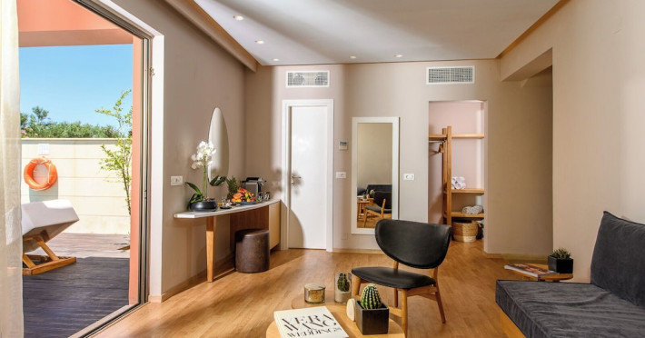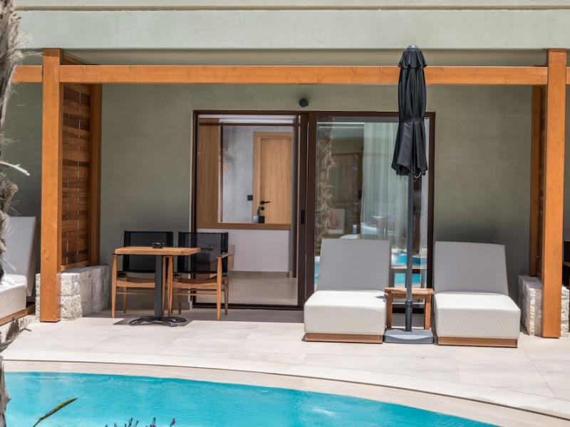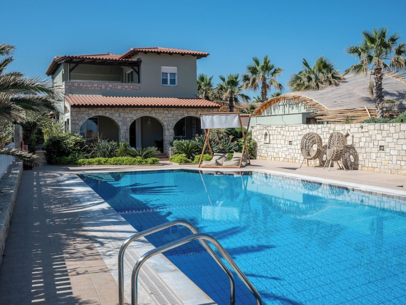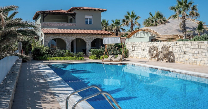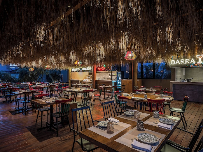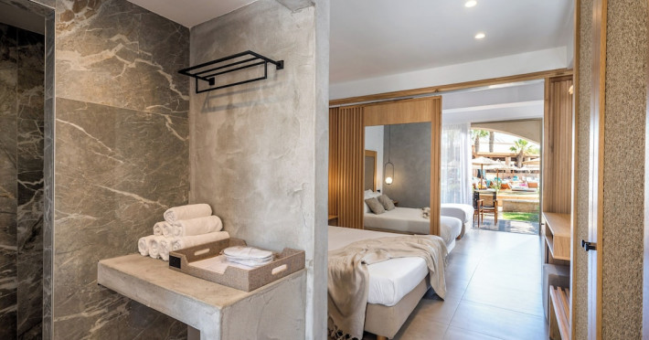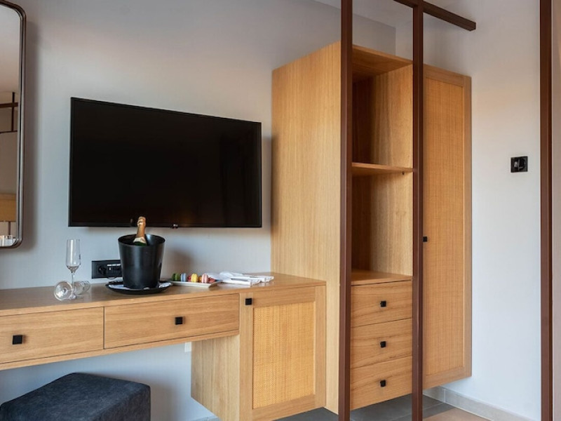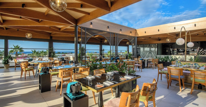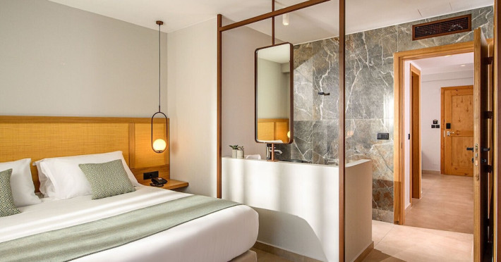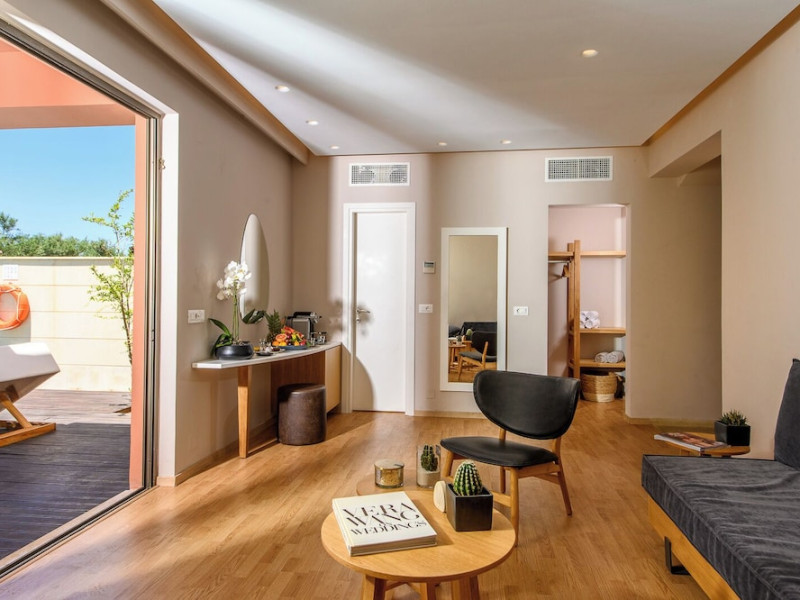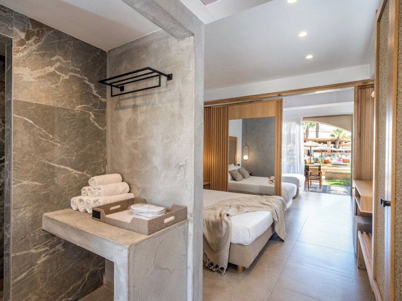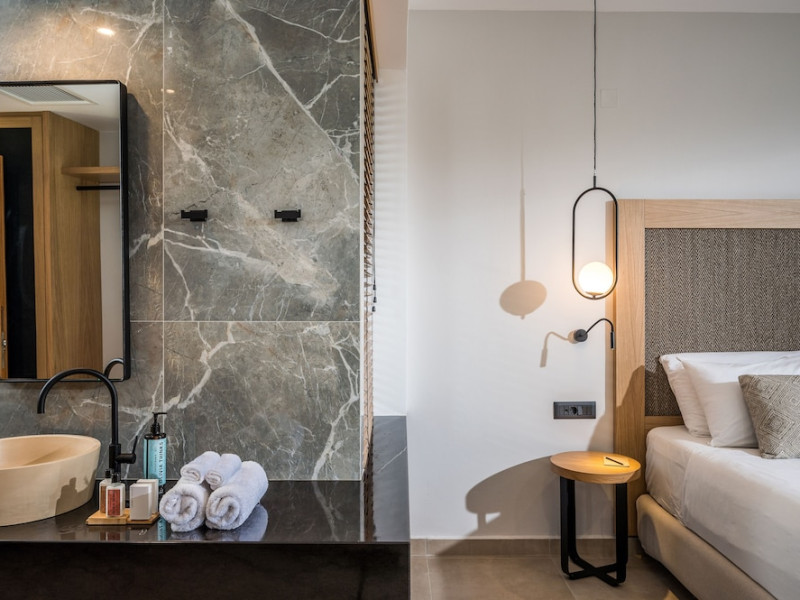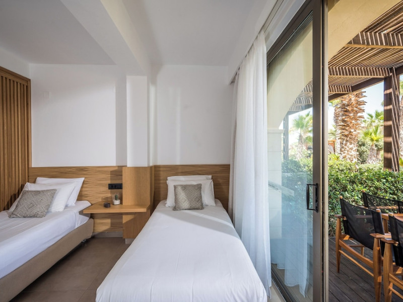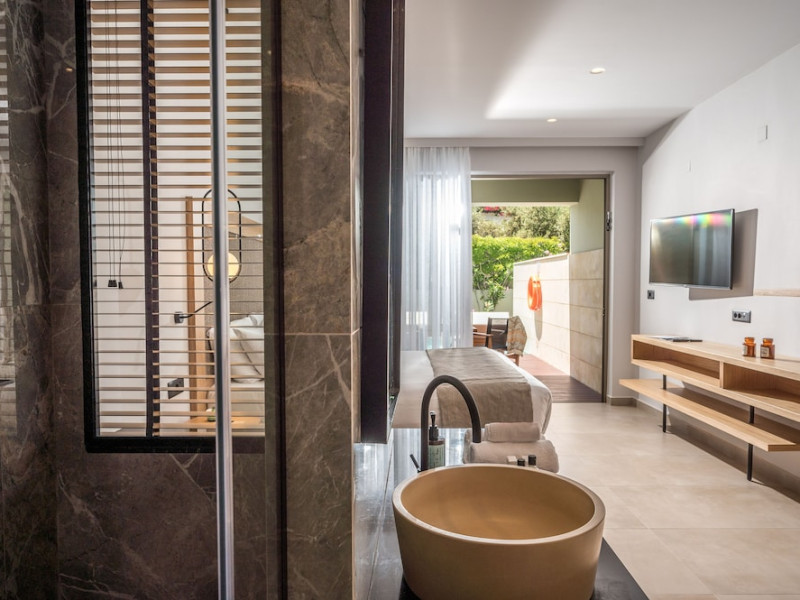 Facilities and services include a 24-hour reception, concierge service, elevator, late check-out (upon availability with extra charge), internet corner, Wi-Fi in all areas (free), mini market, jewelry shop, souvenir shop, boutique, luggage room, 2 swimming pools (10:00-19:00), pool/beach towels (free), sunbeds & umbrellas (free at the pool & the beach), outdoor shower, waterpark (10:00-18:00, free of charge: with aqua tube, tunnel body ride, speed slide, multi racer slide, black hole slide, rafting slide & aqualand, spray area), sitting terrace, garden, amphitheater, parking, chapel/church, transfer service (extra charge), doctor on call (extra charge), restaurant, Baby cot (on request, free of charge), All accommodation units provide as standard the following:individual air-conditioning (free), Wi-Fi (free), direct-dial telephone (extra charge), safety deposit box (free), TV (satellite & music channels), fridge, bathtub/WC or shower/WC, hairdryer, bathroom amenities, wake-up service, maid service (daily), towel change (3 times per week), linen change (3 times per week), room service (extra charge), laundry service (extra charge).In case of choosing the option of "all inclusive":The all-inclusive concept includes all meals (breakfast, lunch, dinner, and snacks) and mealtime drinks such as soft drinks, beer, wine, water, and alcoholic drinks, all of local brands. Drinks are served from morning until late evening (approx. until 22.00-24.00 hrs.). Opening times vary between different hotels. In certain hotels the activities program is also included.**Children's Facilities:Baby cot (on request, free of charge), highchair (on request), babysitting service (on request with extra charge), mini club (ages 4-12 years, 6 times.**Wellness (extra charge):Spa center with sauna, hammam, jacuzzi, manicure & pedicure, body & facial treatments, physical therapies, aromatherapy, acupuncture, fitness room, and indoor pool (08:00-19:00).Pet Policy: Only dogs up to 3 kg are allowed (on request).**Accepted Credit/Debit Card:Visa, MasterCard, American Express, Diners Club, UnionPayPlease note: The waterpark is located approx. 200 m from the hotel.Please note: The operation of certain services & facilities is subject to weather conditions.Address: Analipsis, Hersonissos, 70014 Crete, Hersonissos, Greece