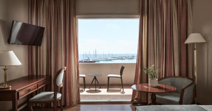 Let the mediterranean breeze from your private balcony relax you after a busy day or enjoy a refreshing cocktail at the bar in the wonderful roof garden* watching the sunset!