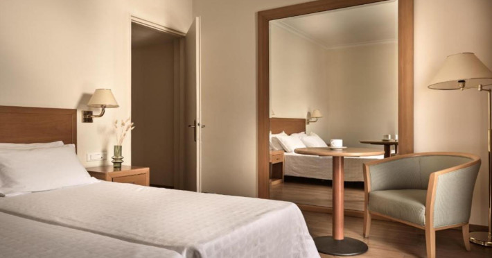 The hotel feautures 112 fully equipped and tastefully decorated rooms ranging from Classic to Deluxe suites . Enjoy all the services in your room , including air conditioning , satellite TV with digital channels and free Wi-Fi.