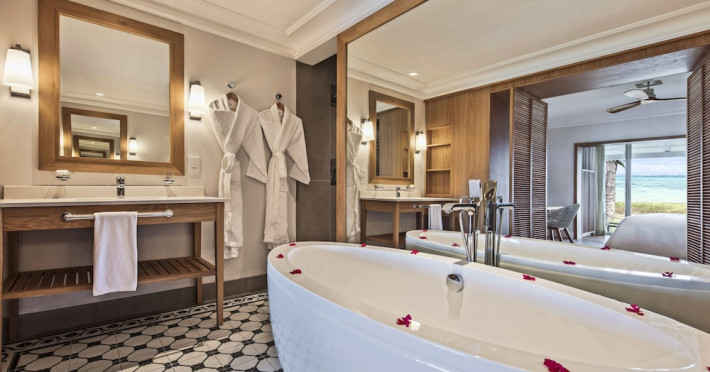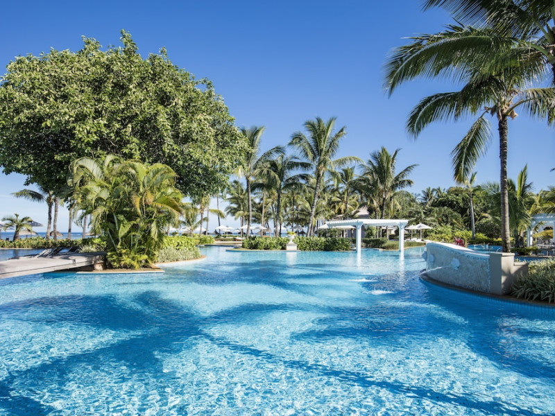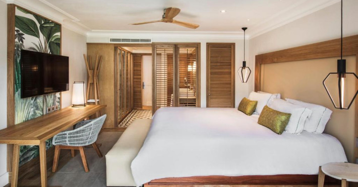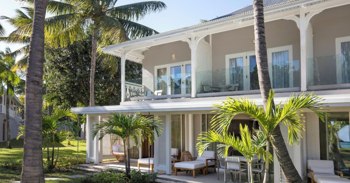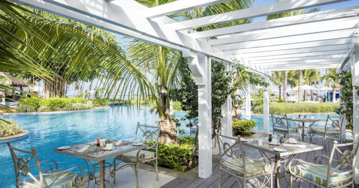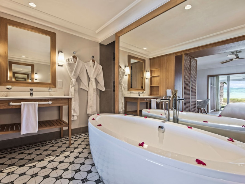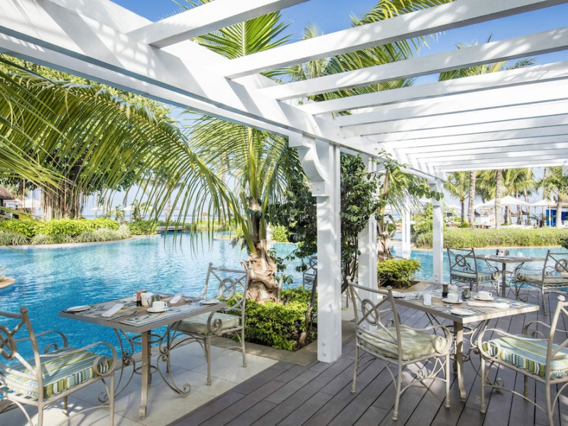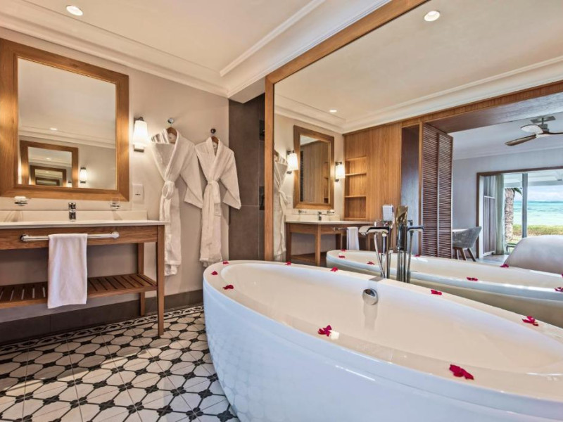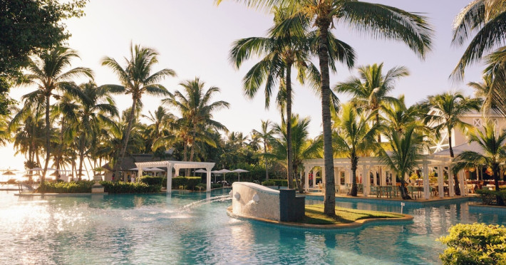 Located in Wolmar, Flic en Flac, Sugar Beach Mauritius is a five-star beach resort set on the leeward western coast of Mauritius, featuring almost a kilometer of sandy beaches facing a turquoise lagoon. The resort is situated within 12 hectares of landscaped tropical gardens. The resort features contemporary plantation-style architecture reminiscent of a colonial mansion, incorporating a central reception building and an imposing Manor House.