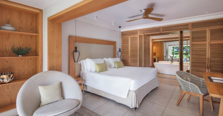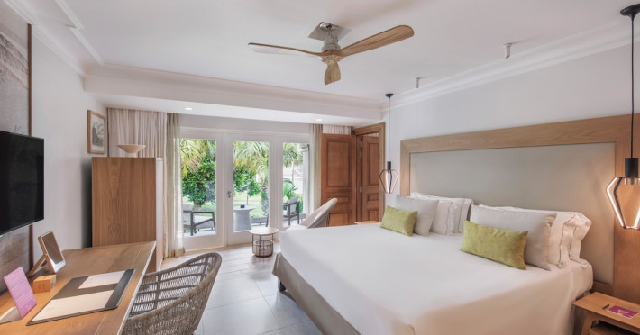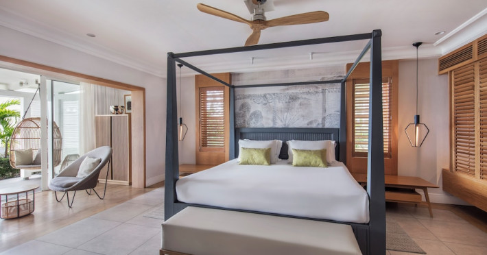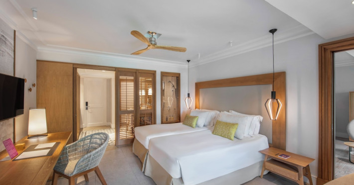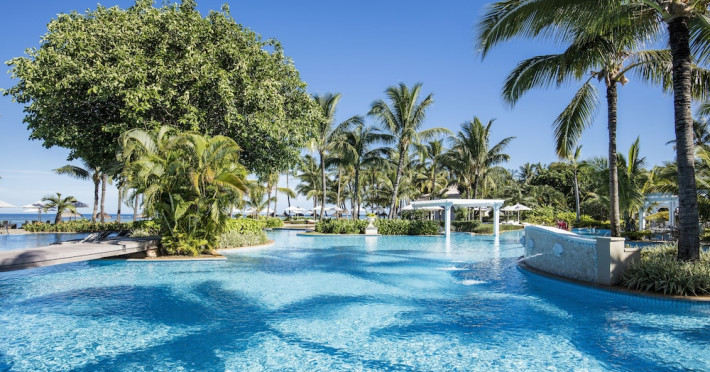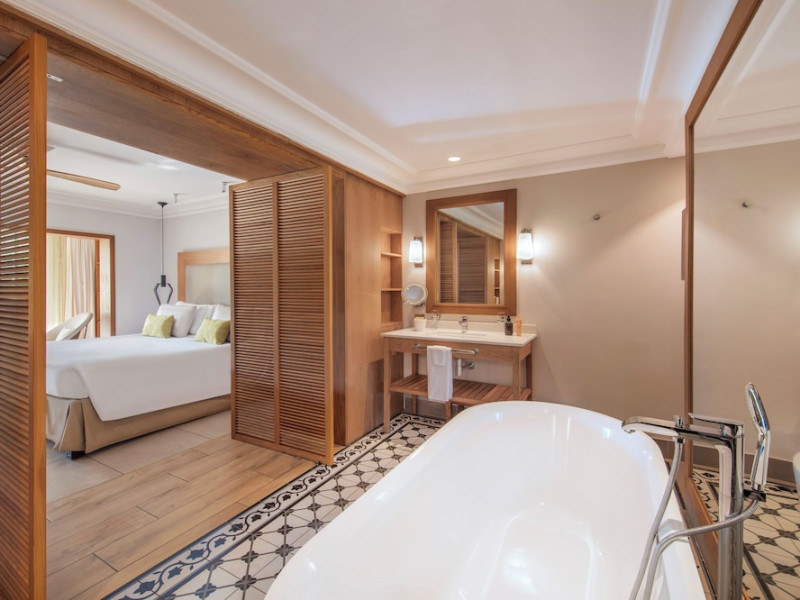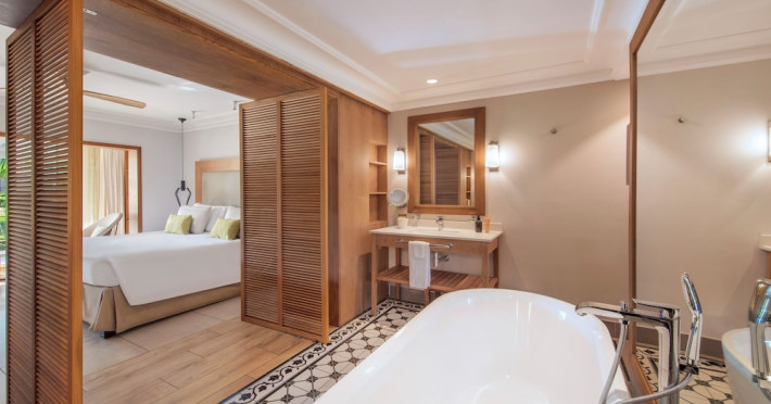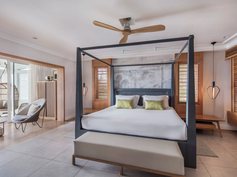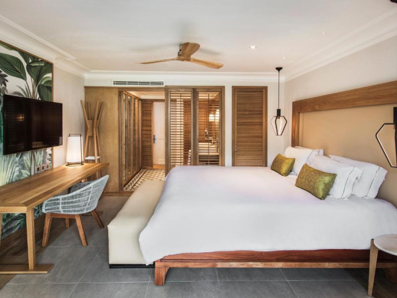 Located in Wolmar, Flic en Flac, Sugar Beach Mauritius is a five-star beach resort set on the leeward western coast of Mauritius, featuring almost a kilometer of sandy beaches facing a turquoise lagoon. The resort is situated within 12 hectares of landscaped tropical gardens. The resort features contemporary plantation-style architecture reminiscent of a colonial mansion, incorporating a central reception building and an imposing Manor House.