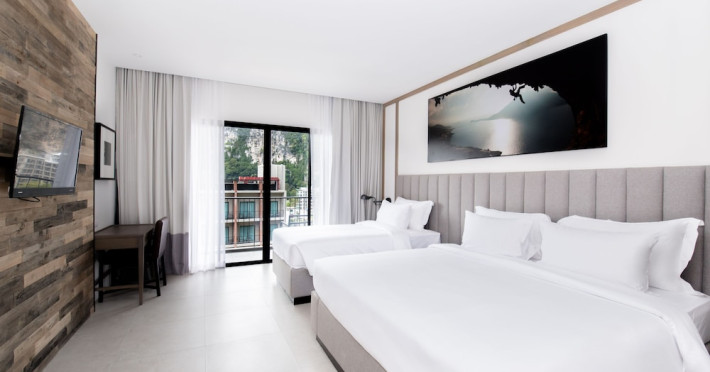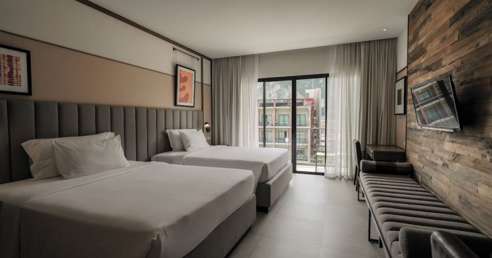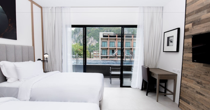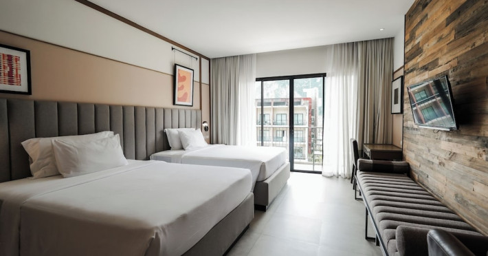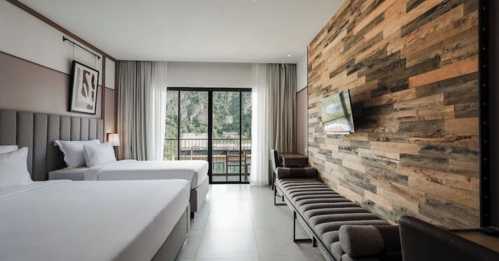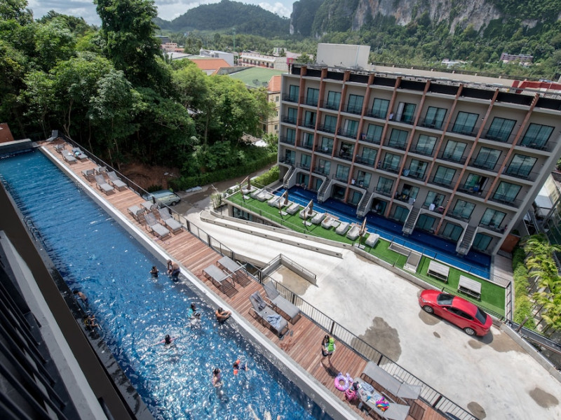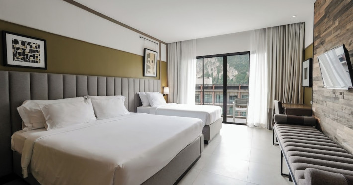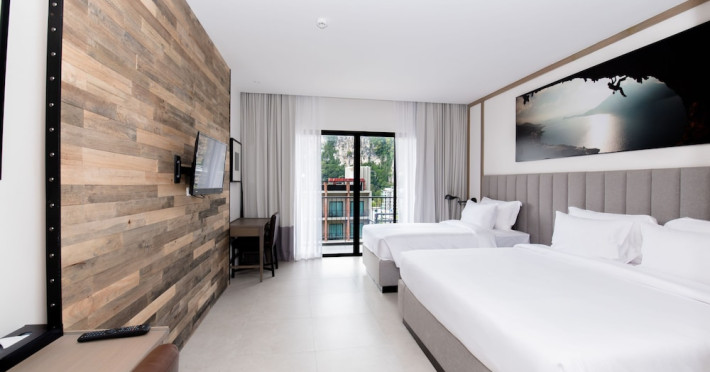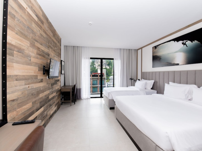 Located in Ao Nang, Sugar Marina Hotel CLIFFHANGER Aonang is a 15-minute walk from the beach and a 10-minute drive from Nopparat Thara Beach. It offers stylish, air-conditioned rooms with wooden details, a flat-screen TV, an electric kettle, and a private balcony. The private bathroom features a hot shower, bathrobes, and complimentary toiletries. Guests can enjoy complimentary WiFi throughout the property. The hotel features an outdoor pool, a fitness center, an on-site restaurant serving breakfast, lunch, and dinner, and a bar/lounge. Room service is available during limited hours. Additional amenities include a 24-hour front desk, luggage storage, laundry service (extra charge), and free self-parking. An airport shuttle is available for a surcharge. The Sugar Marina Resort-Cliffhanger-Aonang is a hotel.