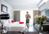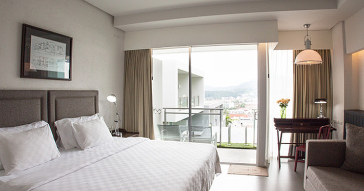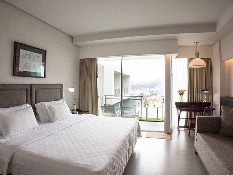 Located in Karon, a 5-minute walk from Kata Beach, Sugar Palm Grand Hillside SHA Plus features 106 air-conditioned rooms with private balconies. The hotel offers 11 outdoor swimming pools designed around a man-made waterfall, a spa offering massages and treatments, a fitness center, a sauna, and a restaurant. Rooms are equipped with complimentary Wi-Fi, smart TVs, refrigerators, minibars, and private bathrooms with rainfall showerheads and complimentary toiletries. Guests can enjoy the 7th Heaven Sky bar, a poolside bar, and room service during limited hours. The hotel provides a 24-hour front desk, concierge services, dry cleaning/laundry services, and meeting rooms with conference facilities. A roundtrip airport shuttle is available for a surcharge, and free self-parking is available onsite. The hotel is approximately 45 km from Phuket International Airport and a 15-minute drive from Patong Beach. On-site amenities include a coffee shop, convenience store, and tour booking services. Smoking is restricted to designated areas. The SUGAR PALM GRAND HILL SIDE is a Tourist hotel. The nightlife/restaurants are easily accessible by taxi or bus from the hotel.
