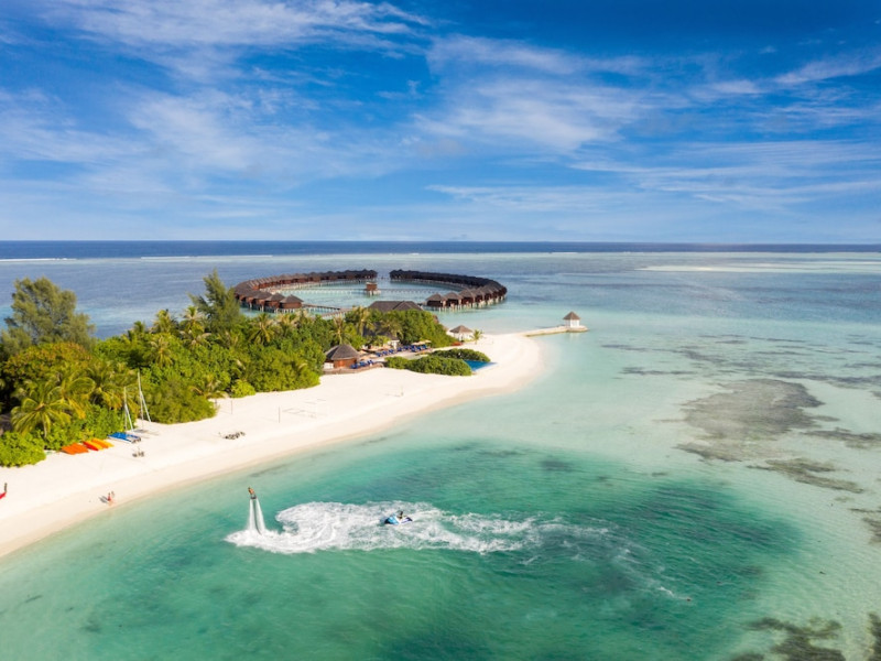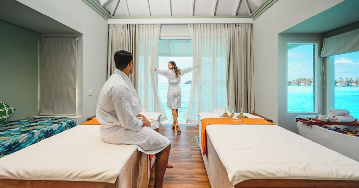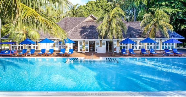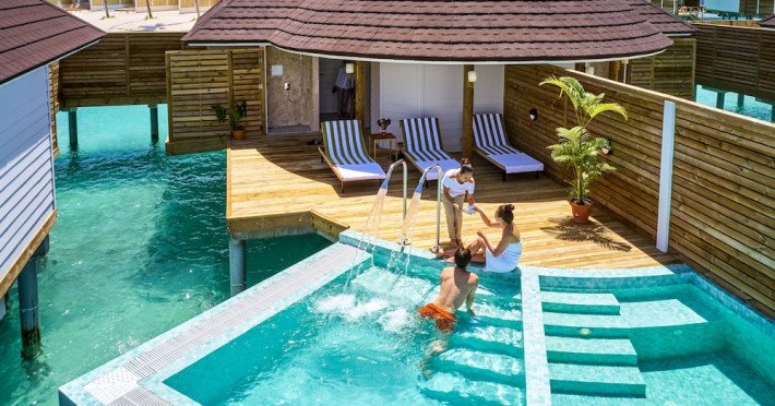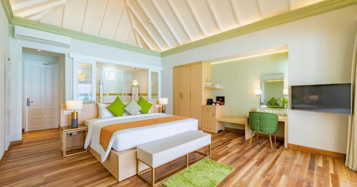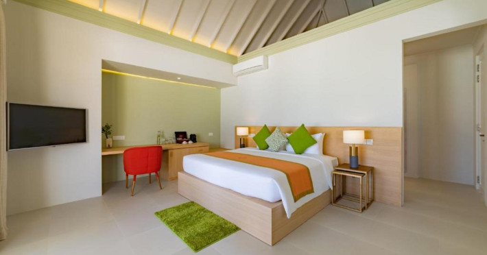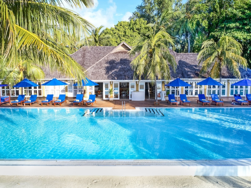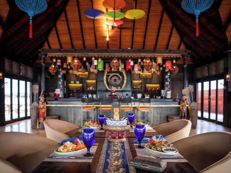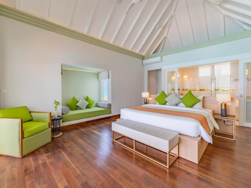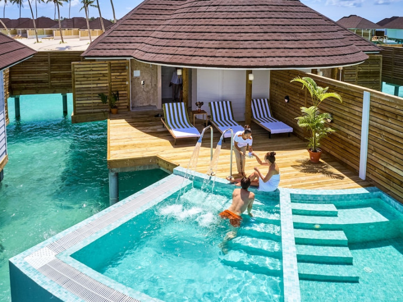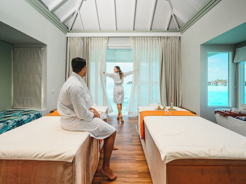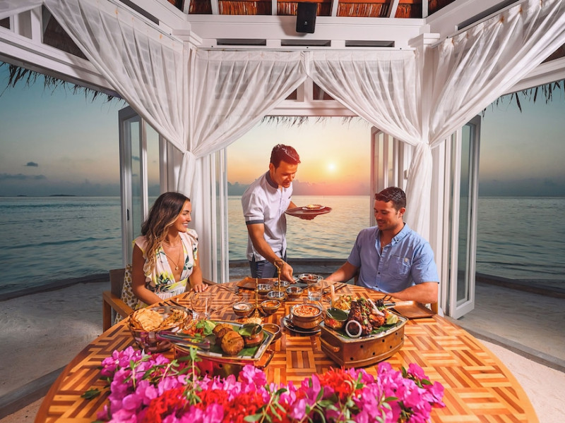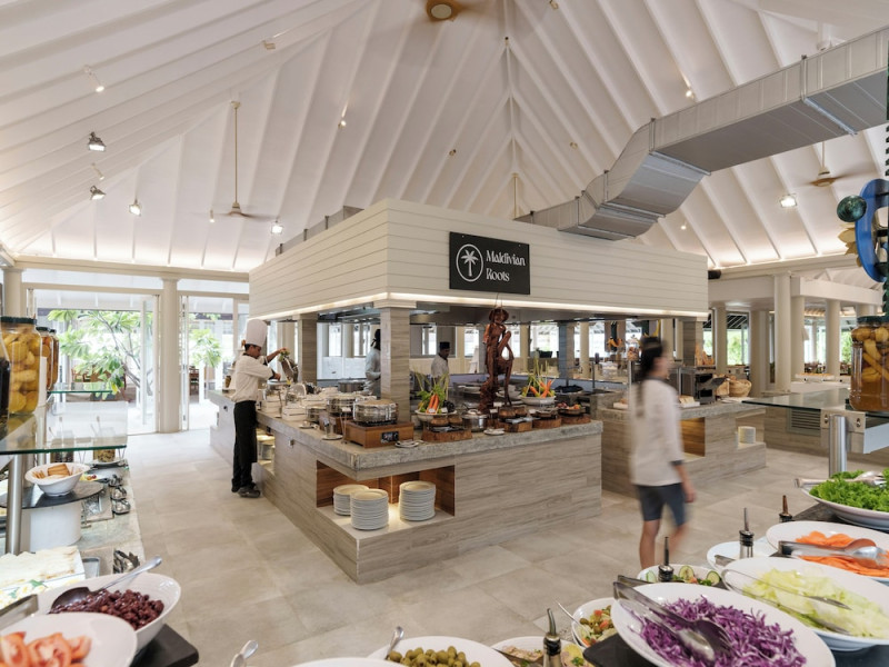 Sun Siyam Olhuveli is a beachfront 4-star resort in Olhuveli, South Male Atoll, offering overwater villas with traditional décor and modern touches. Enjoy a tranquil escape on a pristine sandy beach beside a crystal-clear lagoon. The resort features 7 restaurants (including Sunset Restaurant), 4 bars/lounges, and 3 poolside bars, with 24-hour room service and a coffee shop/cafe. Amenities include 3 outdoor swimming pools, an outdoor tennis court, a full-service spa offering massages, body treatments, and facials, a steam room, a fitness center, a sauna, a business center, dry cleaning/laundry services, a 24-hour front desk, complimentary Wi-Fi, concierge services, and babysitting (surcharge). All-inclusive rates are available, including meals and beverages at most onsite dining establishments (some exclusions apply). The resort offers 164 air-conditioned rooms with refrigerators, minibars, private furnished balconies or patios, LCD TVs with cable, and bathrooms with complimentary toiletries and bidets. Recreational activities include billiards, table tennis, and darts, and cycling is popular in the area. The resort is within 0.2 km of several beaches including Rihiveli, Olhuveli, Rannalhi, and Gulhi beaches. The Sun Siyam Olhuveli is a Beach Resort, Design Trendy, Diving Resort, Family Style, Honeymoon, Leisure, Spa Resort, Tourist hotel. The nightlife/restaurants are located in the hotel.
