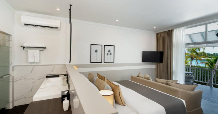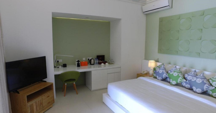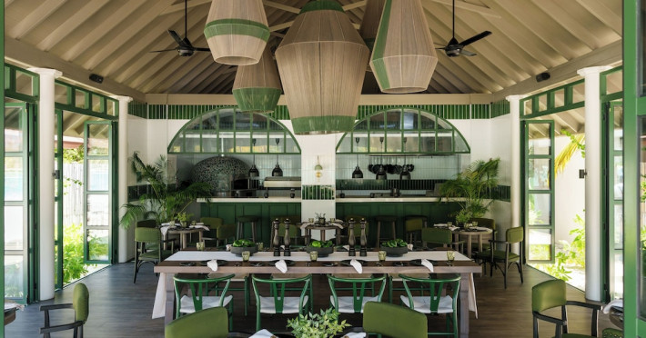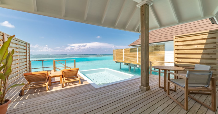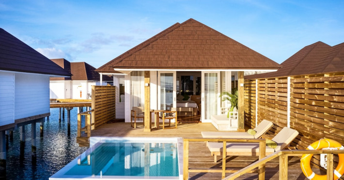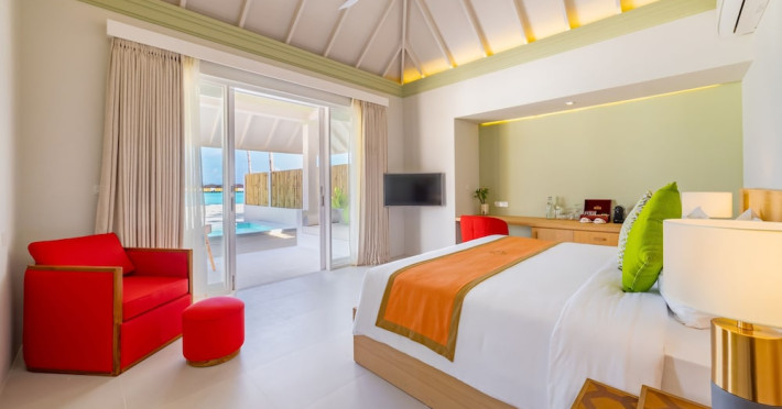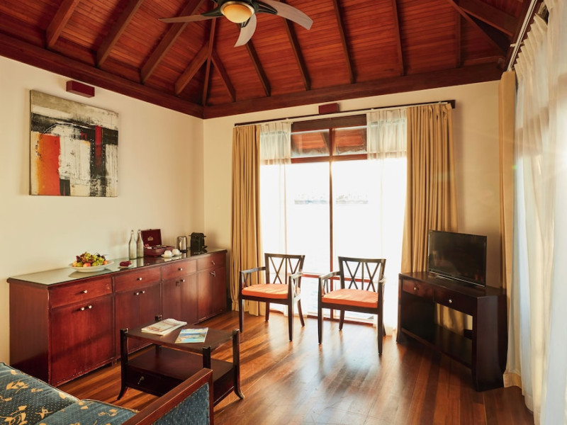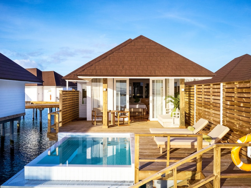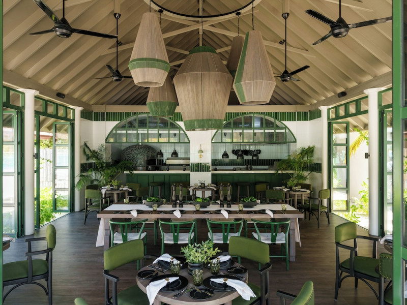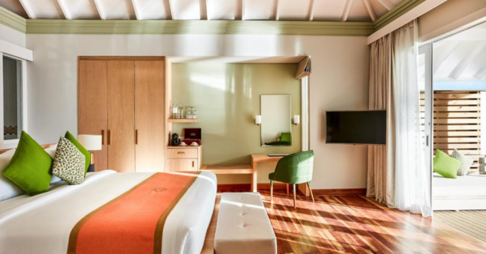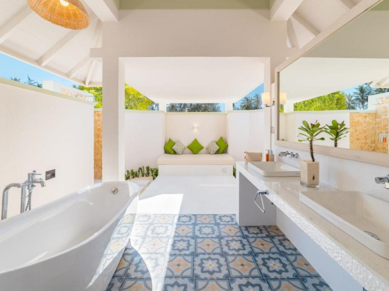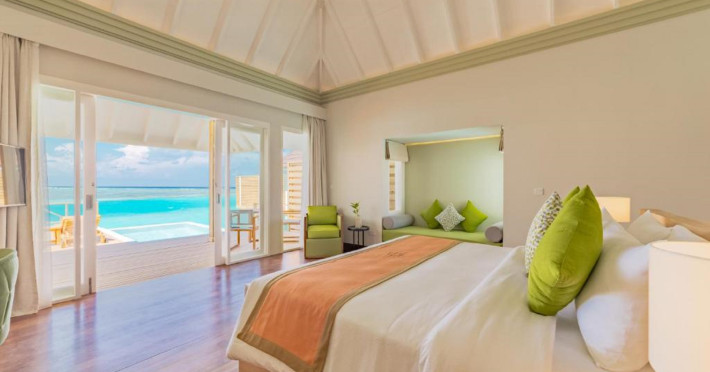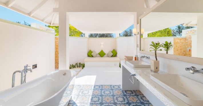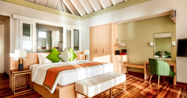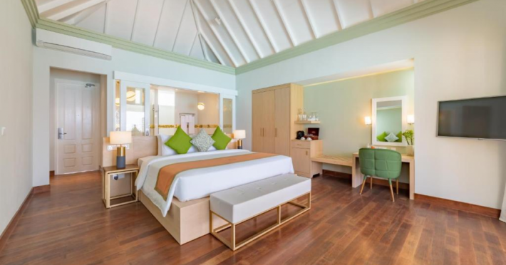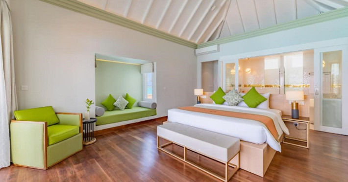 Sun Siyam Olhuveli is a beachfront 4-star resort in Olhuveli, South Male Atoll, offering overwater villas with traditional décor and modern touches. Enjoy a tranquil escape on a pristine sandy beach beside a crystal-clear lagoon. The resort features 7 restaurants (including Sunset Restaurant), 4 bars/lounges, and 3 poolside bars, with 24-hour room service and a coffee shop/cafe. Amenities include 3 outdoor swimming pools, an outdoor tennis court, a full-service spa offering massages, body treatments, and facials, a steam room, a fitness center, a sauna, a business center, dry cleaning/laundry services, a 24-hour front desk, complimentary Wi-Fi, concierge services, and babysitting (surcharge). All-inclusive rates are available, including meals and beverages at most onsite dining establishments (some exclusions apply). The resort offers 164 air-conditioned rooms with refrigerators, minibars, private furnished balconies or patios, LCD TVs with cable, and bathrooms with complimentary toiletries and bidets. Recreational activities include billiards, table tennis, and darts, and cycling is popular in the area. The resort is within 0.2 km of several beaches including Rihiveli, Olhuveli, Rannalhi, and Gulhi beaches. The Sun Siyam Olhuveli is a Beach Resort, Design Trendy, Diving Resort, Family Style, Honeymoon, Leisure, Spa Resort, Tourist hotel. The nightlife/restaurants are located in the hotel.