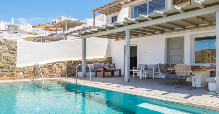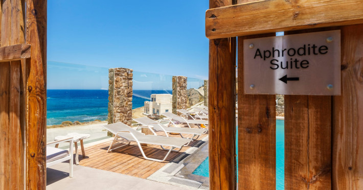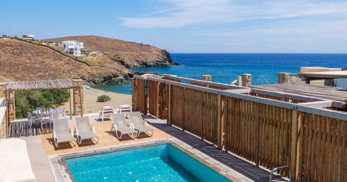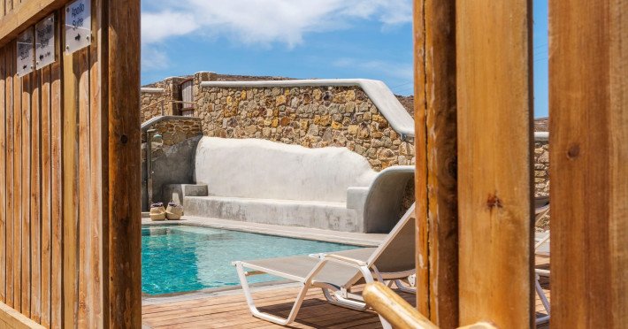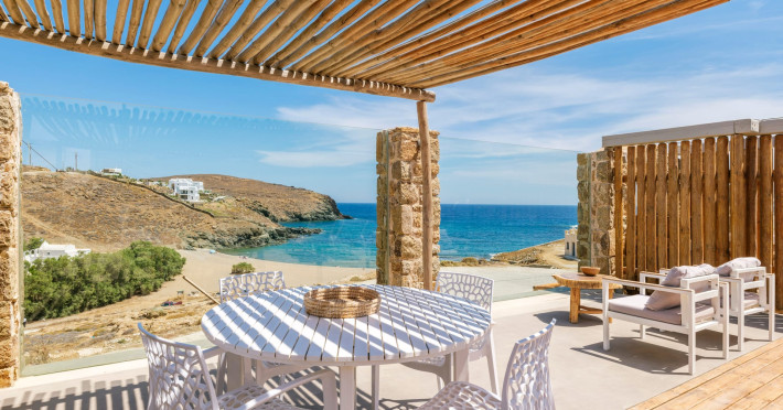 The perfect combination to stay at a villa or a suite only 50 meters away from an untouched, virgin almost private beach, but within the cosmopolitan island and very close to the crowded Mykonos town and the famous beaches. The amazing sea view, the minimal decoration gives the feeling to our guests that can be barefooted throughout the day in a boho and luxury setting. Our guests feel comfortable and in private. Enjoy the real Mykonian way. Feel free, relaxed in Merchia or prepare yourself to have a great fun & dance night in Mykonos town. Sundance Suites offer the luxury of simplicity.
