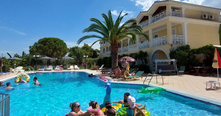 Sunflower Apartments & Studios is a family owned property that offers open handed hospitality. Surrounded by lush greenery, it is just a short walk from Laganas main street but still in a quiet location! It offers facilities such as a large swimming pool, snack bar, parking area and free Wifi. It is suitable for couples, families or group of friends. A wonderful place for your holidays which combines the best hospitality, unspoilt nature, a magnificent landscape and some of the most beautiful beaches of the Ionian Islands!