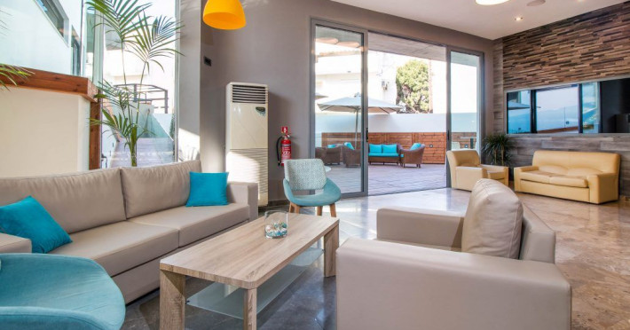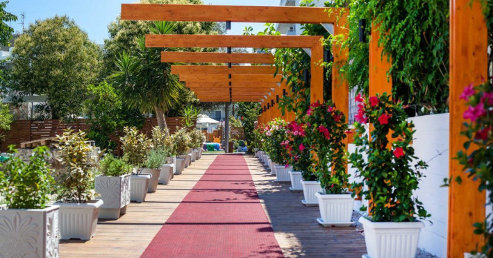A bus station is just in front of the hotel, providing frequent connections to Rhodes Town.