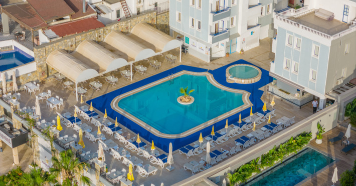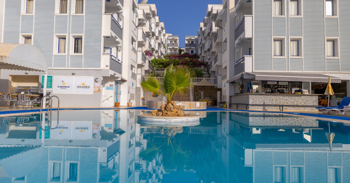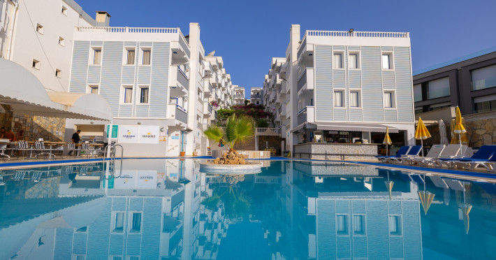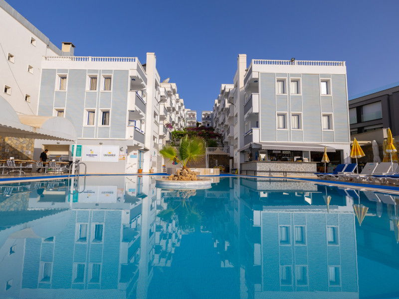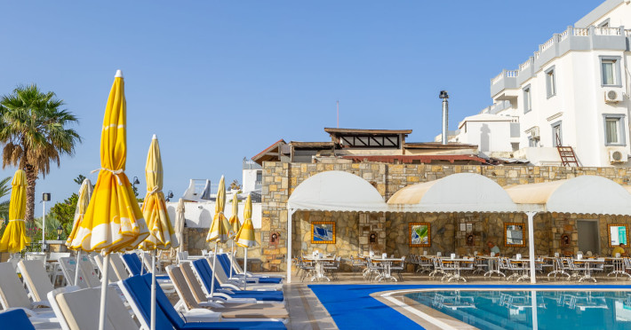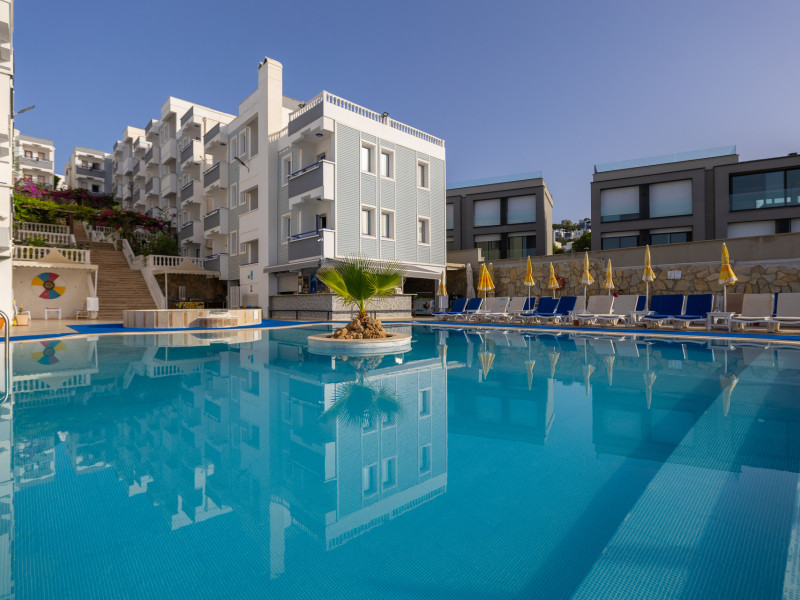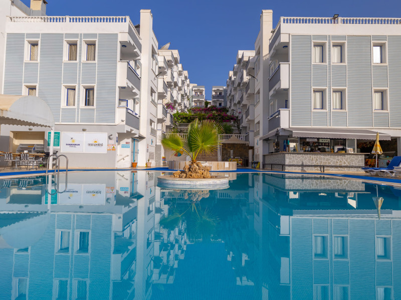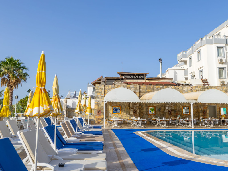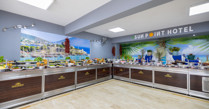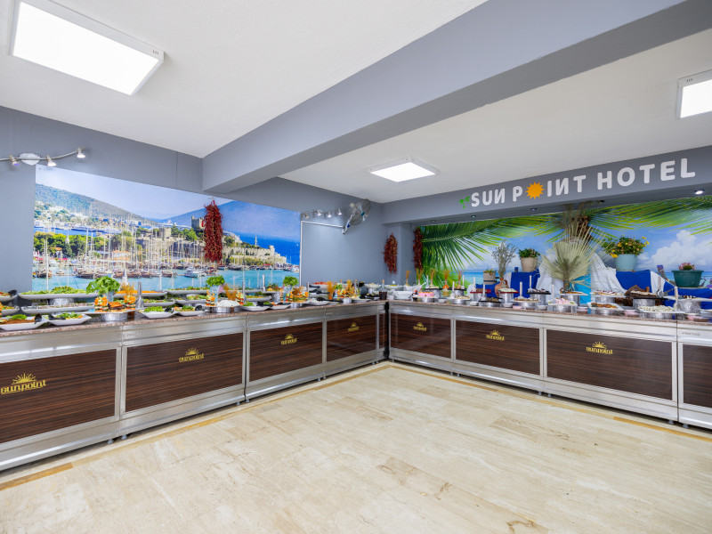 The hotel Sunpoint Hotel Bodrum is located approximately 400 m from the private and public beach. The nearest bars and restaurants can be found at a distance of around 200 m. The old town is around 3 km away. The nearest shops you can reach within arThe hotel Sunpoint Hotel Bodrum is located approximately 400 m from the private and public beach. The nearest bars and restaurants can be found at a distance of around 200 m. The old town is around 3 km away. The nearest shops you can reach within around 500 m. There is a shuttle service between the hotel and the airport. Nearby there is a disco which offers entertainment in high season. On the beach are beach towels available. The halal hotel is equipped with a 24h reception (check-in is possible around the clock), a lobby bar, Wi-Fi, cash machine as well as a first aid kit. Outside there is a childrens pool, where sun loungers and pool towels are available for free. In addition, the hotel Sunpoint Hotel Bodrum is video-monitored 24h a day. You can store your luggage in the hotels storage room. There is also a laundry service. For your comfort the hotel page will ensure you are looked after. If necessary, you can contact the medical centre. The energy supply is 220 Volts. For guests on their honeymoon, the hotel has special offers such as sparkling wine or a basket of fruit in the room. In your hotel, a lot of focus is placed on sustainability. This includes the provision of soap and shampoo dispensers and environmentally-friendly cleaning. The hotel requires that all guests pay a deposit upon arrival. Catering As catering services the hotel offers all-inclusive, all-inclusive light, full board and breakfast only. Breakfast is offered from the buffet. Enjoy your lunch from the buffet or as a set meal with starters, salads and desserts. Dinner is also served as a buffet with starters, salads and desserts. All Inclusive Light includes coffee amp; tea as well as local alcoholic beverages. When booking all-inclusive, one welcome drink is included. As part of the all-inclusive service, local alcoholic beverages (24h) are available around the clock and at no extra charge. For the meals, there are a buffet restaurant (calorie-reduced dishes) and a 24h snackbar as well as the pool bar. The drinks menu of the hotel includes water, soft drinks, coffee and tea, beer and wine. Guests are requested to wear appropriate clothing at lunch. Distances Nearest town: approximately at 500 km Airport: approximately at 40 km Bus stop: approximately at 20 m Cinema: approximately at 2 km Taxi rank: approximately at 25 m Port: approximately at 3 km Distance to the sea: approximately at 400 m Nearest doctor: approximately at 500 m Nearest dentist: approximately at 500 m Pharmacy: approximately at 100 m Hospital: approximately at 3 km Dialysis station: approximately at 25 m Nearest bank: approximately at 2 km Tourist information: approximately at 1 km Nearest highway: approximately at 1 km Subway station: approximately at 3 km Nearest public transport: approximately at 3 km Nearest park: approximately at 100 m Nearest lake: approximately at 25 km Nearest forest: approximately at 1 km Business center: approximately at 25 m Climbing park: approximately at 3 km Tennis court: approximately at 200 m Sports amp; Leisure In the surrounding you can try your hand for example at bananaboat riding . Also darts is offered at the hotel. Furthermore, various water sports such as fishing and diving are offered in the area. For your wellbeing the hotel also offers massages. Additional information The hotel, last renovated in 2025, has a total of 54 rooms. Larger groups of young people under the age of 25 are not allowed in this property, as this is a hotel especially for families. The hotel staff speak English, Russian, Dutch and Turkish.