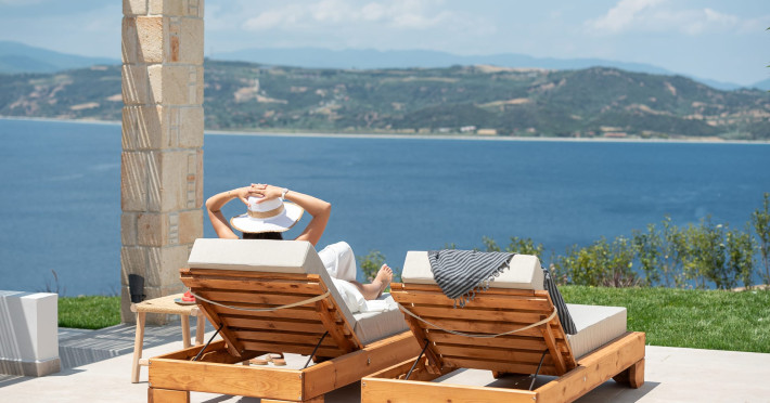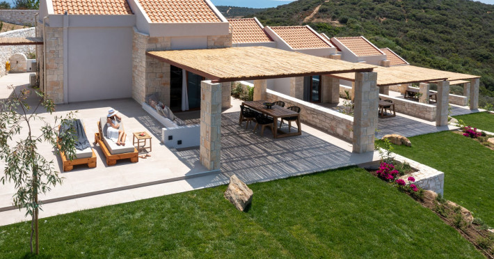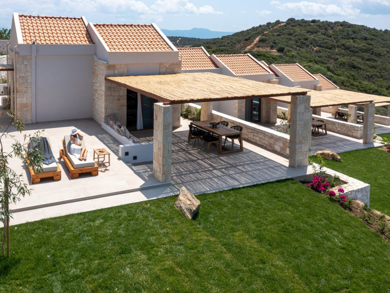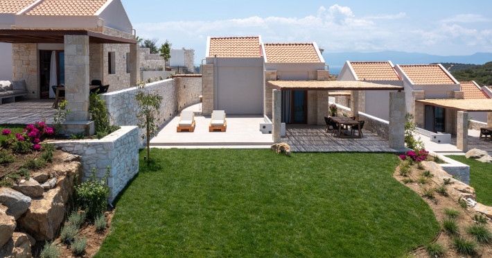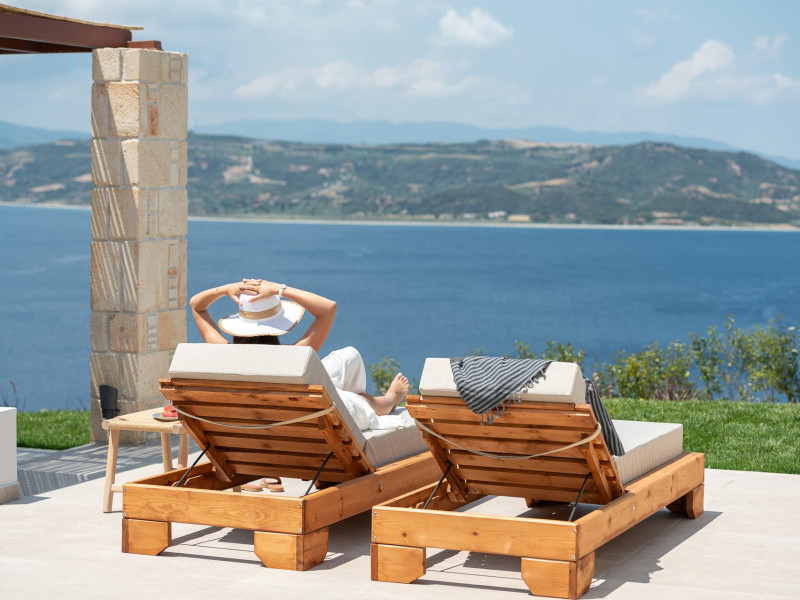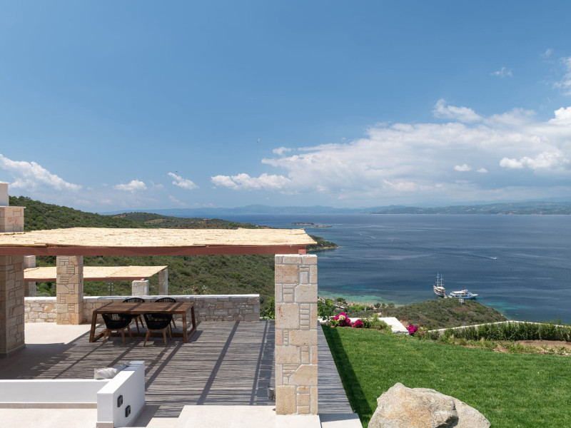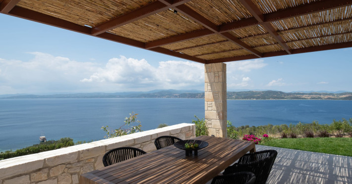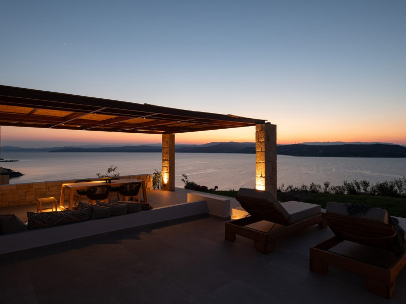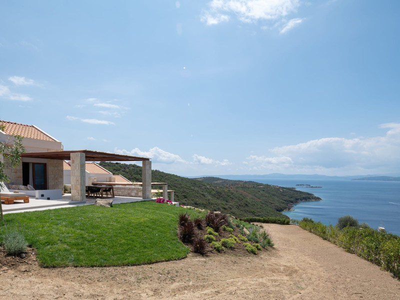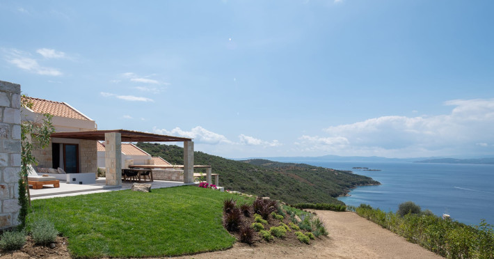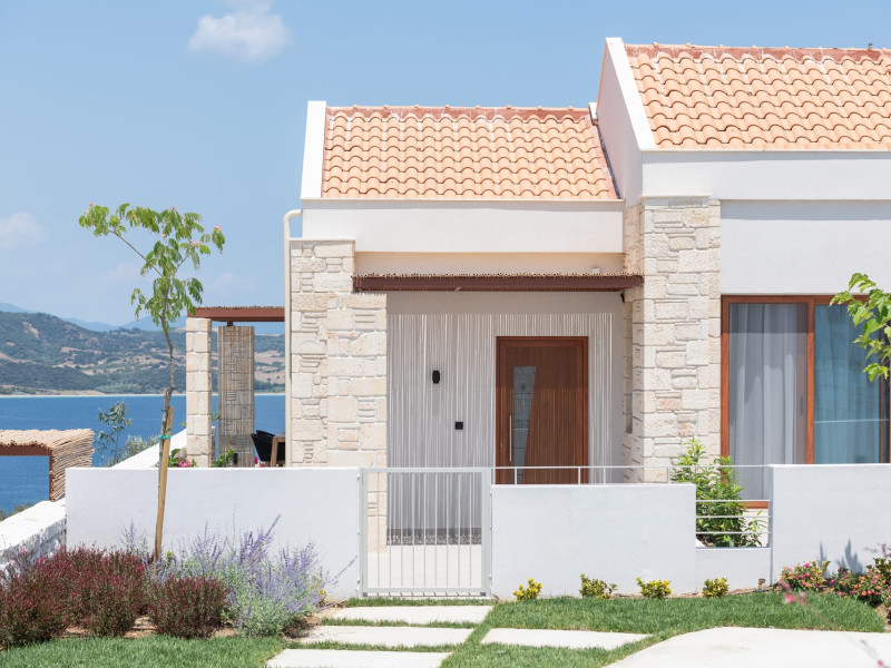 The Sunrise team is growing and welcomes you with 4 new villas, at Sunrise Villas in the area Trygona, with an amazing view of the sea and the spot with the most perfect sunset on the island. We are located on the beautiful island of Ammouliani in Halkidiki, just 500 meters from the settlement and port, 500 meters from banana beach and 400 meters from Elia coast. Where the villas are built, the green hill, embraces the blue sea and the tranquility and the view offered by this combination, are ideal for your most peaceful and enjoyable vacation. Sunrise Villas is the ideal destination for families and couples who prefer privacy in an atmosphere of harmony, peace and calmness. Each villa is self-contained with private parking. It has a bedroom with a King Size bed, a fully equipped kitchen, a living room with a sofa that becomes a bed and has direct access to the garden and the terrace with an unobstructed view of the sea. It has air conditioning in all areas and a flat TV in the bedroom and living room. Our villas are designed for complete comfort in order to offer a relaxing atmosphere and peace. They are fully equipped and include: Bedroom, bathroom, kitchen with all the needed amenities, living room, large terrace with garden and a magnificent view of the Sigitikos gulf and the island of Ammouliani.
