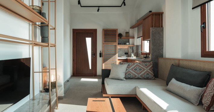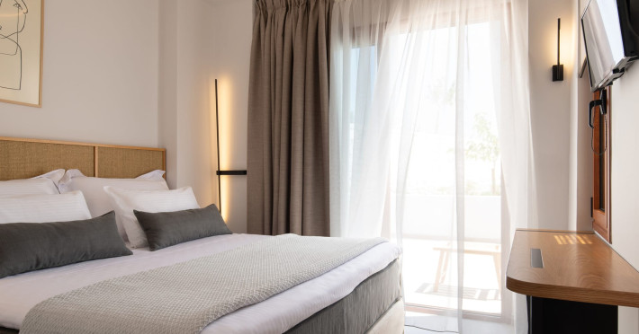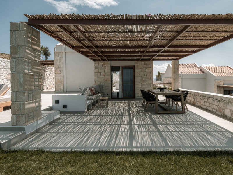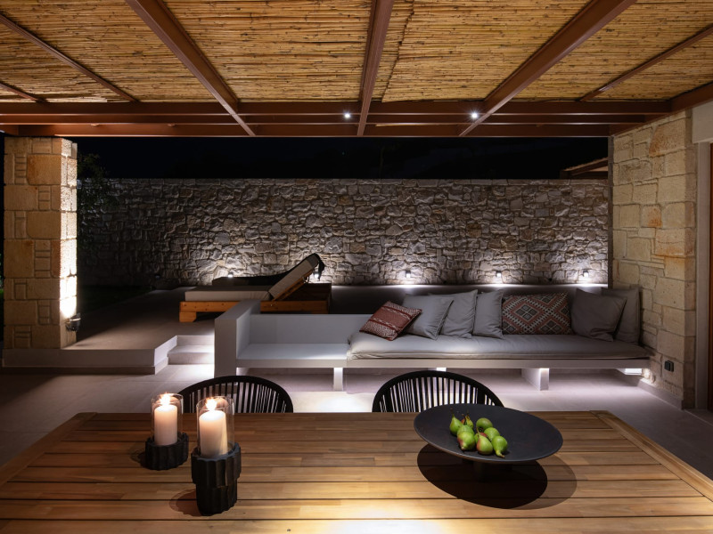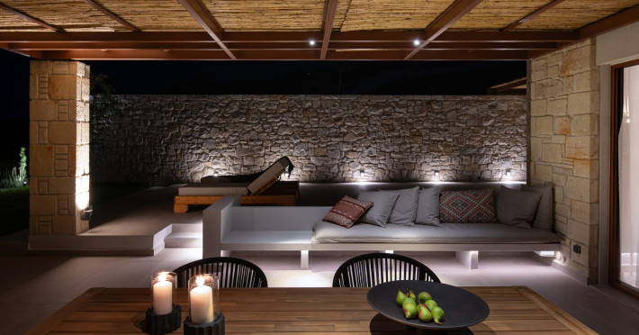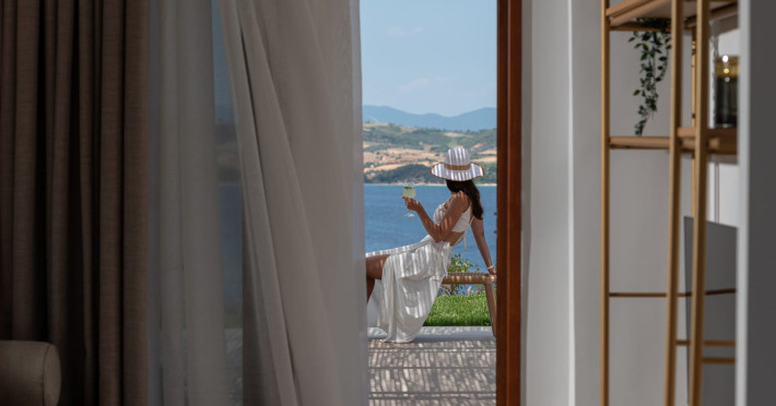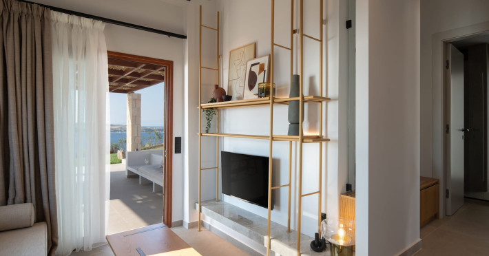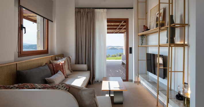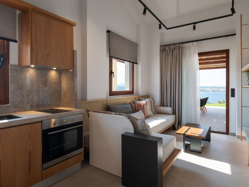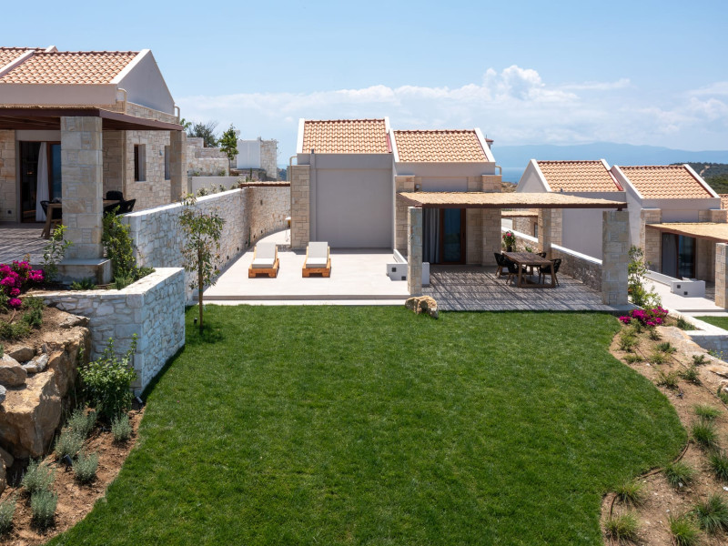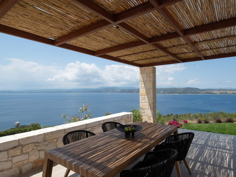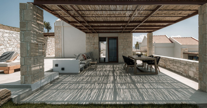 The Sunrise team is growing and welcomes you with 4 new villas, at Sunrise Villas in the area Trygona, with an amazing view of the sea and the spot with the most perfect sunset on the island. We are located on the beautiful island of Ammouliani in Halkidiki, just 500 meters from the settlement and port, 500 meters from banana beach and 400 meters from Elia coast. Where the villas are built, the green hill, embraces the blue sea and the tranquility and the view offered by this combination, are ideal for your most peaceful and enjoyable vacation. Sunrise Villas is the ideal destination for families and couples who prefer privacy in an atmosphere of harmony, peace and calmness. Each villa is self-contained with private parking. It has a bedroom with a King Size bed, a fully equipped kitchen, a living room with a sofa that becomes a bed and has direct access to the garden and the terrace with an unobstructed view of the sea. It has air conditioning in all areas and a flat TV in the bedroom and living room. Our villas are designed for complete comfort in order to offer a relaxing atmosphere and peace. They are fully equipped and include: Bedroom, bathroom, kitchen with all the needed amenities, living room, large terrace with garden and a magnificent view of the Sigitikos gulf and the island of Ammouliani.