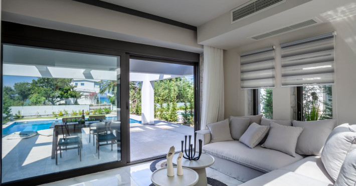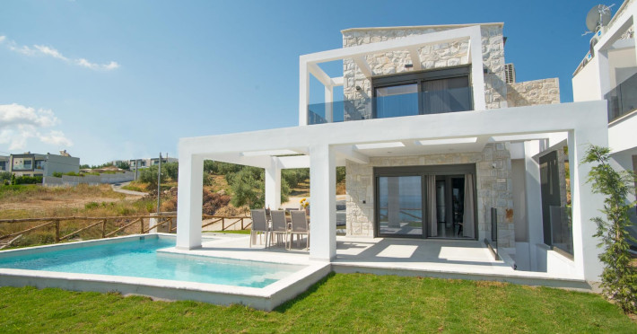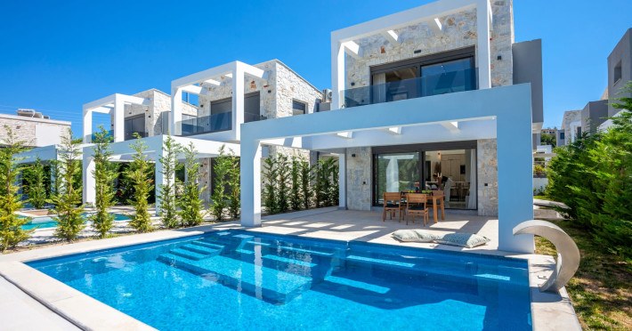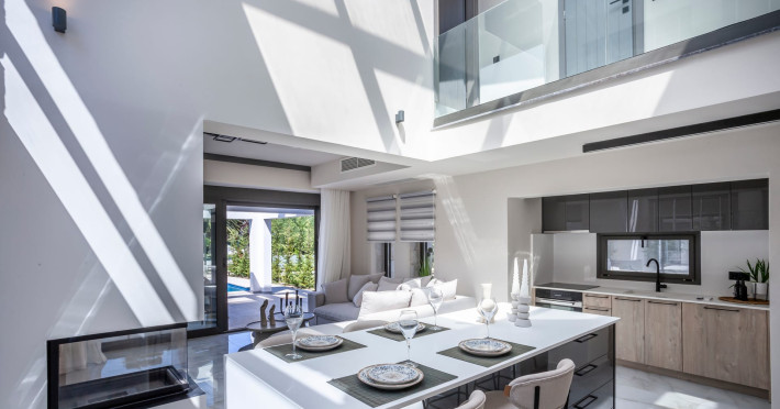The luxurious villas are offering breathtaking sea views that stretch across the horizon. These villas are designed with contemporary elegance in mind, featuring modern furniture that combines comfort with style. Each villa is spread across three spacious floors. The outdoor area is perfect for relaxing. Whether you're soaking in the beauty of the Aegean Sea or enjoying the chic, minimalistic design of the villa, these villas offer an exceptional escape in one of Greece’s most coveted regions.