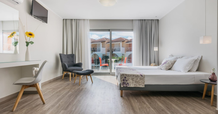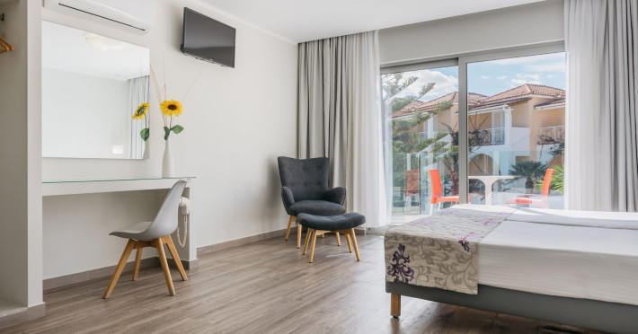 Just 5 minutes walk from the vibrant Tsilivi village in Zakynthos (Zante), Greece, the adults-only Sunrise Zante Hotel awaits to host your most relaxing and carefree holidays. Enjoying an excellent location close to popular beaches and offering all the facilities you need during your holidays, like a spacious swimming pool, two restaurants, an all-day pool bar, and lush gardens, Sunrise is your top choice for accommodation in Tsilivi.This family-ran property pays tribute to authentic Greek hospitality, offering spacious and comfortable rooms, top-notch cleaning, and real Greek food. In addition to its sumptuous breakfast, lunch, and dinner, the hotel features an all-day Pool Bar & Restaurant as well as an Island Cuisine a la carte restaurant, introducing you to the richness of local and Greek cuisine.The hotel’s oversized pool is ideal for lazy days under the Greek sun, while the nearby (or more distant) beaches can be the experience of a lifetime! Moreover, the hotel’s expertise in the destination and in collaboration with its sister tour company, ensure that you will be informed about all the secrets of Zakynthos and be able to explore the island on a series of VIP tours & excursions!