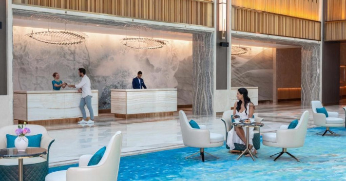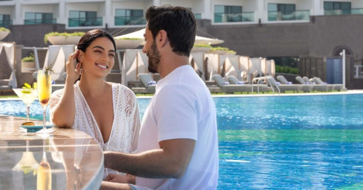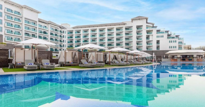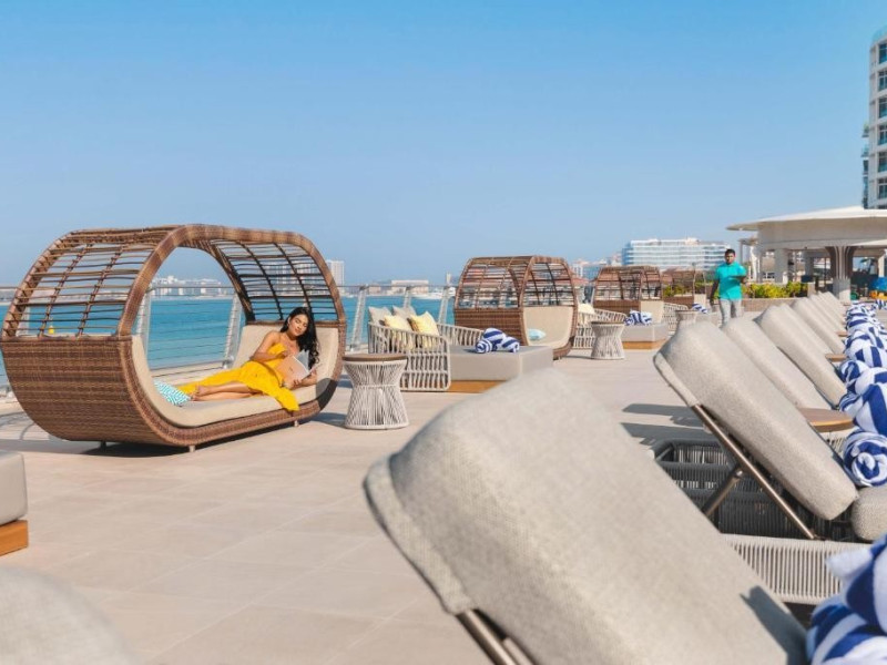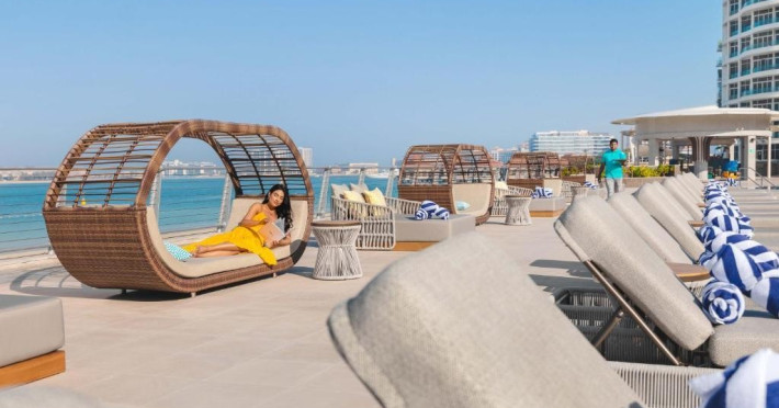 Taj Exotica Resort & Spa, The Palm, Dubai, este una dintre statiunile de lux de pe emblematica insula Palm Jumeirah. Acest complex de cinci stele se mandreste cu cea mai lunga piscina din partea de est a Palm Jumeirah, care se intinde de-a lungul unei plaje private de 230 de metri.