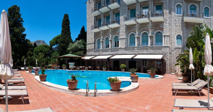 Descriere: Hotelul Taormina Park de 4 stele este la 5 minute de mers pe jos de centrul orasului Taormina, oferind o vedere frumoasa la Marea Ionica Localizare:Hotelul se afla la doar 400 de metri de amfiteatrul grecesc din Taormina. Gara Taormina-Giardini este la 7 km. Facilitati Hotel:Acesta are o piscina in aer liber si o terasa panoramica mare.Restaurantul Hotelului Taormina Park este specializat in bucataria si vinurile locale siciliene si italiene. Mesele sunt servite pe terasa cu vedere la mare in timpul verii si in sala de mese cu ferestre mari si vedere la mare, in timpul iernii. Facilitati Camere:Fiecare camera este dotata cu aer conditionat si mobilier din lemn de nuc. Cele mai multe au balcon si vedere la mare, la Muntele Etna sau la parcul inconjurator. Masa:Fara masa Plaja:Plaja cu pietricele Pagina Web: http://www.taorminaparkhotel.centuryhotelsgroup.com/