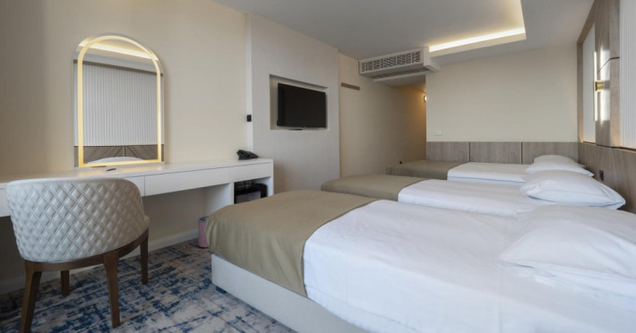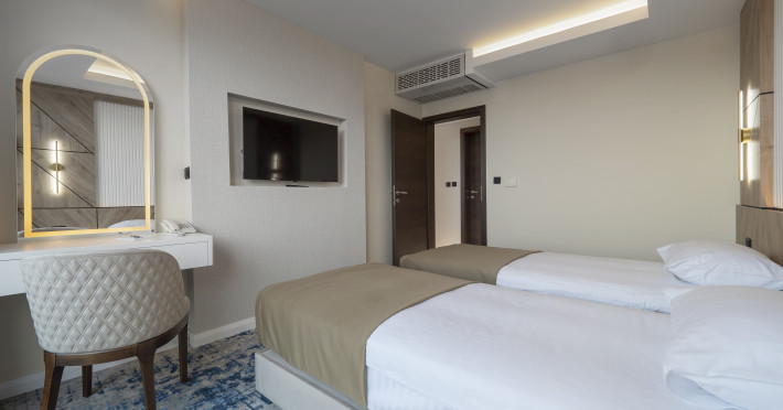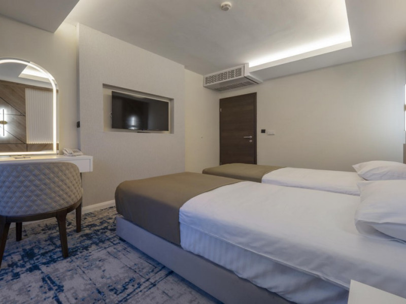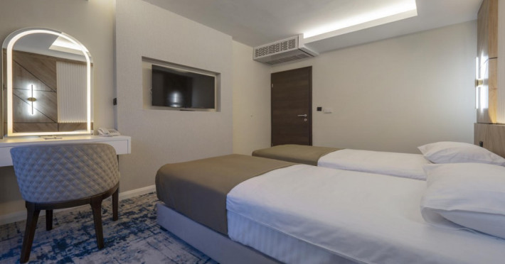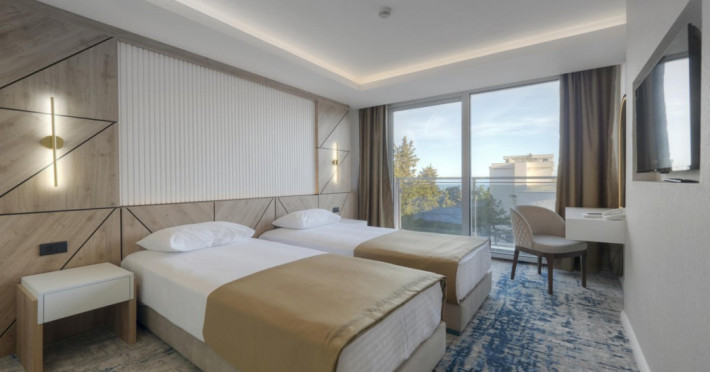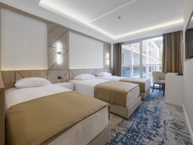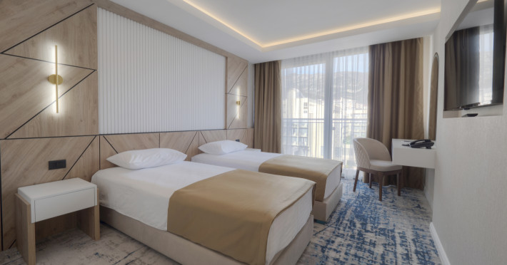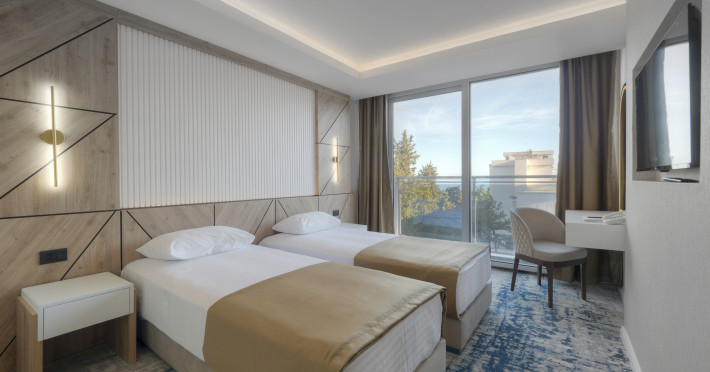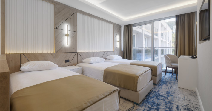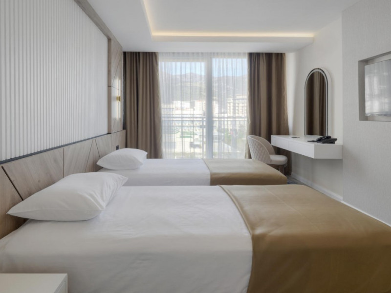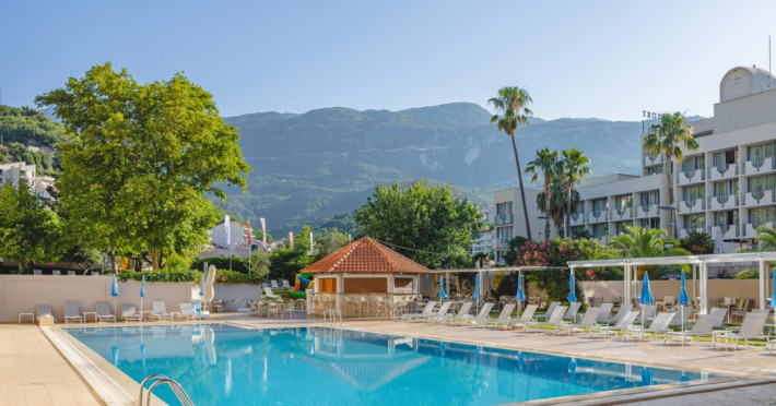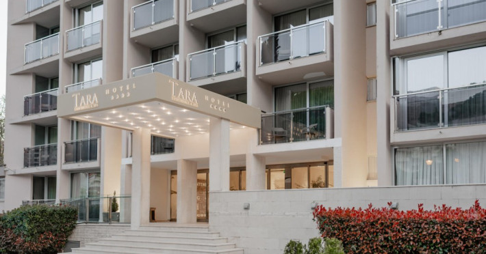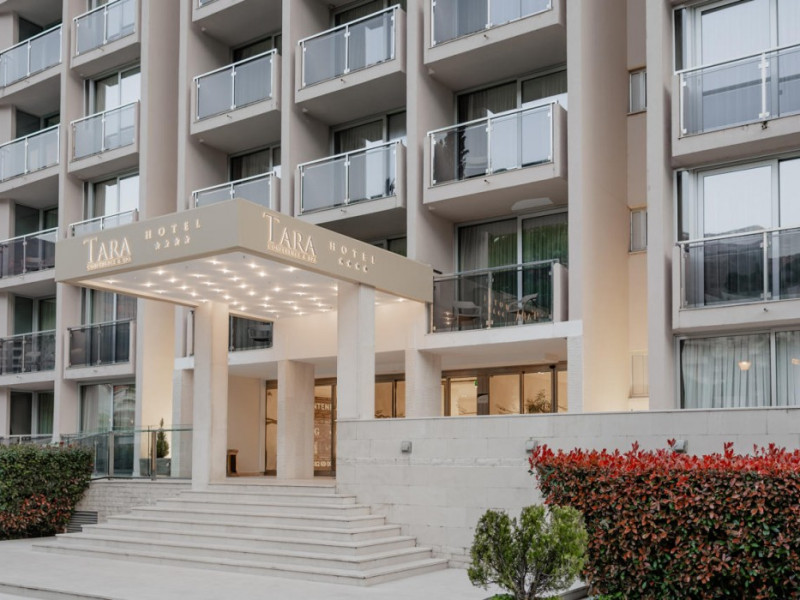Located in Budva, Hotel Tara Becici is a 2-minute walk from Becici Beach. It offers accommodations with a seasonal outdoor swimming pool, private parking, a fitness center, a garden, a restaurant, and a bar. Amenities include a kids' club, a 24-hour front desk, and free WiFi throughout the property. Guests can enjoy playing pool and table tennis. Car rental is available. Guest rooms have air conditioning, a flat-screen TV, and a private bathroom with a shower and free toiletries; some rooms include a terrace. Dukley Beach is a 6-minute walk away, and Slovenska Beach is half a mile away. Tivat Airport is 26 km from the hotel. The Tara Hotel is a hotel.