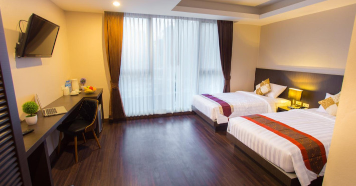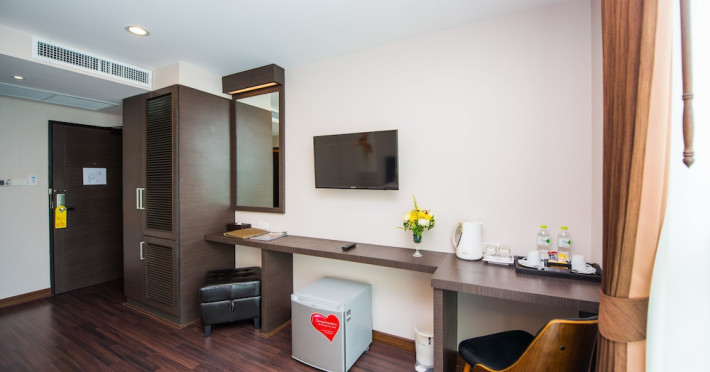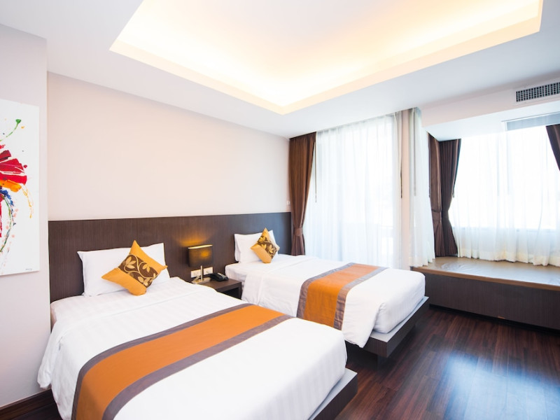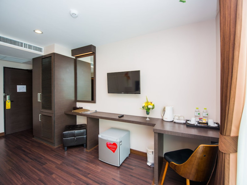Located in the Ao Nang area, Tetris Hotel offers comfortable, air-conditioned rooms with amenities such as LCD TVs, free Wi-Fi, refrigerators, safes, desks, and private bathrooms with complimentary toiletries and hair dryers. Guests can enjoy Thai cuisine at the on-site restaurant or relax with a drink at the bar/lounge. The hotel features an outdoor pool, a garden, a shared lounge, a terrace with city views, and offers concierge services. Additional amenities include a 24-hour front desk, luggage storage, laundry services, and free self-parking. A cash deposit (or passport for foreign guests) is required upon check-in and refunded at check-out. The hotel provides shuttle service to the beach for a surcharge, as well as airport transportation (surcharge). Bike hire is available. The Tetris Hotel (SHA) by ZUZU is a hotel.