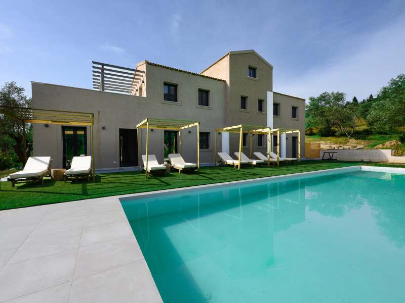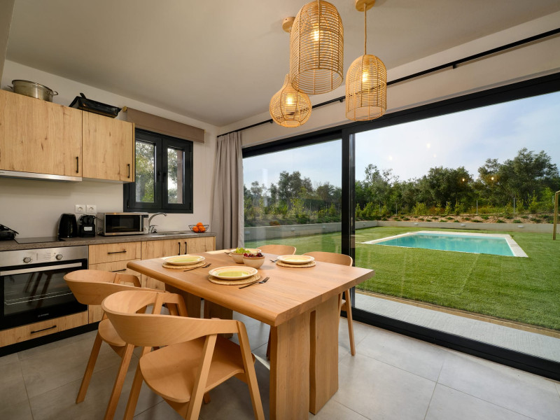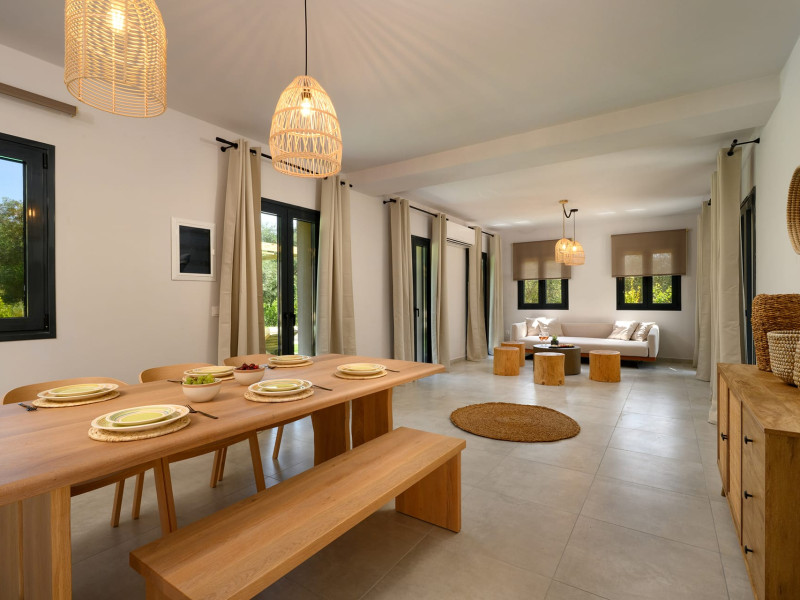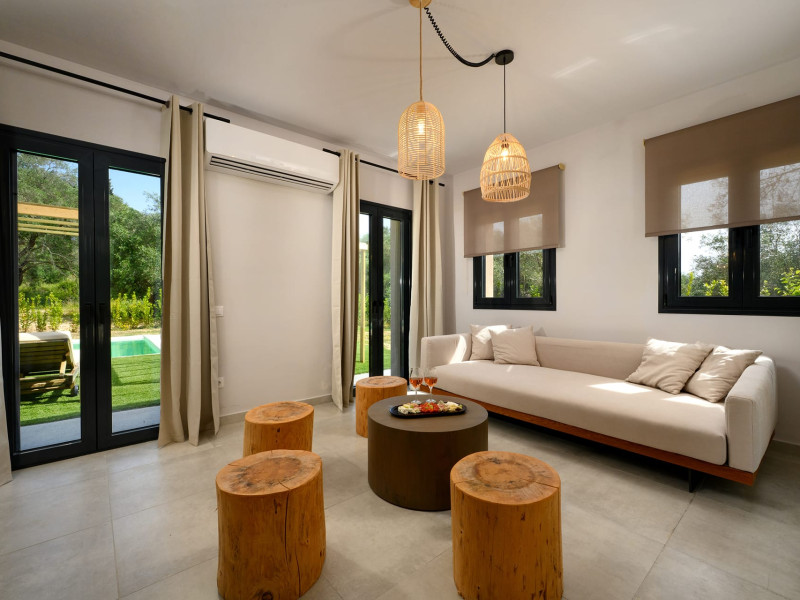 At AEOLINA, sustainability is not just a design choice — it is our responsibility as villa owners. By choosing solid wood furnishings crafted by local artisans, we reduce waste and ensure durability, while natural textures bring harmony with the olive-grove setting. Thoughtful lighting design enhances both comfort and energy efficiency, curated in collaboration with international artist Spiros Gelekas, whose vision blends beauty with mindful living. In every detail, we seek to balance elegance with respect for nature, so that each stay leaves a lighter footprint.