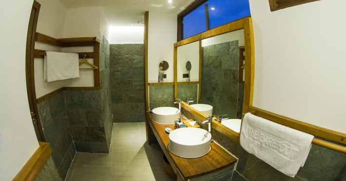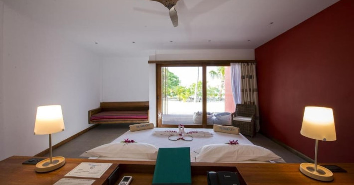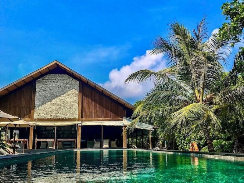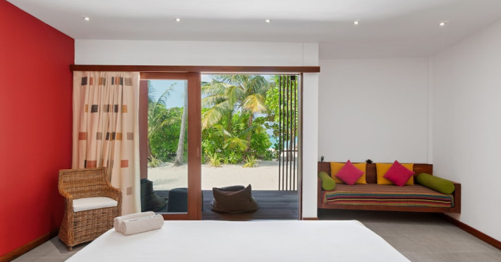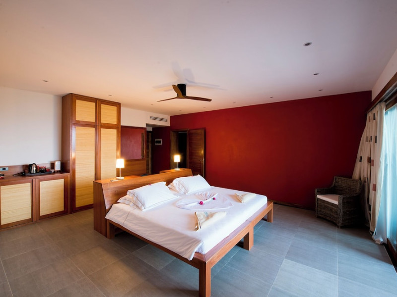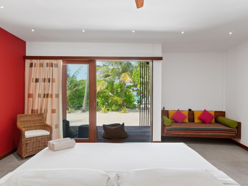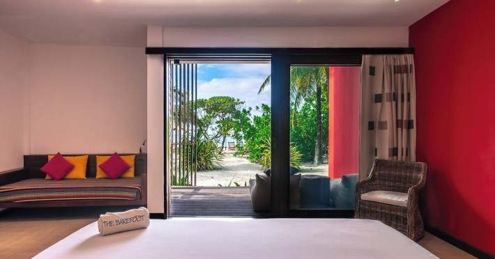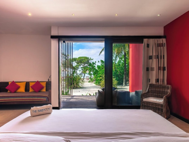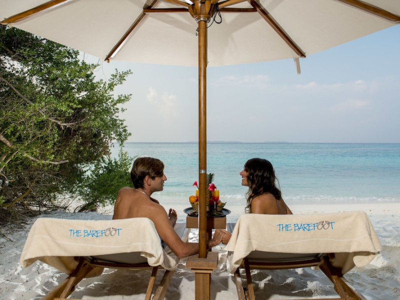 The Barefoot Eco Hotel, a 4-star eco-friendly hotel on Hanimadhoo Island in the Maldives, offers a tranquil escape in an almost untouched forest. Located in the preserved deep North of the Maldives, it's easily accessible via numerous daily flights from Malé International Airport. The hotel boasts a long private sandy beach, a turquoise lagoon, and various accommodation options, from seaside rooms to beachfront villas. Onsite amenities include a sea-view restaurant, a panoramic bar, a diving center, a spa offering massages and treatments, an outdoor pool, a 24-hour fitness center, and complimentary Wi-Fi. Additional amenities include concierge services, babysitting (surcharge), room service (limited hours), a poolside bar, and three bars/lounges. The hotel also features a 24-hour front desk, multilingual staff, luggage storage, and a 24-hour airport shuttle (surcharge). Guest rooms are air-conditioned and include minibars and memory foam beds. Private bathrooms offer rainfall showerheads and complimentary toiletries. The hotel is a 6-minute walk from the Maldives Climate Observatory and is within the region of Baarah Dock and Utheemu Palace. The Barefoot Eco Hotel is a hotel.