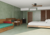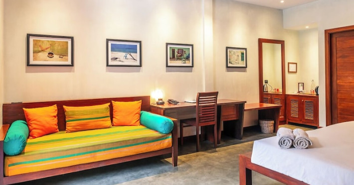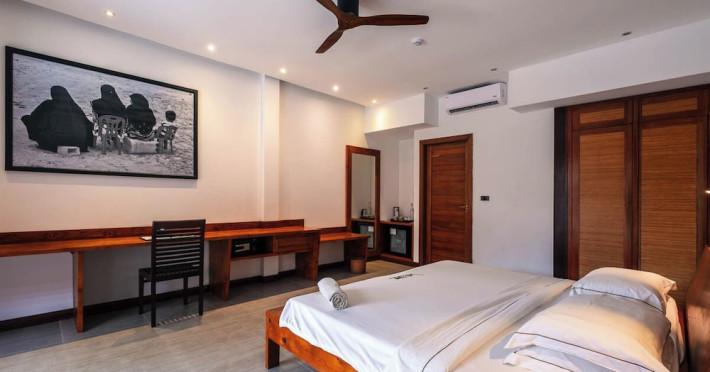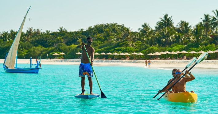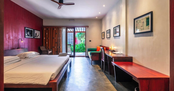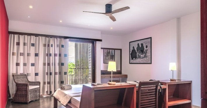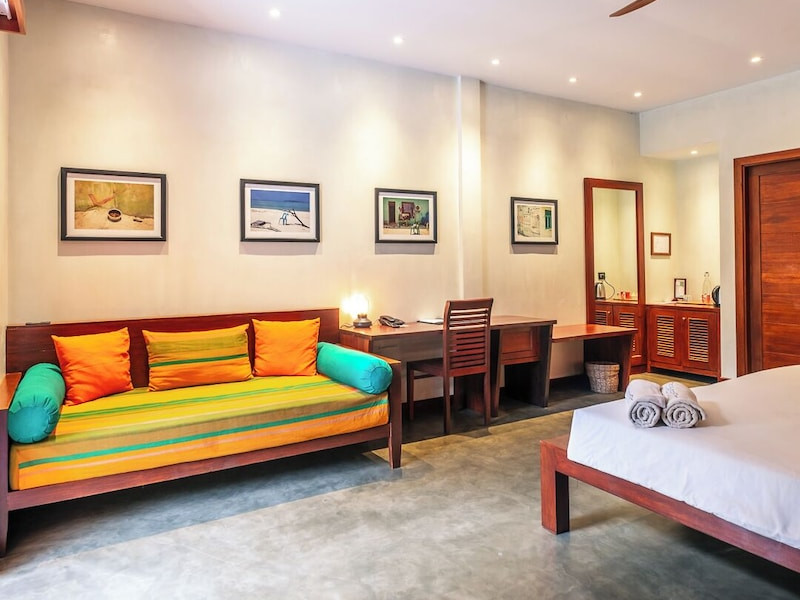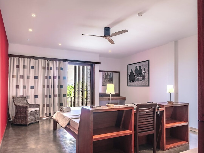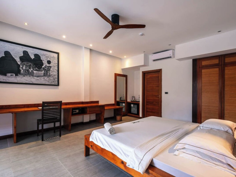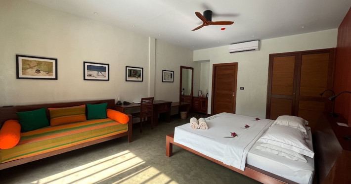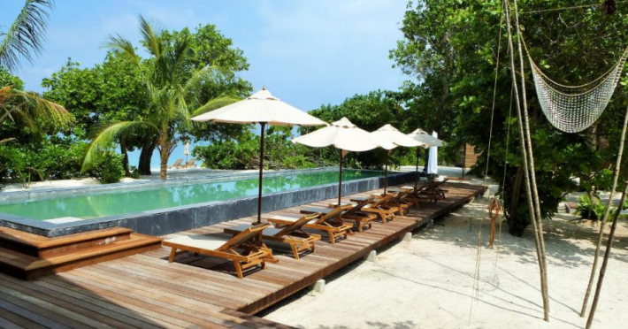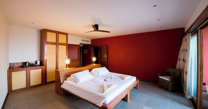 The Barefoot Eco Hotel, a 4-star eco-friendly hotel on Hanimadhoo Island in the Maldives, offers a tranquil escape in an almost untouched forest. Located in the preserved deep North of the Maldives, it's easily accessible via numerous daily flights from Malé International Airport. The hotel boasts a long private sandy beach, a turquoise lagoon, and various accommodation options, from seaside rooms to beachfront villas. Onsite amenities include a sea-view restaurant, a panoramic bar, a diving center, a spa offering massages and treatments, an outdoor pool, a 24-hour fitness center, and complimentary Wi-Fi. Additional amenities include concierge services, babysitting (surcharge), room service (limited hours), a poolside bar, and three bars/lounges. The hotel also features a 24-hour front desk, multilingual staff, luggage storage, and a 24-hour airport shuttle (surcharge). Guest rooms are air-conditioned and include minibars and memory foam beds. Private bathrooms offer rainfall showerheads and complimentary toiletries. The hotel is a 6-minute walk from the Maldives Climate Observatory and is within the region of Baarah Dock and Utheemu Palace. The Barefoot Eco Hotel is a hotel.