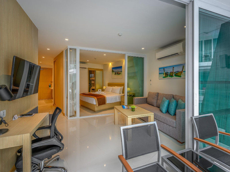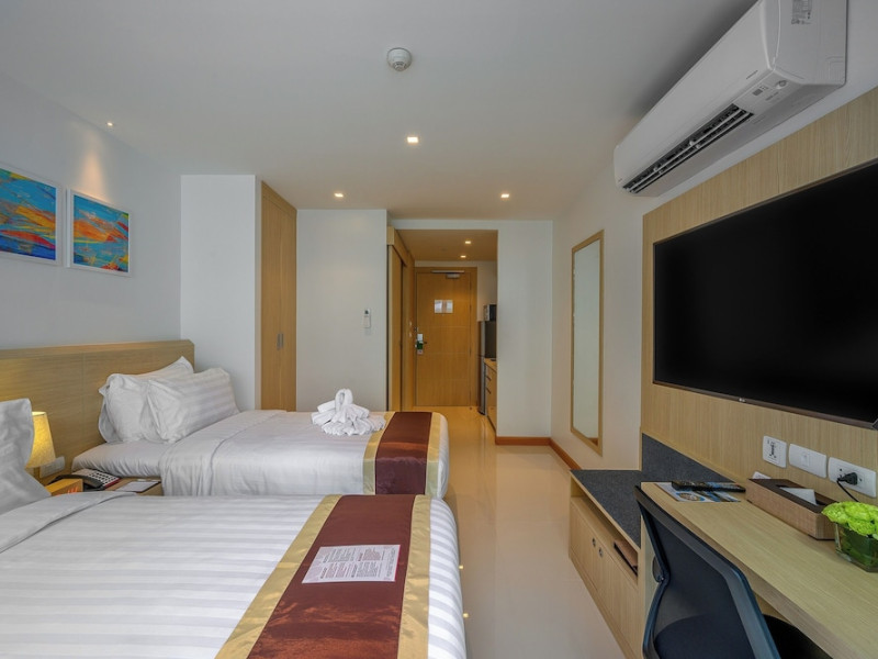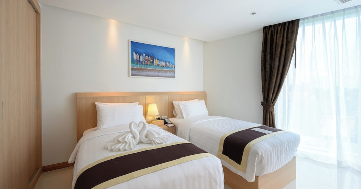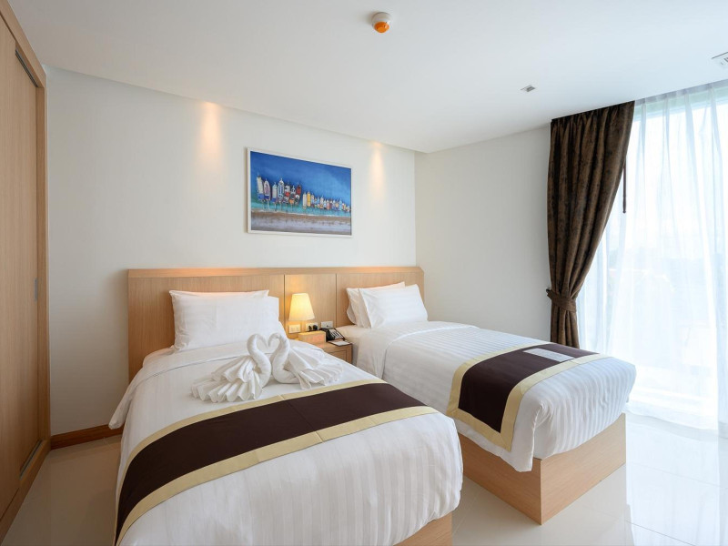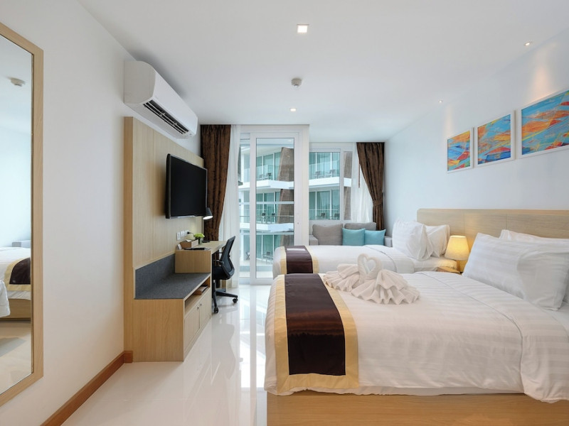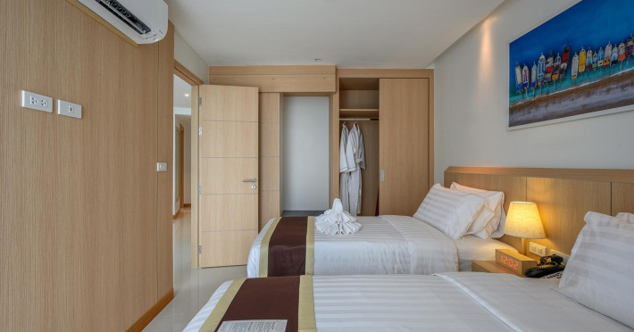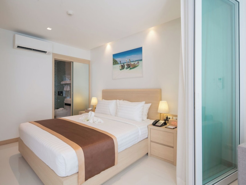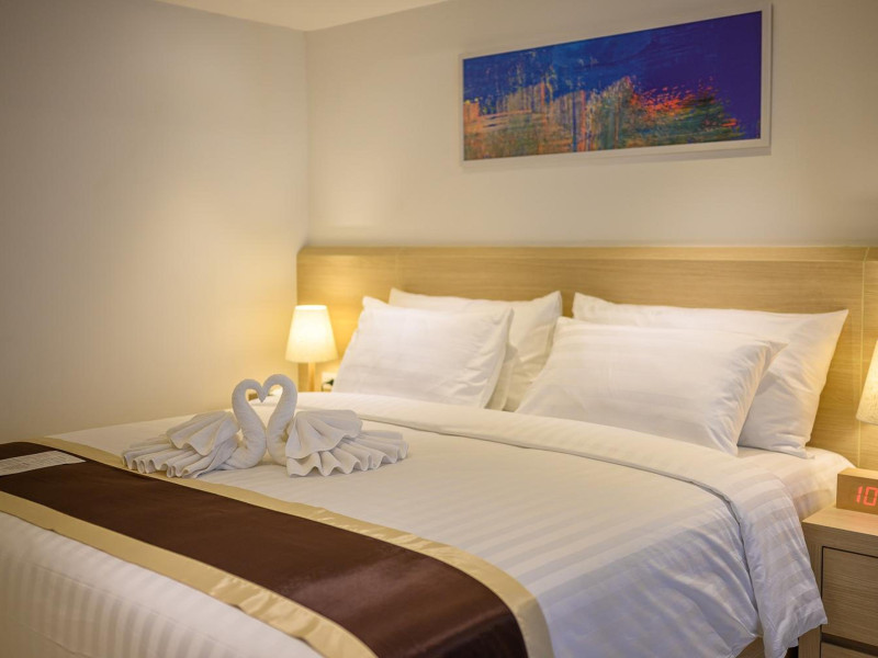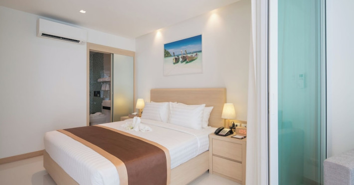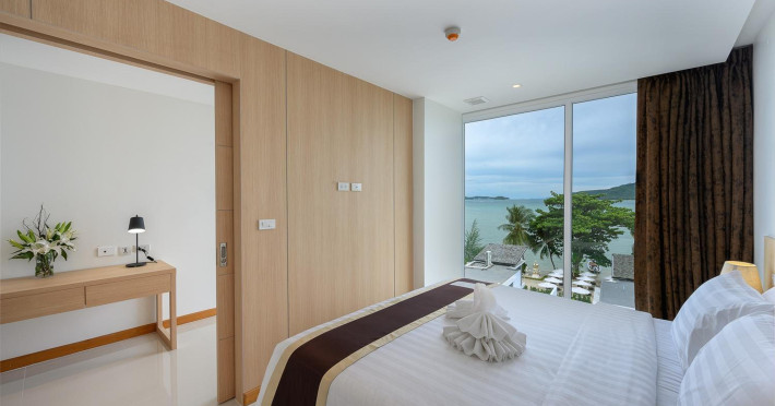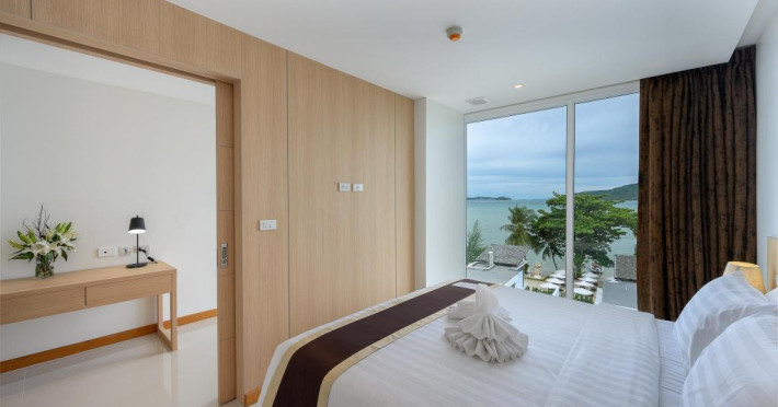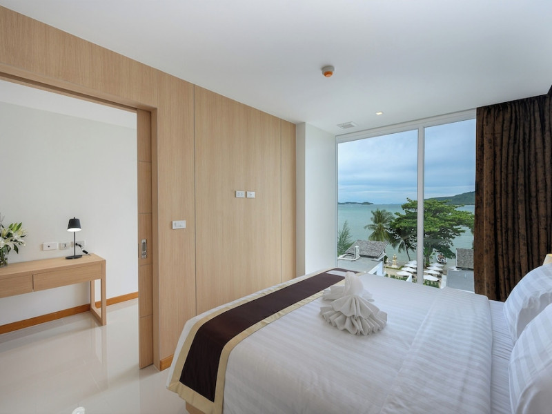 Located on Rawai Beach in Phuket, The Beachfront Hotel Phuket offers accommodation with a private beach area, an outdoor swimming pool, and a fitness center. Guests can enjoy the on-site restaurant, bar, and terrace. The hotel provides a 24-hour front desk, room service, airport transfers, and free Wi-Fi throughout the property. The air-conditioned rooms feature a seating area, a flat-screen TV with satellite channels, a kitchen, a dining area, a safety deposit box, and a private bathroom with a bidet, free toiletries, and a hairdryer. Some rooms offer sea views and a balcony. Free private parking is available. The hotel is close to Chalong Beach and Rawai Seafood Market, and within driving distance of Chalong Pier and Chalong Temple. Amenities include dry cleaning/laundry services, multilingual staff, and free self-parking. Guests can enjoy breakfast with buffet, American, and Asian options. Car hire, taxi and shuttle services are available. The Beachfront Hotel Phuket is a hotel.