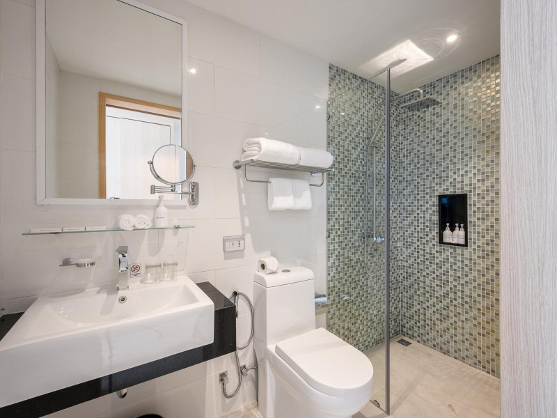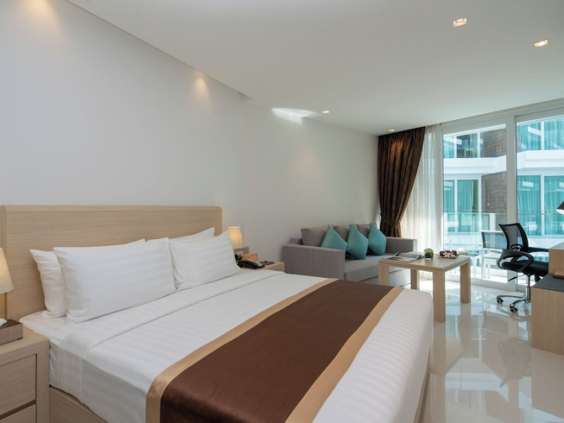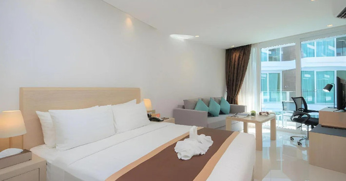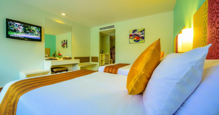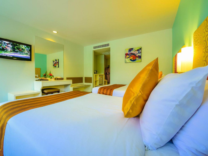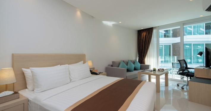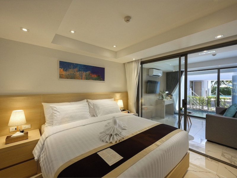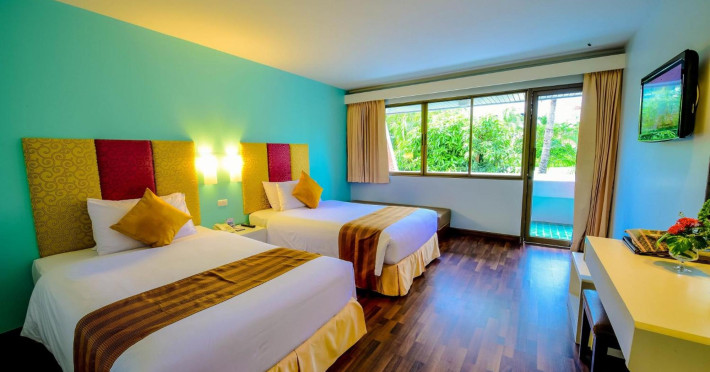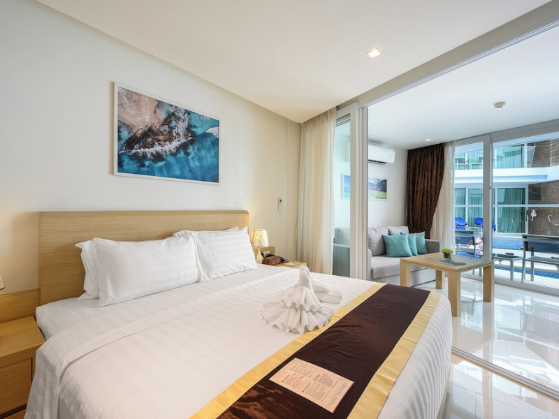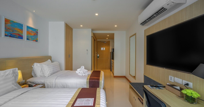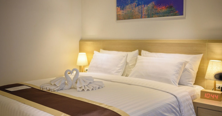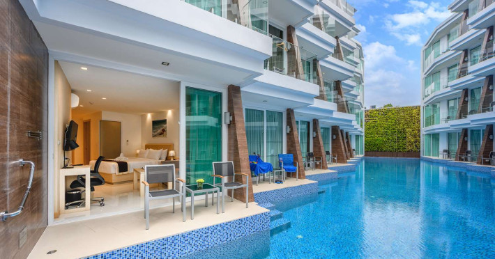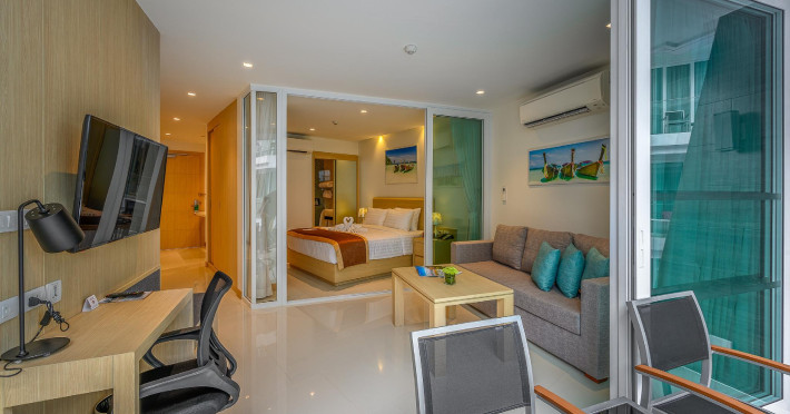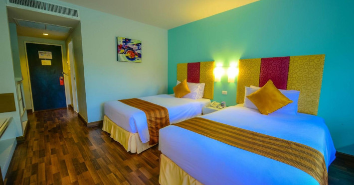 Located on Rawai Beach in Phuket, The Beachfront Hotel Phuket offers accommodation with a private beach area, an outdoor swimming pool, and a fitness center. Guests can enjoy the on-site restaurant, bar, and terrace. The hotel provides a 24-hour front desk, room service, airport transfers, and free Wi-Fi throughout the property. The air-conditioned rooms feature a seating area, a flat-screen TV with satellite channels, a kitchen, a dining area, a safety deposit box, and a private bathroom with a bidet, free toiletries, and a hairdryer. Some rooms offer sea views and a balcony. Free private parking is available. The hotel is close to Chalong Beach and Rawai Seafood Market, and within driving distance of Chalong Pier and Chalong Temple. Amenities include dry cleaning/laundry services, multilingual staff, and free self-parking. Guests can enjoy breakfast with buffet, American, and Asian options. Car hire, taxi and shuttle services are available. The Beachfront Hotel Phuket is a hotel.