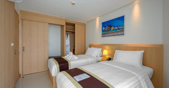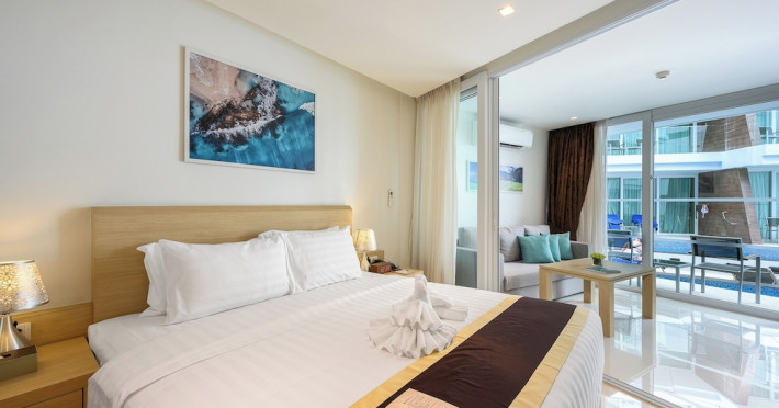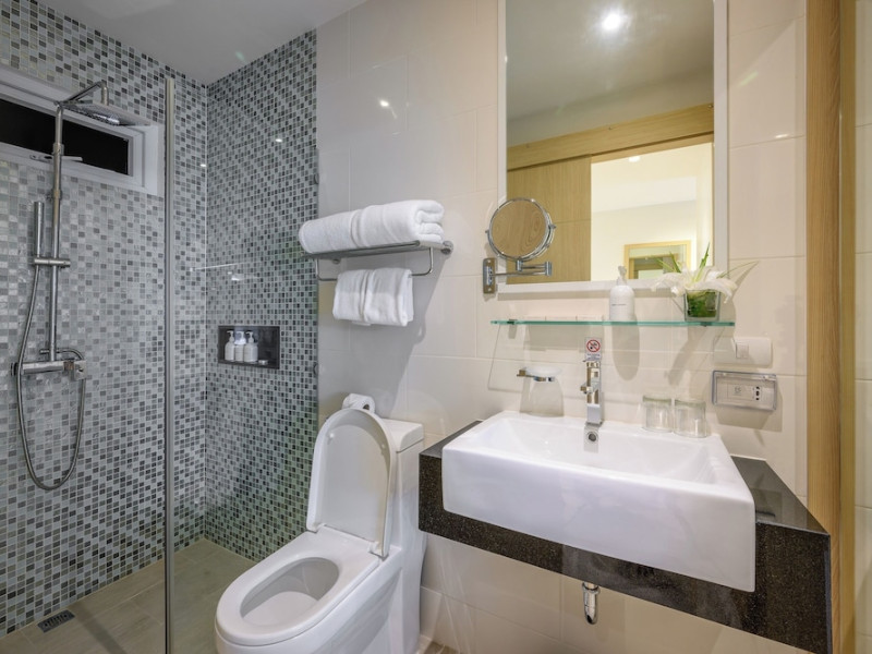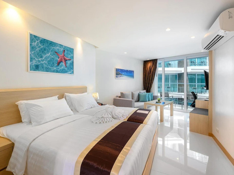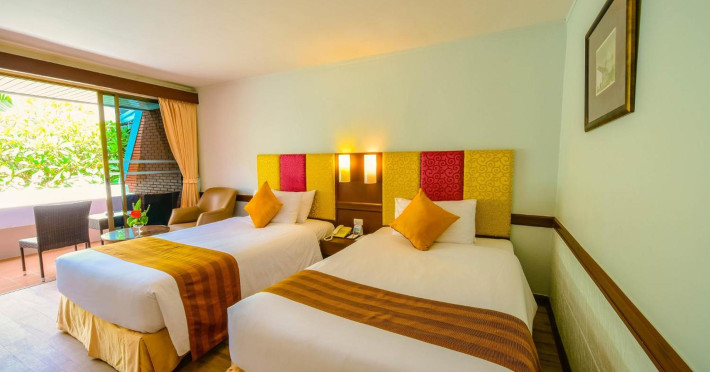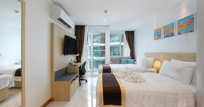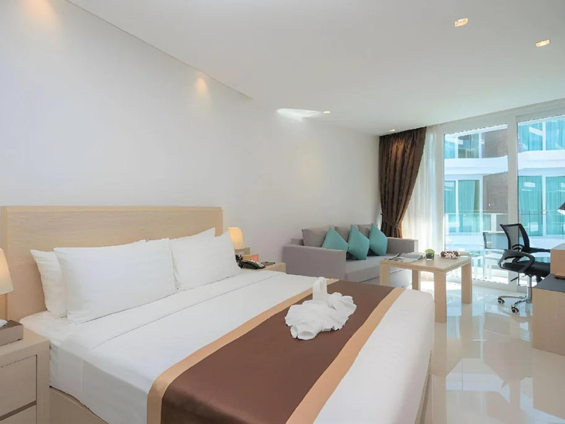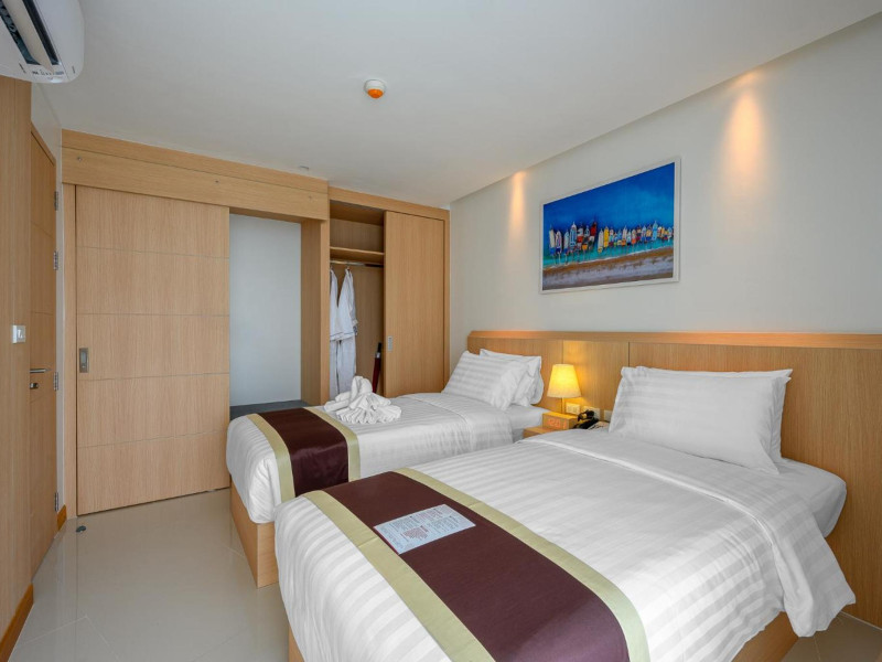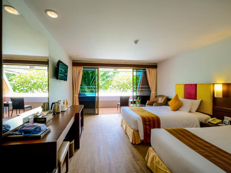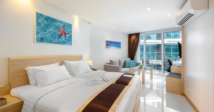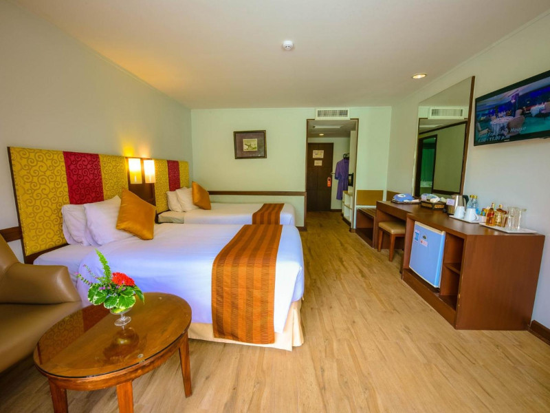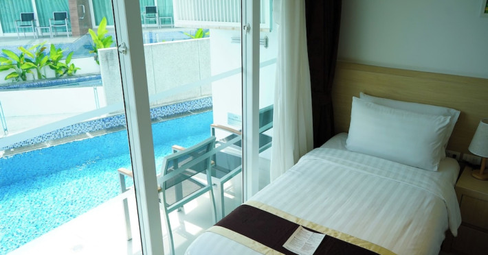 Located on Rawai Beach in Phuket, The Beachfront Hotel Phuket offers accommodation with a private beach area, an outdoor swimming pool, and a fitness center. Guests can enjoy the on-site restaurant, bar, and terrace. The hotel provides a 24-hour front desk, room service, airport transfers, and free Wi-Fi throughout the property. The air-conditioned rooms feature a seating area, a flat-screen TV with satellite channels, a kitchen, a dining area, a safety deposit box, and a private bathroom with a bidet, free toiletries, and a hairdryer. Some rooms offer sea views and a balcony. Free private parking is available. The hotel is close to Chalong Beach and Rawai Seafood Market, and within driving distance of Chalong Pier and Chalong Temple. Amenities include dry cleaning/laundry services, multilingual staff, and free self-parking. Guests can enjoy breakfast with buffet, American, and Asian options. Car hire, taxi and shuttle services are available. The Beachfront Hotel Phuket is a hotel.