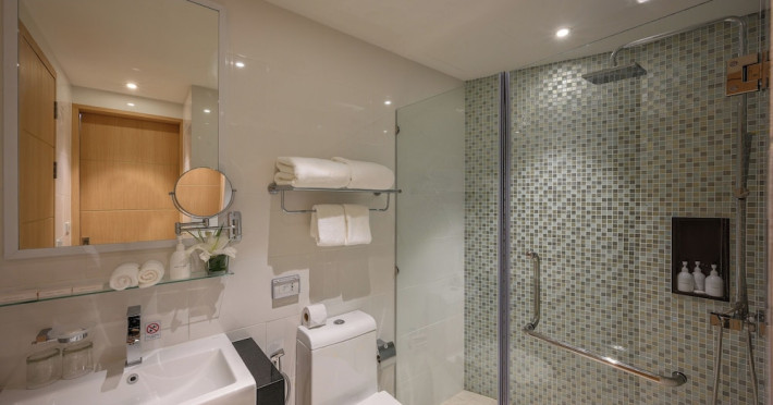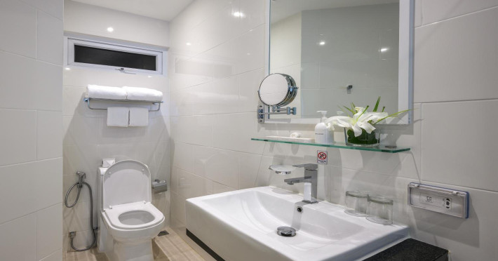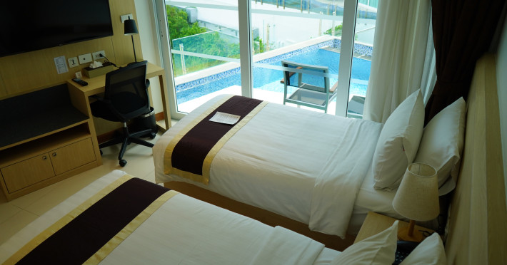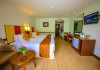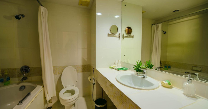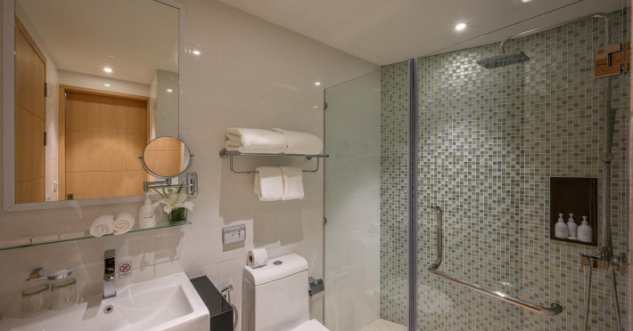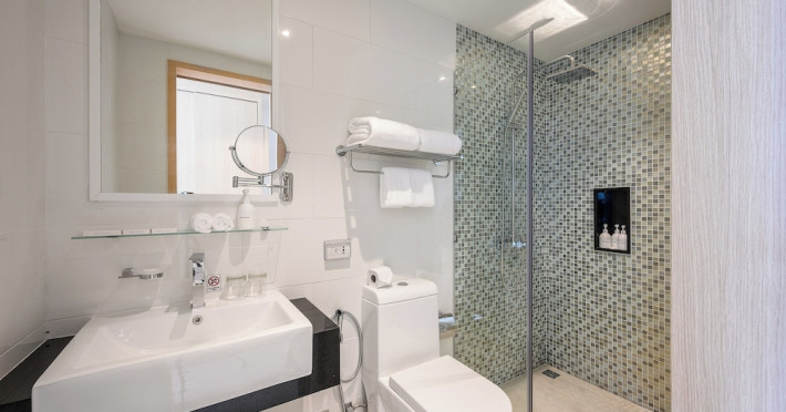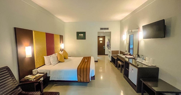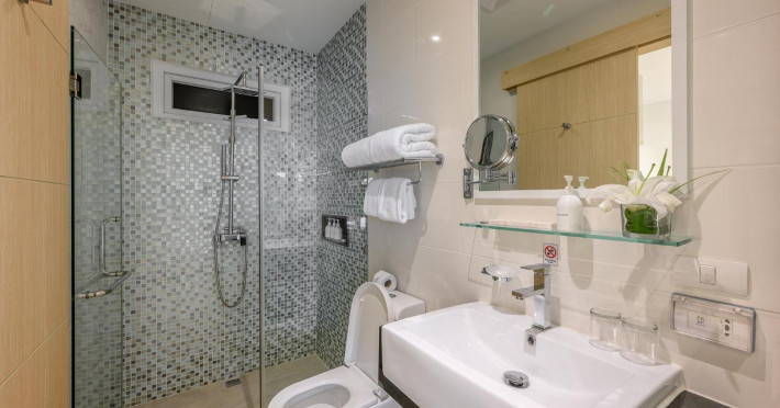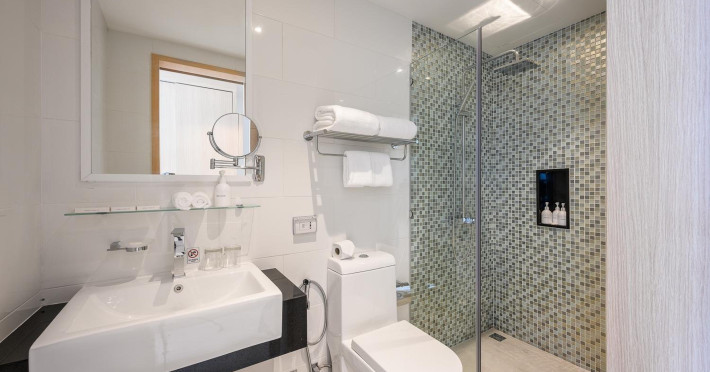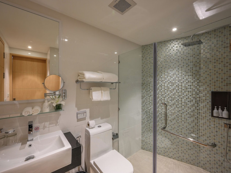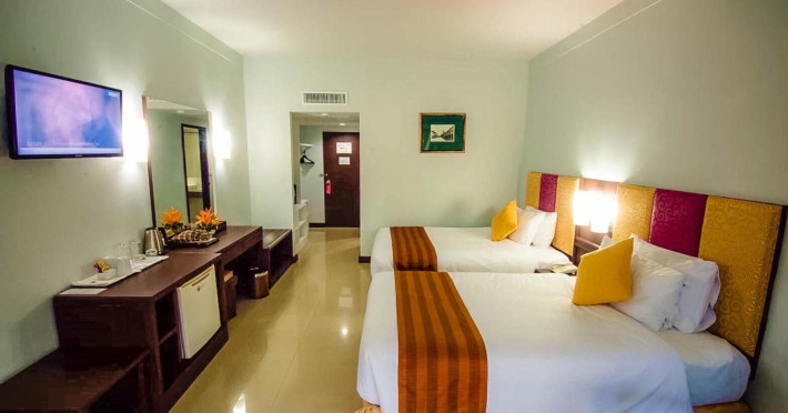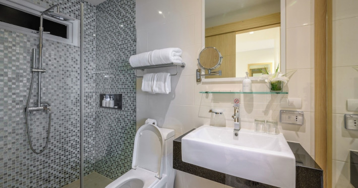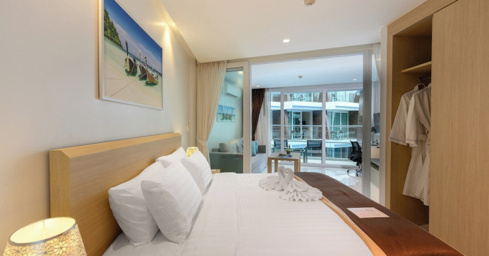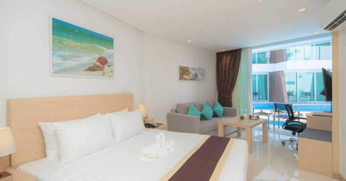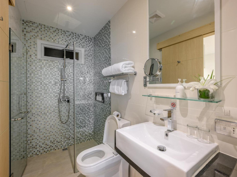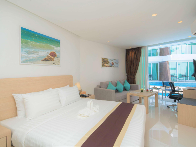 Located on Rawai Beach in Phuket, The Beachfront Hotel Phuket offers accommodation with a private beach area, an outdoor swimming pool, and a fitness center. Guests can enjoy the on-site restaurant, bar, and terrace. The hotel provides a 24-hour front desk, room service, airport transfers, and free Wi-Fi throughout the property. The air-conditioned rooms feature a seating area, a flat-screen TV with satellite channels, a kitchen, a dining area, a safety deposit box, and a private bathroom with a bidet, free toiletries, and a hairdryer. Some rooms offer sea views and a balcony. Free private parking is available. The hotel is close to Chalong Beach and Rawai Seafood Market, and within driving distance of Chalong Pier and Chalong Temple. Amenities include dry cleaning/laundry services, multilingual staff, and free self-parking. Guests can enjoy breakfast with buffet, American, and Asian options. Car hire, taxi and shuttle services are available. The Beachfront Hotel Phuket is a hotel.