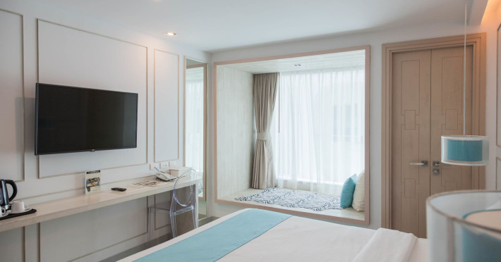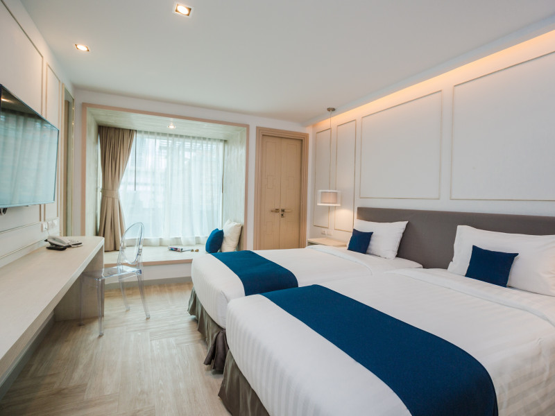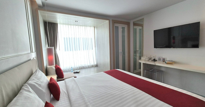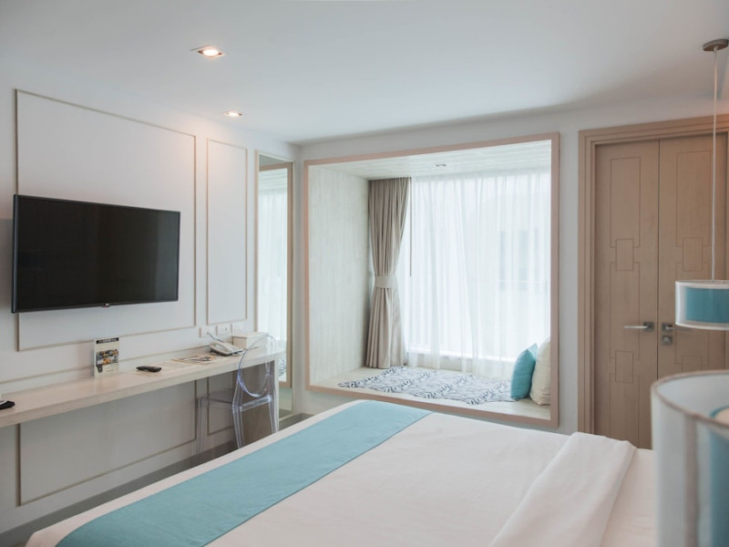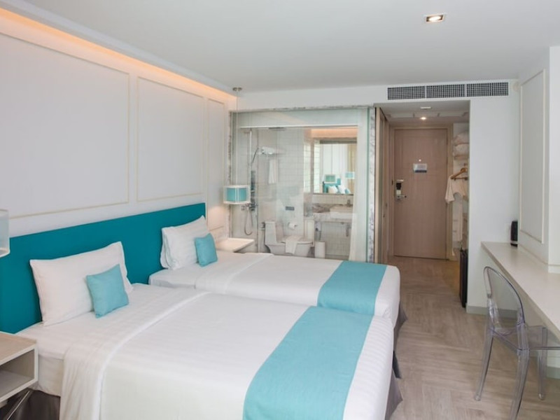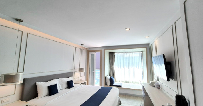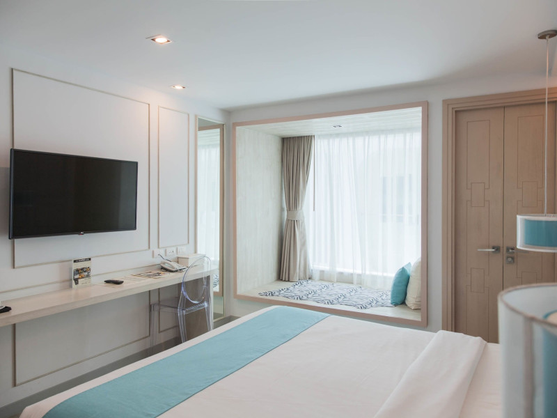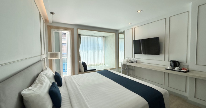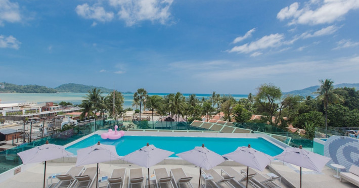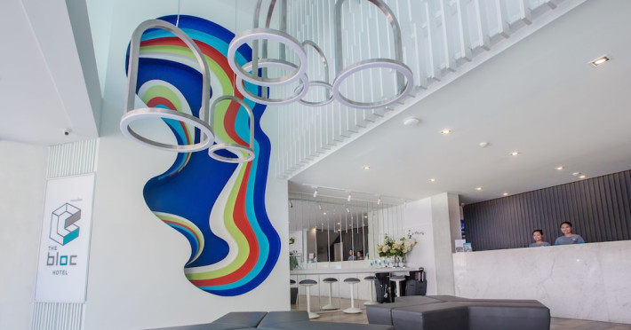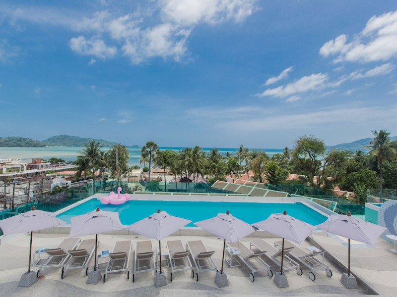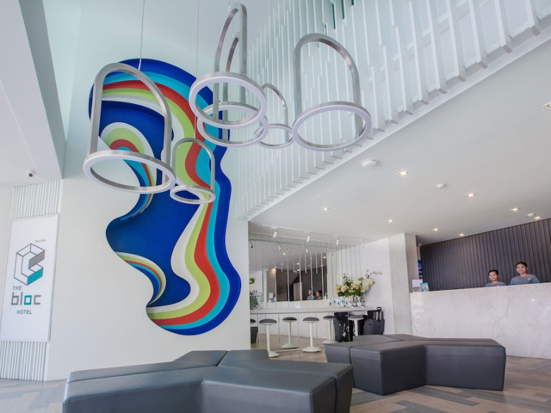 Located in the heart of Patong, The Bloc Hotel Phuket offers contemporary-style accommodations with beachfront access. It is conveniently situated near Patong Beach, Bangla Road, shops, restaurants, and bars. The hotel features 63 air-conditioned rooms, each with a private balcony, flat-screen cable TV, refrigerator, and complimentary WiFi. En suite bathrooms include showers, complimentary toiletries, and hair dryers. Guests can enjoy an outdoor rooftop swimming pool with sun decks, a fitness center, a restaurant, and a pool bar. The hotel provides a 24-hour front desk, tour/ticket assistance, dry cleaning/laundry services, and room service (during limited hours). Continental breakfast is available daily for a fee. Phuket International Airport is approximately a 1-hour drive away. THE BLOC HOTEL is a hotel.