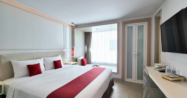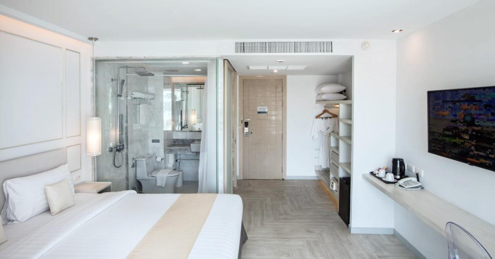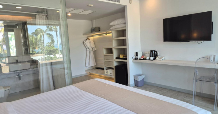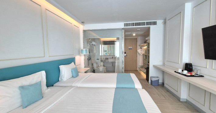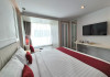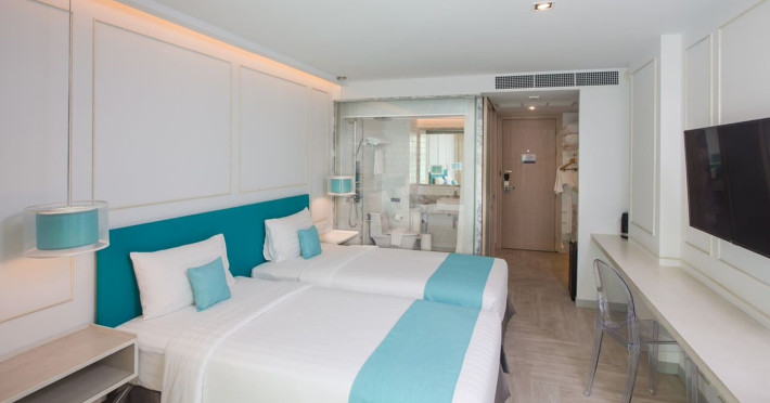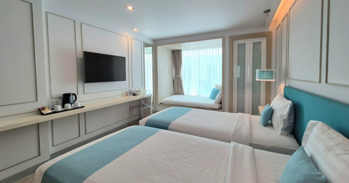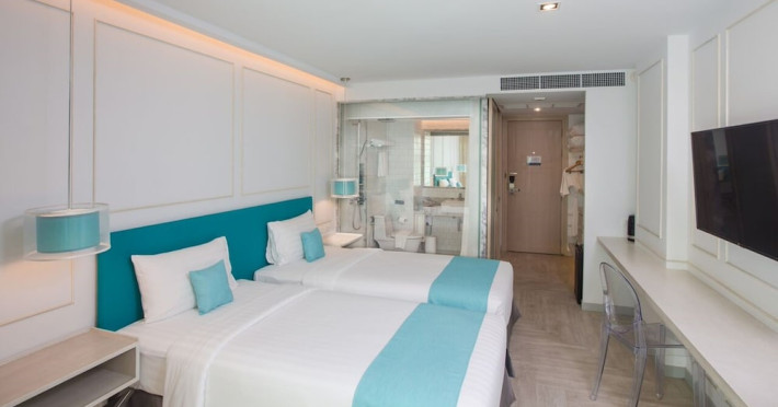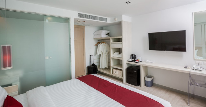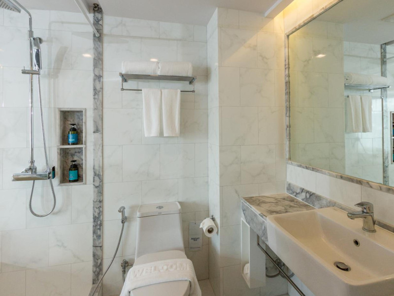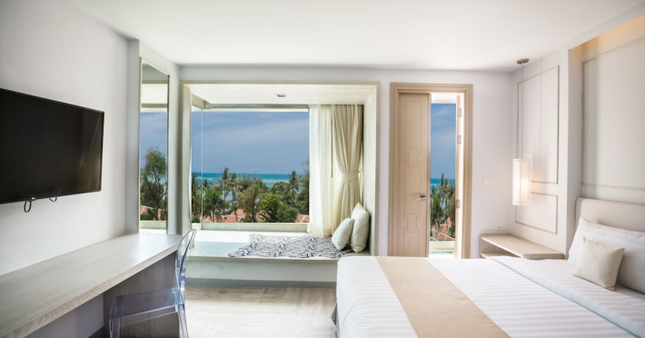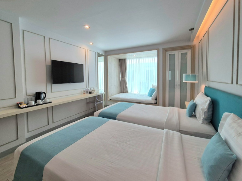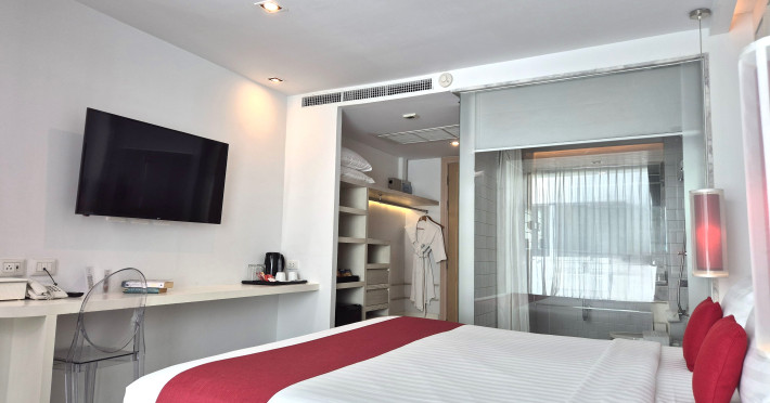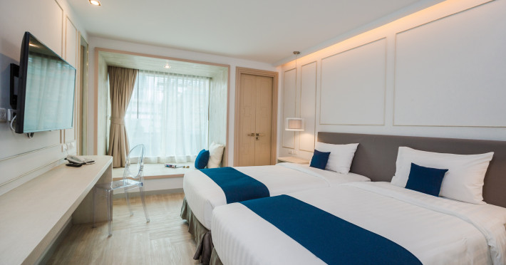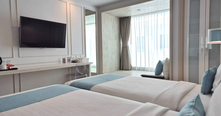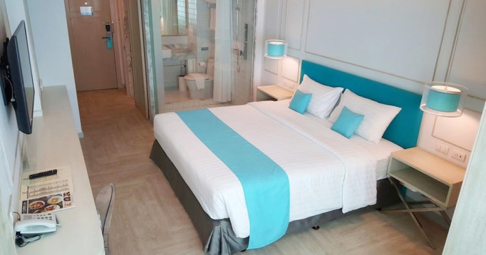 Located in the heart of Patong, The Bloc Hotel Phuket offers contemporary-style accommodations with beachfront access. It is conveniently situated near Patong Beach, Bangla Road, shops, restaurants, and bars. The hotel features 63 air-conditioned rooms, each with a private balcony, flat-screen cable TV, refrigerator, and complimentary WiFi. En suite bathrooms include showers, complimentary toiletries, and hair dryers. Guests can enjoy an outdoor rooftop swimming pool with sun decks, a fitness center, a restaurant, and a pool bar. The hotel provides a 24-hour front desk, tour/ticket assistance, dry cleaning/laundry services, and room service (during limited hours). Continental breakfast is available daily for a fee. Phuket International Airport is approximately a 1-hour drive away. THE BLOC HOTEL is a hotel.