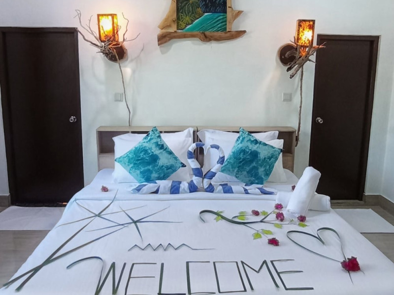 The hotel is nestled in the tranquil island of Goidhoo, part of the Baa Atoll in the Maldives. The Corbin Guest House offers a serene escape surrounded by lush gardens and a private beach. The property is close to Goidhoo Town Center (0.5 km), Mangrove Lake (350 m), and West Beach (1 km). The nearest airport is Velana International Airport, located 135 km away and accessible through sea travel.