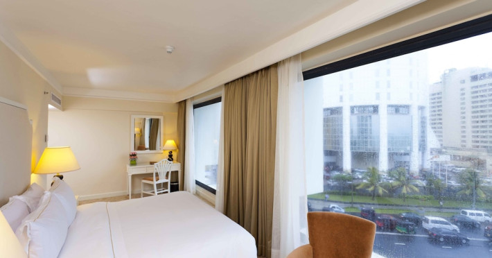 Located at the end of Galle Face Marine Drive, The Kingsbury Colombo offers views of the Colombo skyline and easy access to the Colombo World Trade Center. The hotel features 229 individually decorated guestrooms with complimentary wired and wireless internet, flat-screen televisions with satellite programming, minibars, and private bathrooms with designer toiletries. Guests can enjoy international cuisine at one of the 3 restaurants, or utilize 24-hour room service. The hotel also offers a coffee shop/cafe, a bar/lounge, and a poolside bar. Amenities include an outdoor pool, a sauna, a fitness center, a full-service spa, and a business center. Services include concierge, babysitting (surcharge), a 24-hour airport shuttle (surcharge), and train station pick-up (surcharge). Complimentary parking is available. Additional conveniences include a conference center, meeting rooms, laundry service, dry cleaning, and daily housekeeping. Some rooms feature a separate living room and a balcony or terrace. The Kingsbury Colombo is a Business, City hotel, Colonial Style, Full Service, Honeymoon, Spa Resort, Tourist hotel. The nightlife/restaurants are easily accessible by taxi or bus from the hotel.