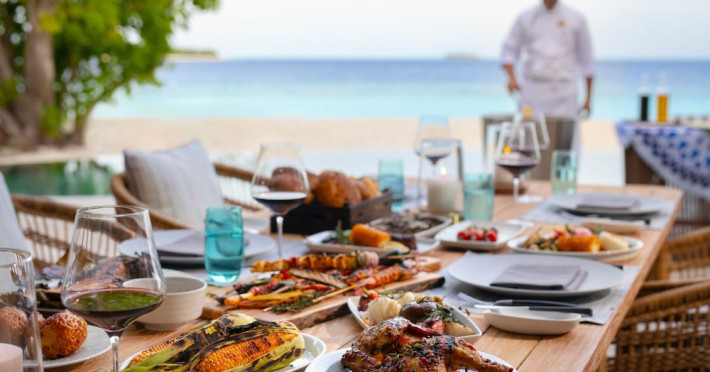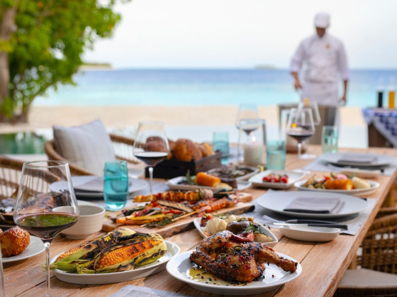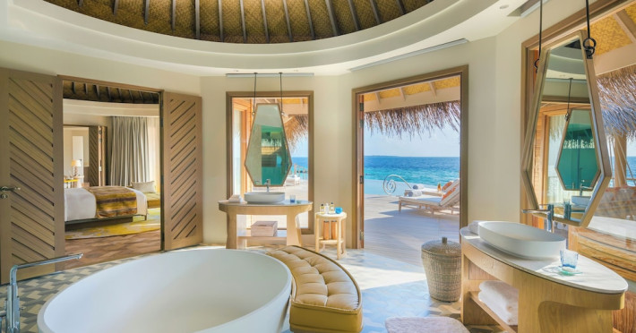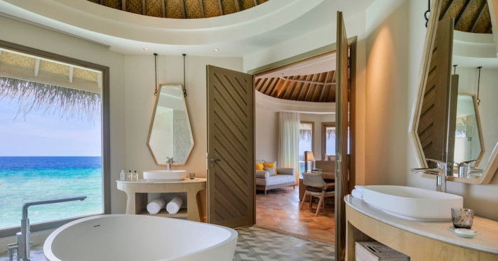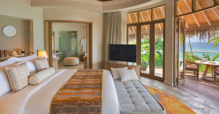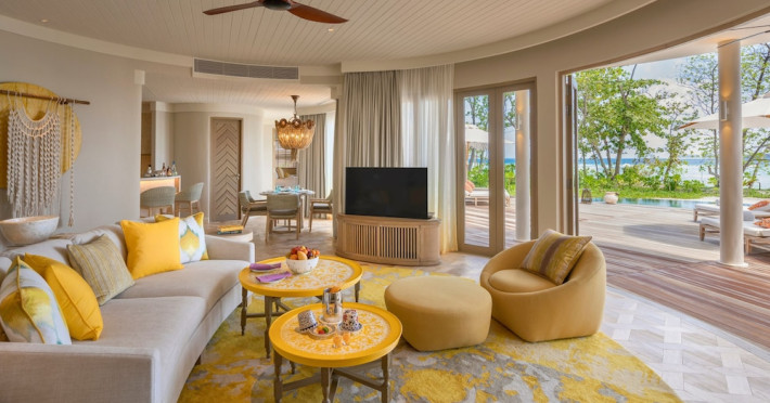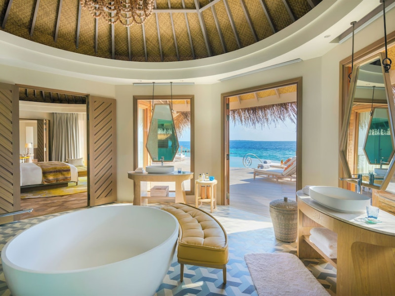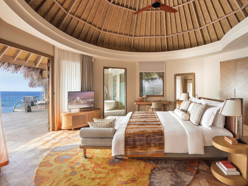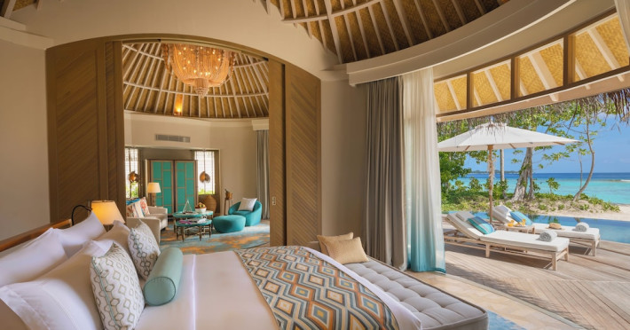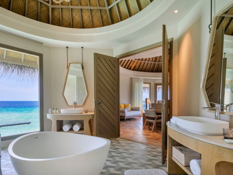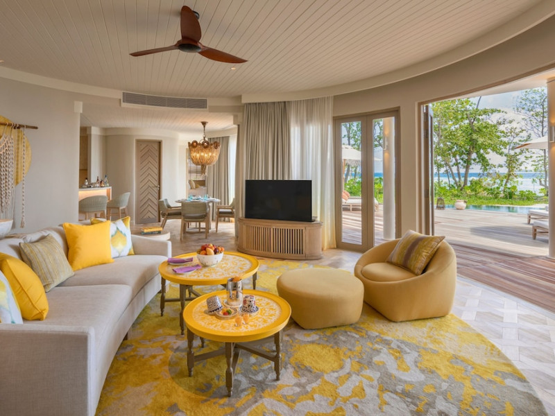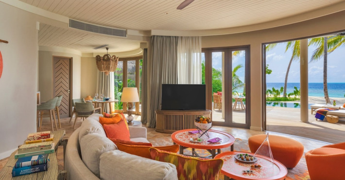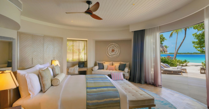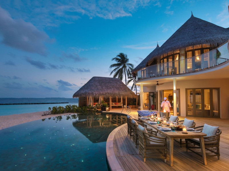 The Nautilus Maldives, located in the Baa Atoll area near Hanifaru Bay and Dharavandhoo Mosque, offers luxurious beachfront accommodations. Each of the 26 individually decorated guestrooms features a private pool, flat-screen television, memory foam bed with Egyptian cotton sheets, and a bathroom with a separate bathtub and shower. Amenities include complimentary Wi-Fi, 24-hour room service, 24-hour security, daily housekeeping, a full-service spa with massages and body treatments, a fitness center, an outdoor pool, watersports equipment rentals, and access to boats. Dining options include Zeytoun, a Mediterranean restaurant, and 24-hour room service. A complimentary full breakfast is served daily from 6:00 AM to 1:00 PM. Additional amenities include a business center, dry cleaning/laundry services, a 24-hour front desk, concierge services, and babysitting (surcharge). A roundtrip airport shuttle is available for a surcharge (limited hours). Kihaadhuffaru Island Beach is 6.1 mi (9.9 km) away, and Hibalhidoo is 10.4 mi (16.8 km) away. The Nautilus Maldives is a hotel.