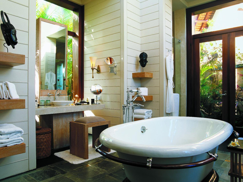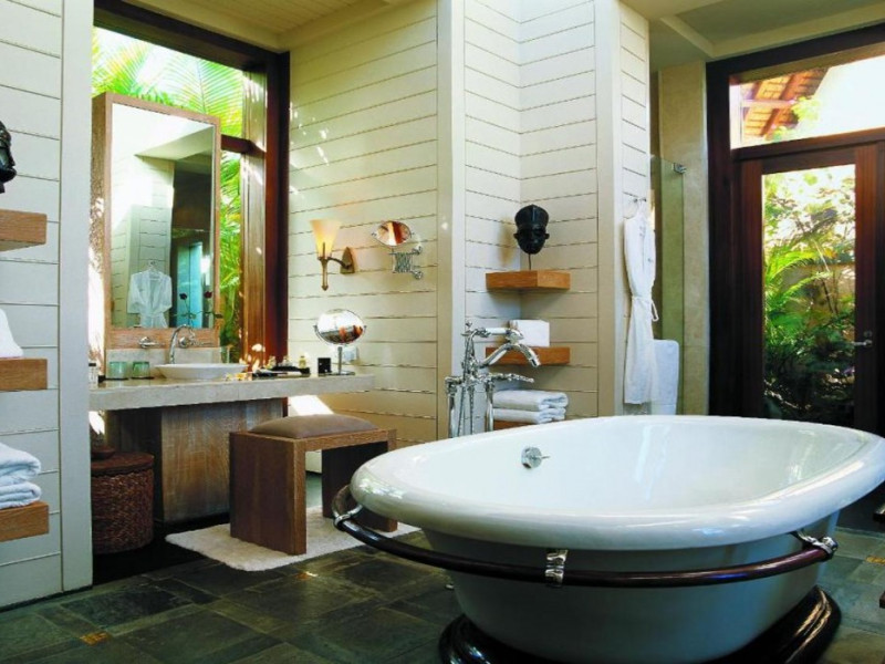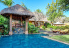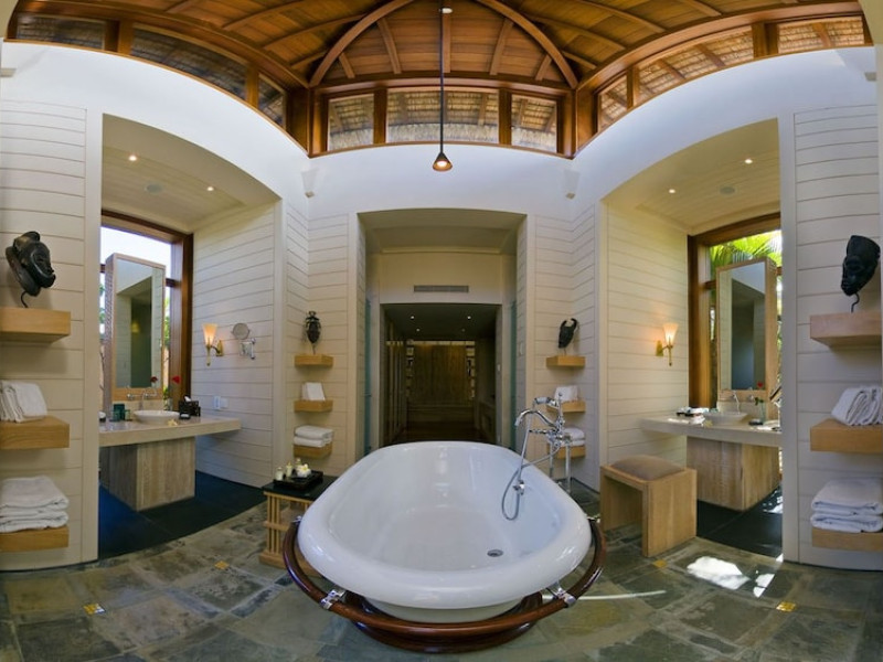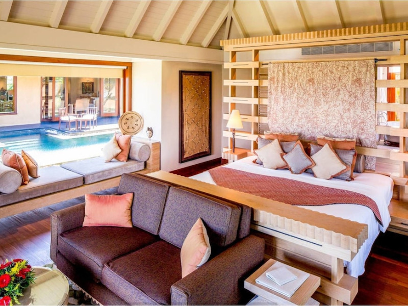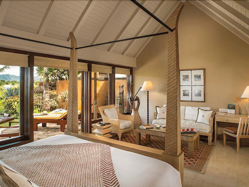 The Oberoi Beach Resort Mauritius is situated on the pristine shores of Turtle Bay, approximately 20 kilometers from Port Louis. Spread across 20 acres of lush subtropical gardens, the resort offers breathtaking sunset views. Accommodation features traditional thatched roofs. Dining options include unique restaurants serving authentic Creole and international cuisines. A daily "Touching Senses" program offers cultural and mindfulness activities. Amenities include a spa with massages, body treatments, and facials; two outdoor swimming pools; outdoor tennis courts; a steam room; complimentary Wi-Fi; concierge services; babysitting (surcharge); and an area shuttle (surcharge). The resort also features a business center, limo/town car service, express check-in, and event space (807 sq ft). A complimentary full breakfast is served daily. Guestrooms (71) are individually decorated and include fireplaces, LCD televisions, private balconies or patios, satellite programming, iPod docking stations, and private bathrooms with shower/tub combinations, deep soaking tubs, and designer toiletries. A 24-hour airport shuttle and free valet parking are available. Nearby attractions include Turtle Bay (0.5 km), Turtle Bay Marine Park (0.6 km), Balaclava Beach (0.6 km), and several other beaches and attractions within a 12 km radius. Sir Seewoosagur Ramgoolam Intl. Airport (MRU) is 55-59 km away. The Oberoi Beach Resort Mauritius is a Tourist hotel. The nightlife/restaurants are easily accessible by taxi or bus from the hotel.