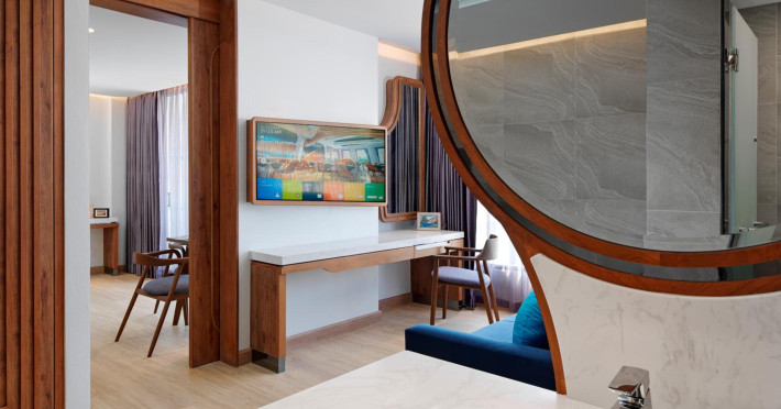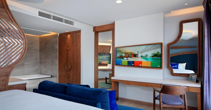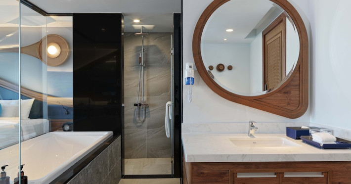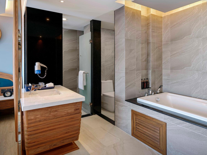 The Oceanic Sportel Phuket - SHA Extra Plus, located in Phuket Town, is a 5-star sports hotel offering world-class training facilities and state-of-the-art fitness equipment. It features 95 air-conditioned rooms, each with a private balcony, minibar, Smart TV, and private bathroom with rainfall showerhead. Amenities include complimentary Wi-Fi, a 24-hour front desk, multilingual staff, concierge services, dry cleaning/laundry services, a restaurant (MATCH POINT RESTAURANT) serving American, Chinese, and Thai cuisine (vegetarian and vegan options available), a bar/lounge, an outdoor swimming pool, a kids' club, game rooms, six ITF-recognized tennis courts, and a community mall. A buffet breakfast is available daily for a fee. Free self-parking is available onsite, and a 24-hour airport shuttle is available for a surcharge. The hotel also offers a conference center, two meeting rooms, and a steam room. Nearby attractions include Premium Outlet Phuket (2km), Royal Phuket Marina (2.6km), and Phuket International Airport (22km). Other nearby points of interest are listed in the provided distances. The Oceanic Sportel is a hotel.