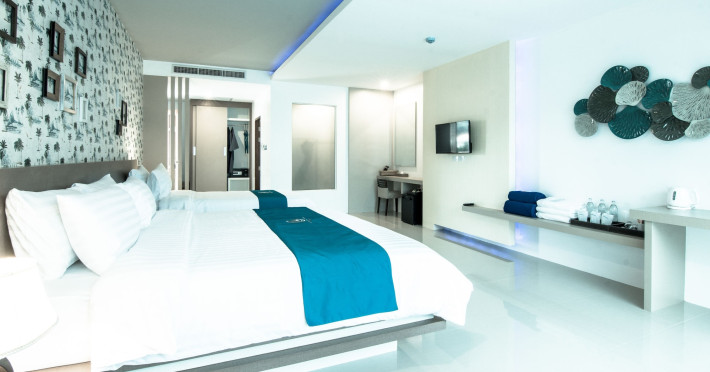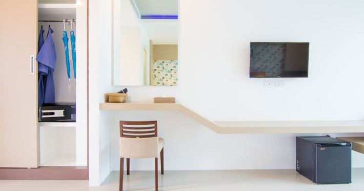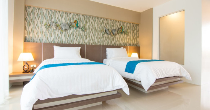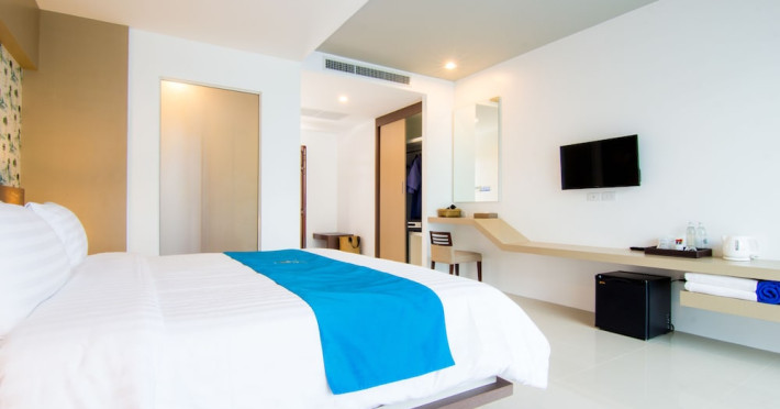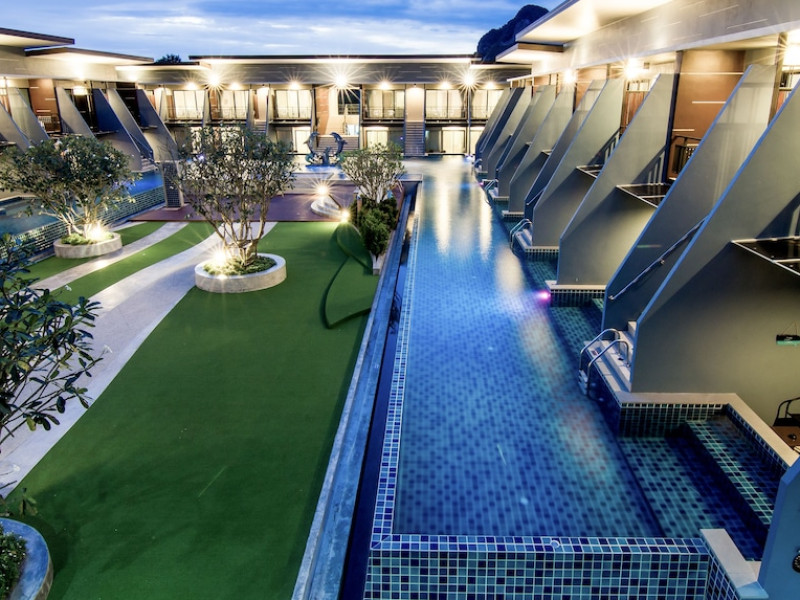The Phu Beach Hotel - SHA Plus, nestled in Ao Nang, Krabi, offers a relaxing and comfortable stay in a tropical setting. The hotel features an outdoor swimming pool, fitness center, restaurant serving Thai and Western cuisine, and a bar/lounge with a poolside bar. Guests can enjoy complimentary wireless internet access, concierge services, and a complimentary daily round trip beach shuttle to Ao Nang. The hotel provides air-conditioned rooms with private bathrooms, LCD televisions, minibars, and balconies or patios. Additional amenities include a 24-hour front desk, luggage storage, laundry service, and free self-parking. Airport transportation is available for a surcharge. The hotel is located near Wattanapat Hospital and Ao Nang Krabi Boxing Stadium, with Krabi International Airport approximately 25 km away. THE PHU BEACH HOTEL is a hotel.