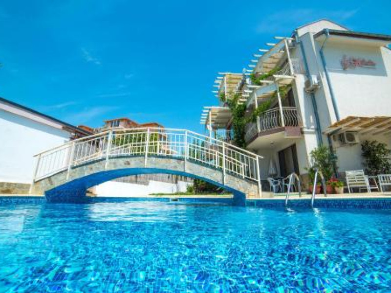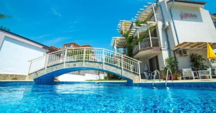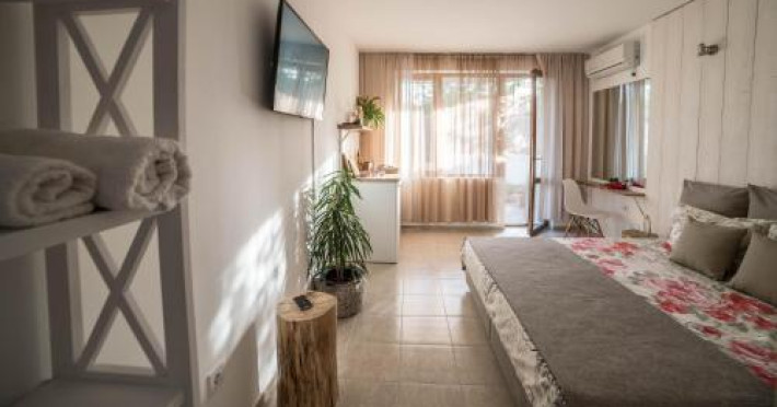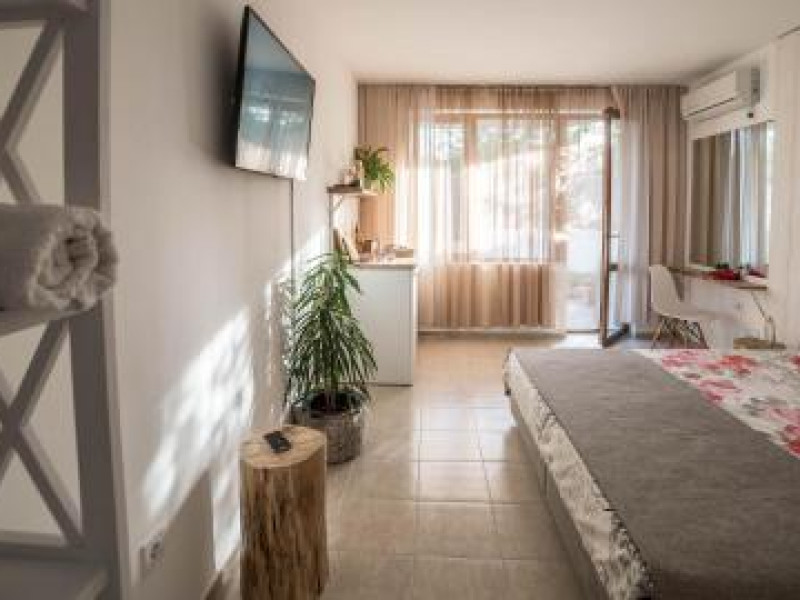 The Poolhouse in Sunny Beach provides accommodations with a seasonal outdoor swimming pool and a garden. There's a private entrance at the apartment for the convenience of those who stay. The apartment provides rooms with air conditioning, free private parking, and free Wifi. The apartment provides guests with a terrace, a seating area, cable flat-screen TV, a fully equipped kitchenette with a toaster and a fridge, and a private bathroom with shower and bathrobes. All rooms are equipped with a kettle, while some have a balcony. At the apartment complex, all units are equipped with bed linen and towels. A mini-market is available at the apartment. Sightseeing tours are available in the vicinity of the property. A car rental service is available at The Poolhouse, while hiking can be enjoyed nearby. Sunny Beach is a 8-minute walk from the accommodation, while Action AquaPark is 2 miles from the property. Burgas Airport is 20 miles away, and the property offers a paid airport shuttle service.WiFi is available in the hotel rooms and is free of charge.
