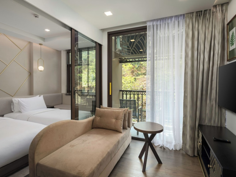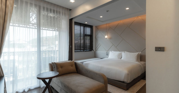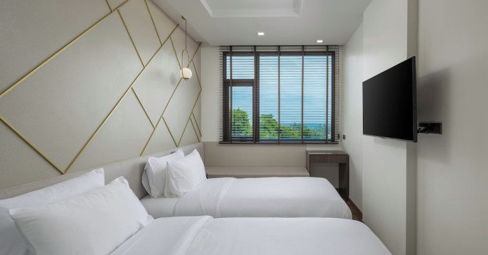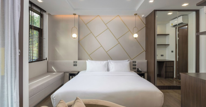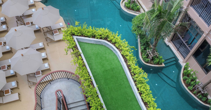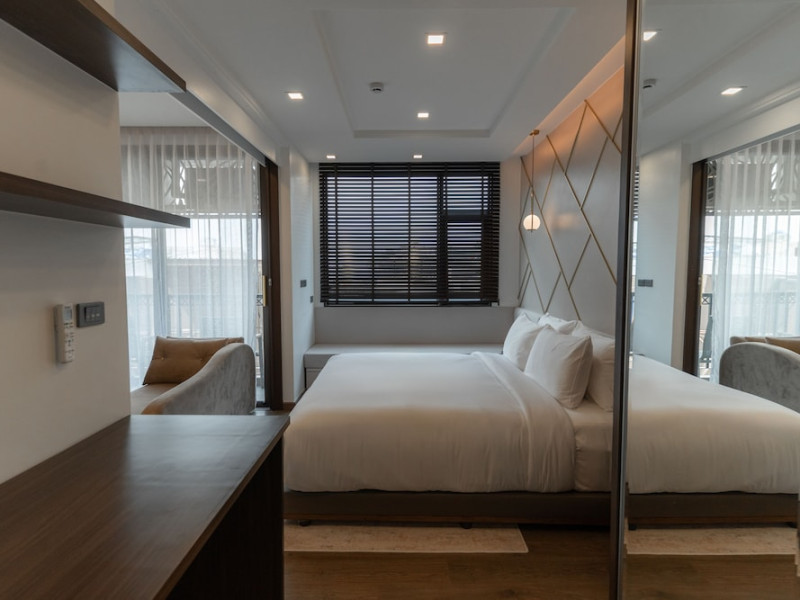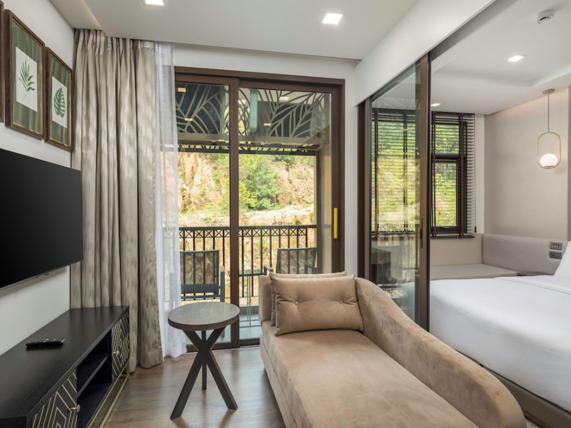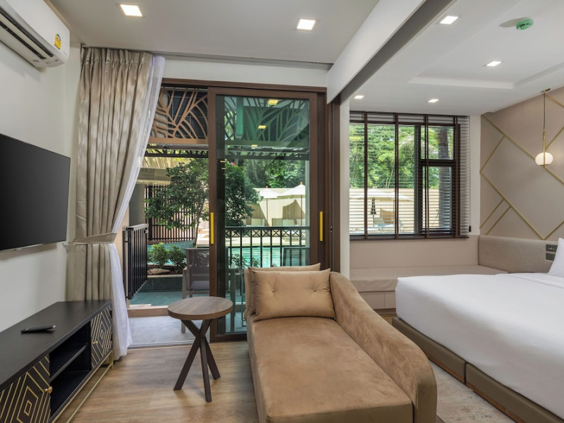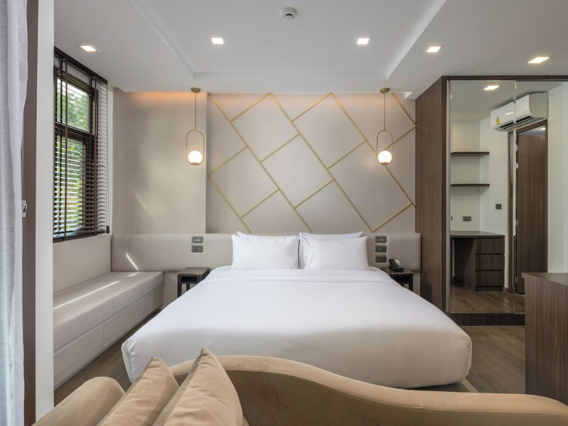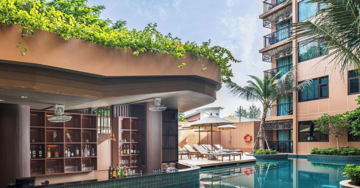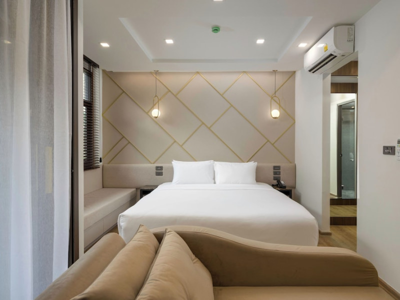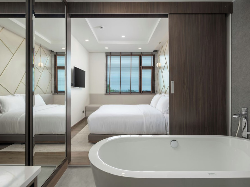 The Proud Karon Beach Phuket, Trademark Collection By Wyndham, is a modern, non-smoking hotel located steps from Karon Beach. Refurbished in 2024, it offers amenities such as rooftop pools, free WiFi, parking, a gym, and a restaurant with a bar/lounge. Guests can enjoy a buffet breakfast (for a fee). The hotel features a 24-hour front desk, luggage storage, and an elevator. Individually furnished guestrooms include minibars, Smart TVs, complimentary wireless internet, laptop-compatible safes, desks, and bathrooms with hair dryers and bathrobes. Housekeeping is provided daily. The hotel is located close to Karon Temple and Market, and is approximately 38.5 km from Phuket International Airport (HKT), with a 24/7 shuttle service available. The Proud Karon Beach Phuket Trademark Collection By Wyndham is a hotel.