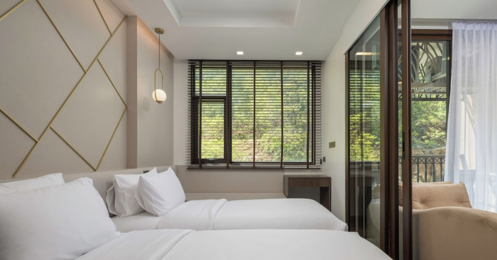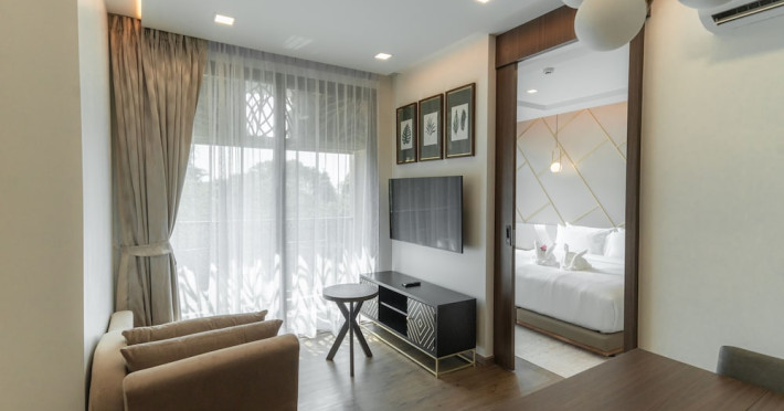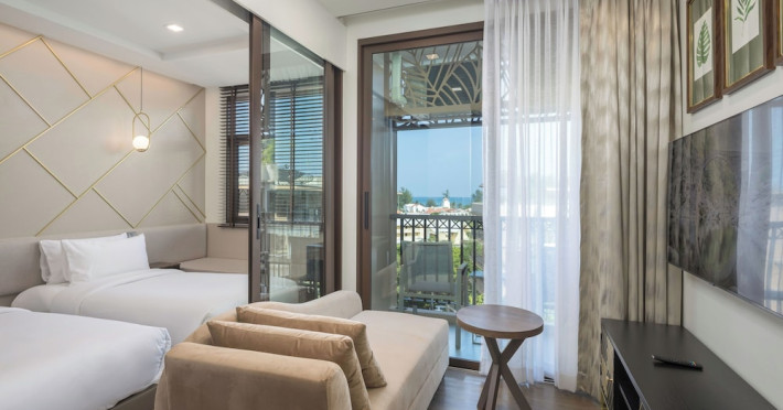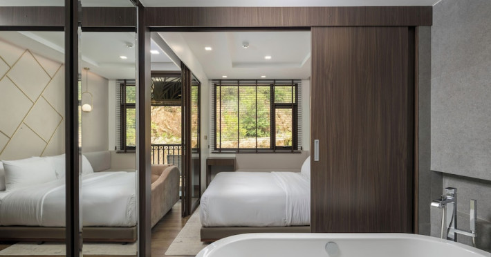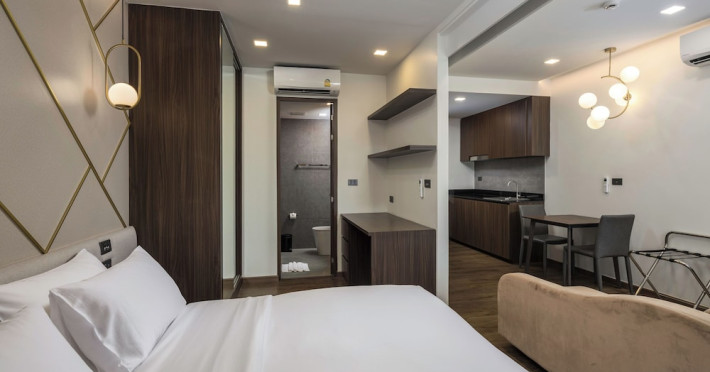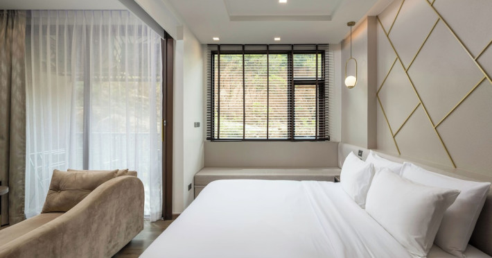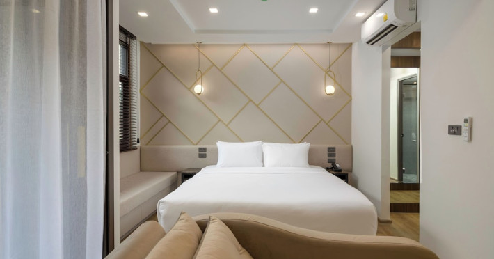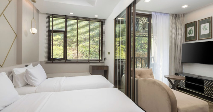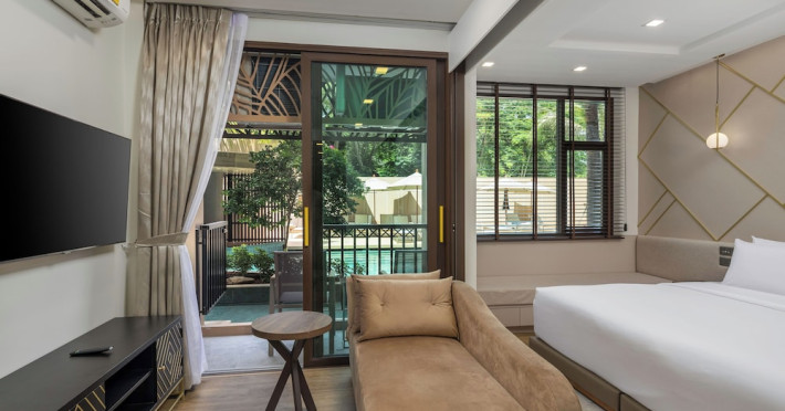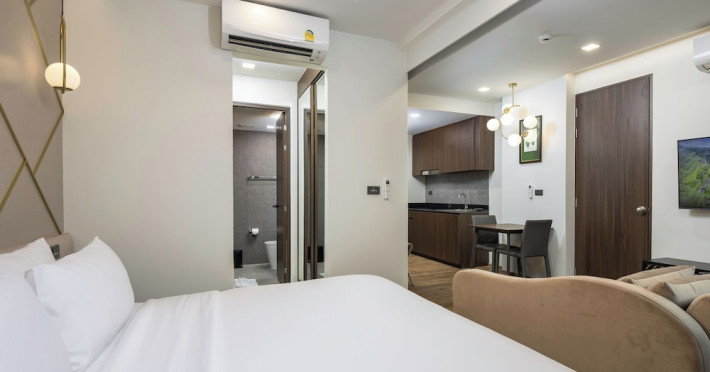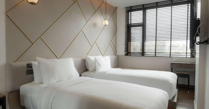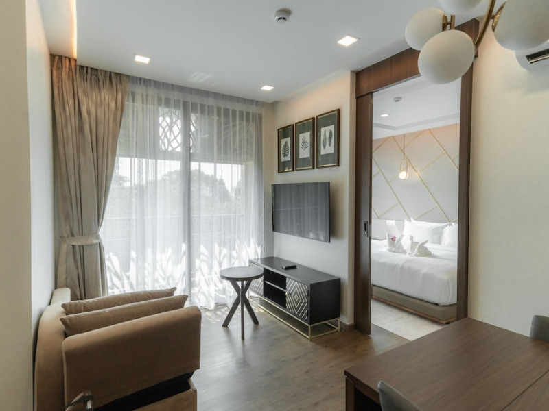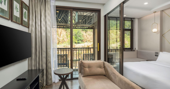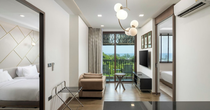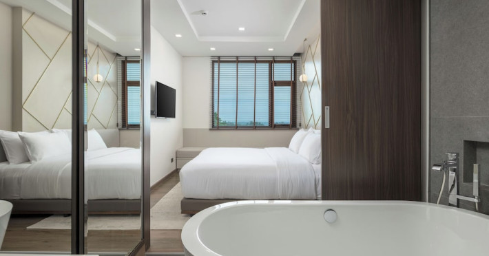 The Proud Karon Beach Phuket, Trademark Collection By Wyndham, is a modern, non-smoking hotel located steps from Karon Beach. Refurbished in 2024, it offers amenities such as rooftop pools, free WiFi, parking, a gym, and a restaurant with a bar/lounge. Guests can enjoy a buffet breakfast (for a fee). The hotel features a 24-hour front desk, luggage storage, and an elevator. Individually furnished guestrooms include minibars, Smart TVs, complimentary wireless internet, laptop-compatible safes, desks, and bathrooms with hair dryers and bathrobes. Housekeeping is provided daily. The hotel is located close to Karon Temple and Market, and is approximately 38.5 km from Phuket International Airport (HKT), with a 24/7 shuttle service available. The Proud Karon Beach Phuket Trademark Collection By Wyndham is a hotel.