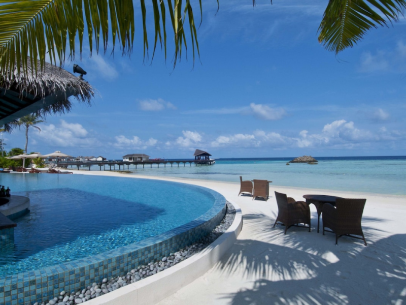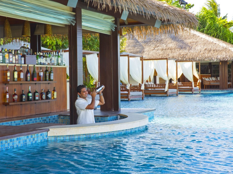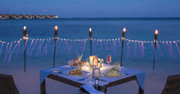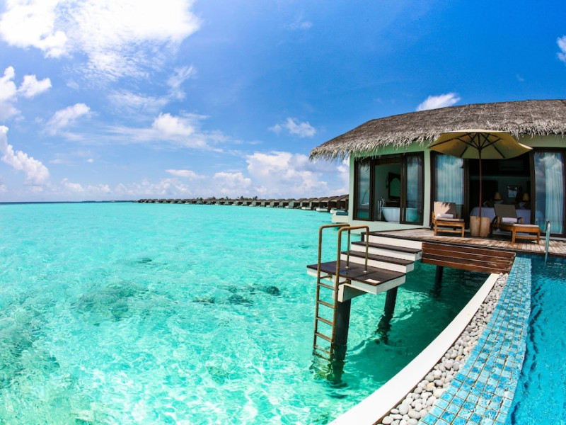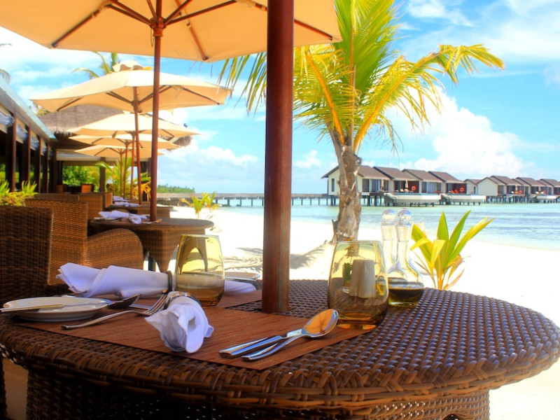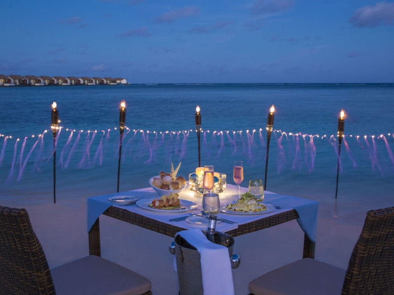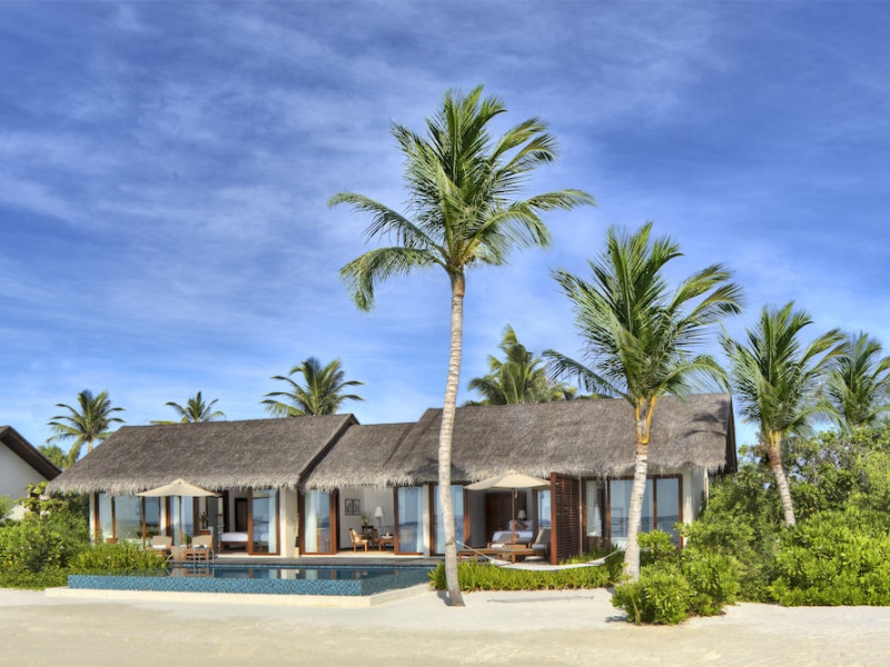The Residence Maldives Falhumaafushi, located on the pristine Falhumaafushi island in the Gaafu Alifu Atoll, offers 94 luxuriously appointed beach and overwater villas with panoramic ocean views. Villas feature one or two bedrooms, complimentary Wi-Fi, and two bicycles. The resort blends traditional Maldivian architecture with contemporary elegance. Dining options include The Dining Room (all-day dining), The Beach Bar, The Library, and the specialty overwater restaurant, The Falhumma, offering memorable dining experiences and afternoon tea. 24-hour private in-villa dining is available. The Spa by Clarins provides holistic treatments and pampering services. Recreational amenities include a health club, outdoor pool, a kids' club, and PADI-certified diving facilities. Additional amenities include a coffee shop/cafe, concierge services, babysitting (surcharge), and a roundtrip airport shuttle (surcharge, limited hours). The nearest airport is Kooddoo (GKK), with Velana International Airport (MLE) also serving the resort. The Residence Maldives Falhumaafushi is a All Suite, Beach Resort, Diving Resort, Honeymoon, Villa Resort hotel. The nightlife/restaurants are located in the hotel.