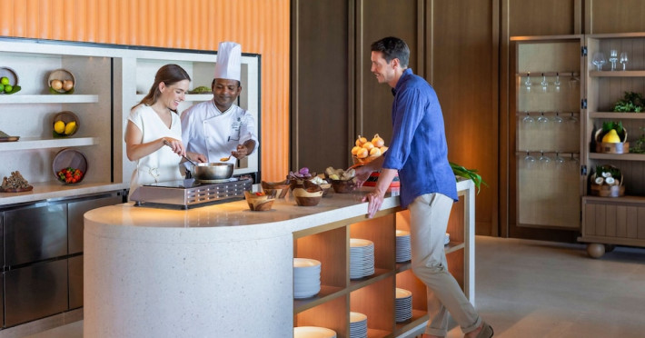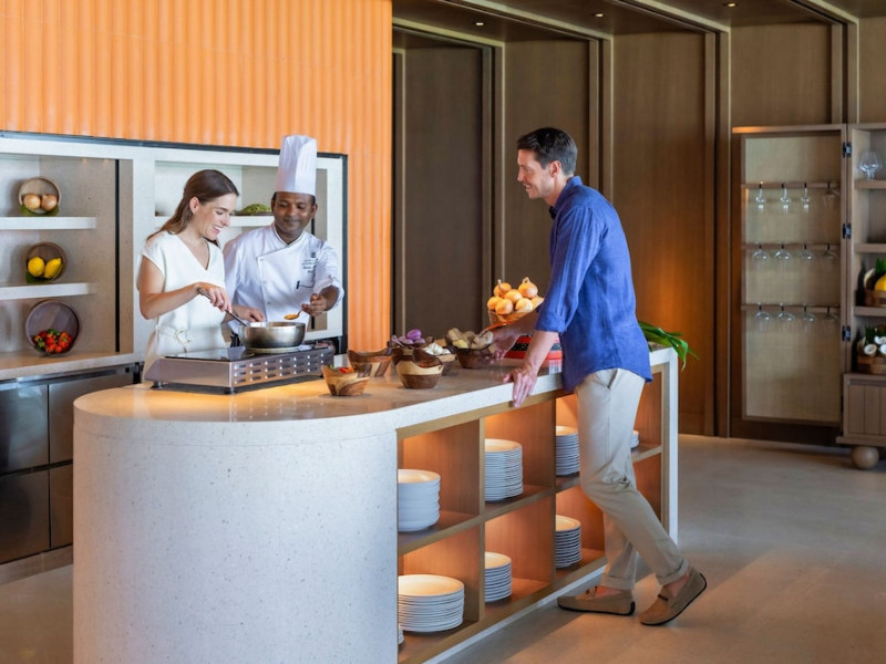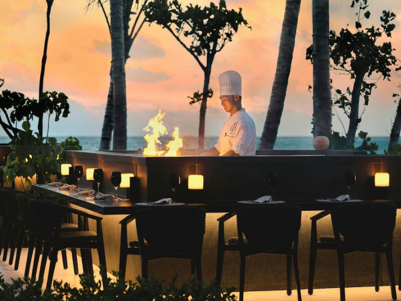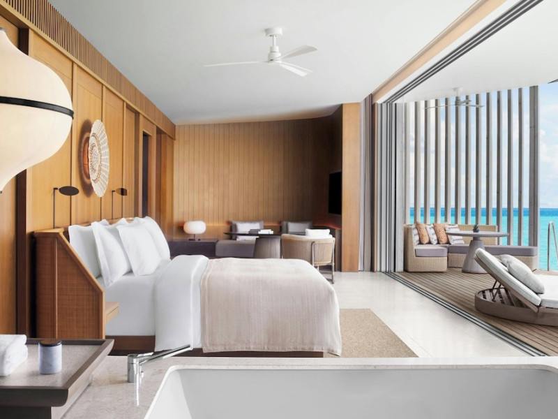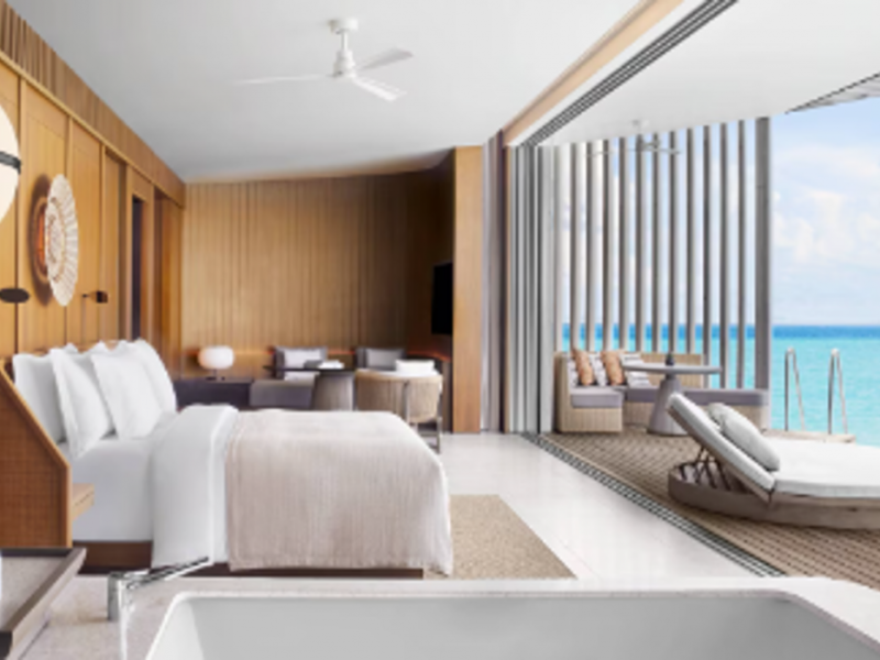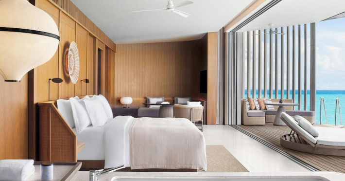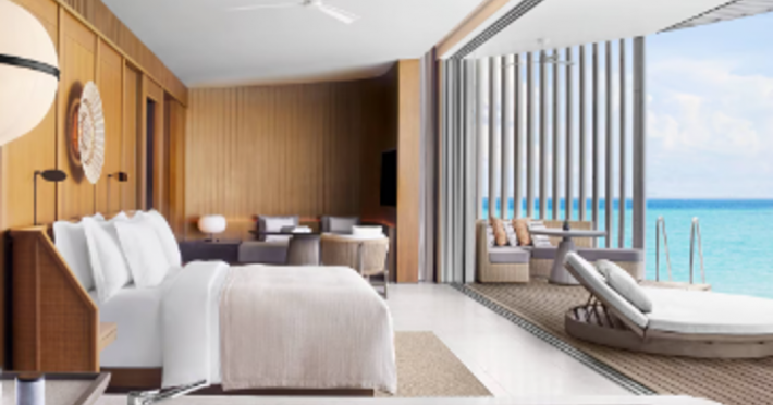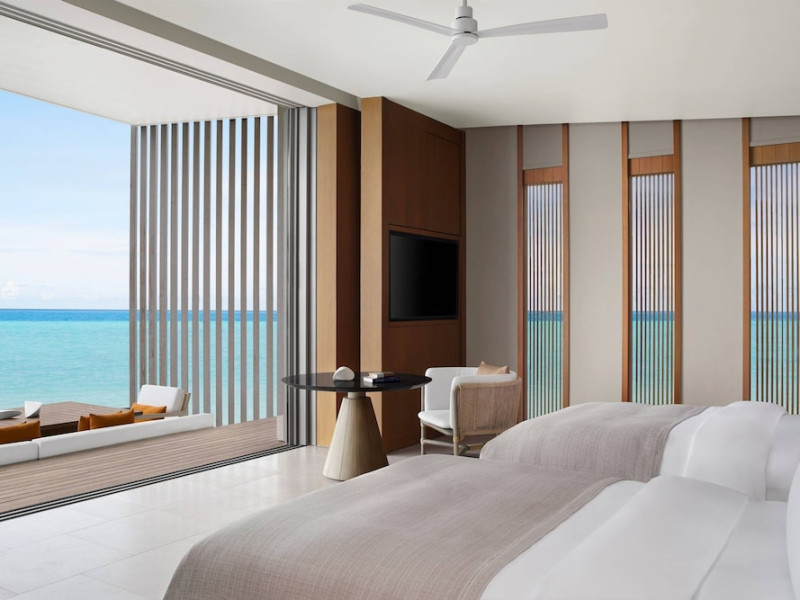 Located on the waterfront in Fari Islands, The Ritz-Carlton Maldives, Fari Islands, offers a private beach and a spa with massages, body treatments, and facials. Guests can enjoy an outdoor pool, a waterslide, and Italian cuisine at the ocean-view La Locanda restaurant, with the option of alfresco dining. The hotel also features a bar/lounge, a beach bar, and a poolside bar, as well as 24-hour room service. Additional amenities include complimentary wireless internet access, concierge services, babysitting (surcharge), express check-out, dry cleaning/laundry services, and multilingual staff. The 100 air-conditioned rooms offer private pools and indoor private spa tubs, pillowtop beds with Frette Italian sheets, 55-inch LED televisions with satellite programming, and bathrooms with separate bathtubs and showers featuring deep soaking bathtubs and rainfall showerheads. The hotel is near Angsana Beach, Bandos Beach, and Vabbininfaru Beach, and approximately 6 miles from Velana International Airport (MLE). The Ritz-Carlton Maldives, Fari Islands is a hotel.